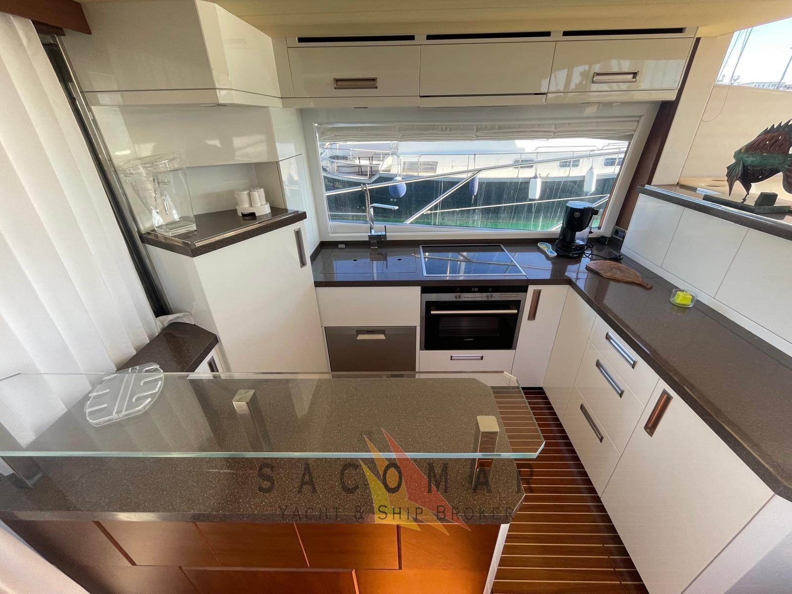 Cuisine, Réfrigérateur extérieur (flybridge, 49lt), Réfrigérateur intérieur (240V), Plaques électriques (240 V).