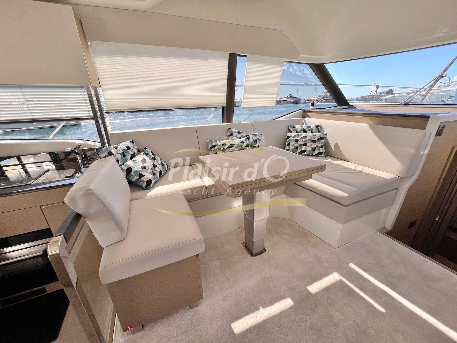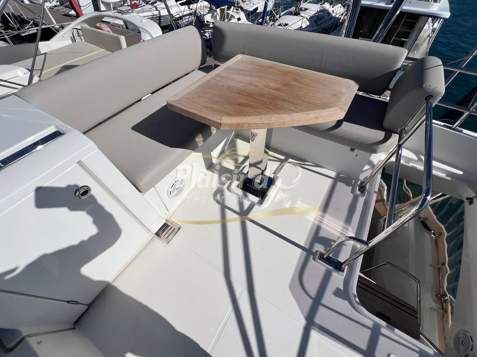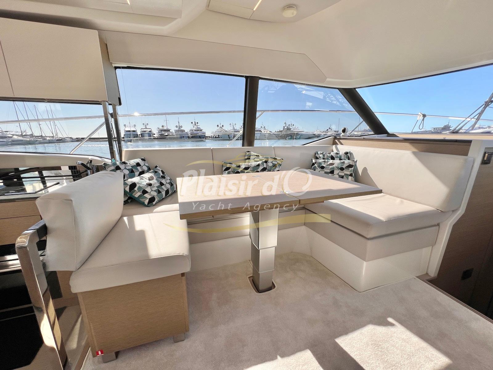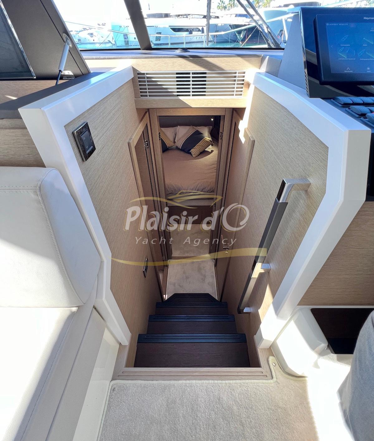 Nombreuses options: Motorisation maximale, Joystick, Générateur, GPS/Sondeur, AIS émetteur récepteur, radar, VHF, climatisation tropicale, Système fusion, Passerelle hydraulique, cockpit teck, table de cockpit teck, table intérieur électrique, 3 TV …