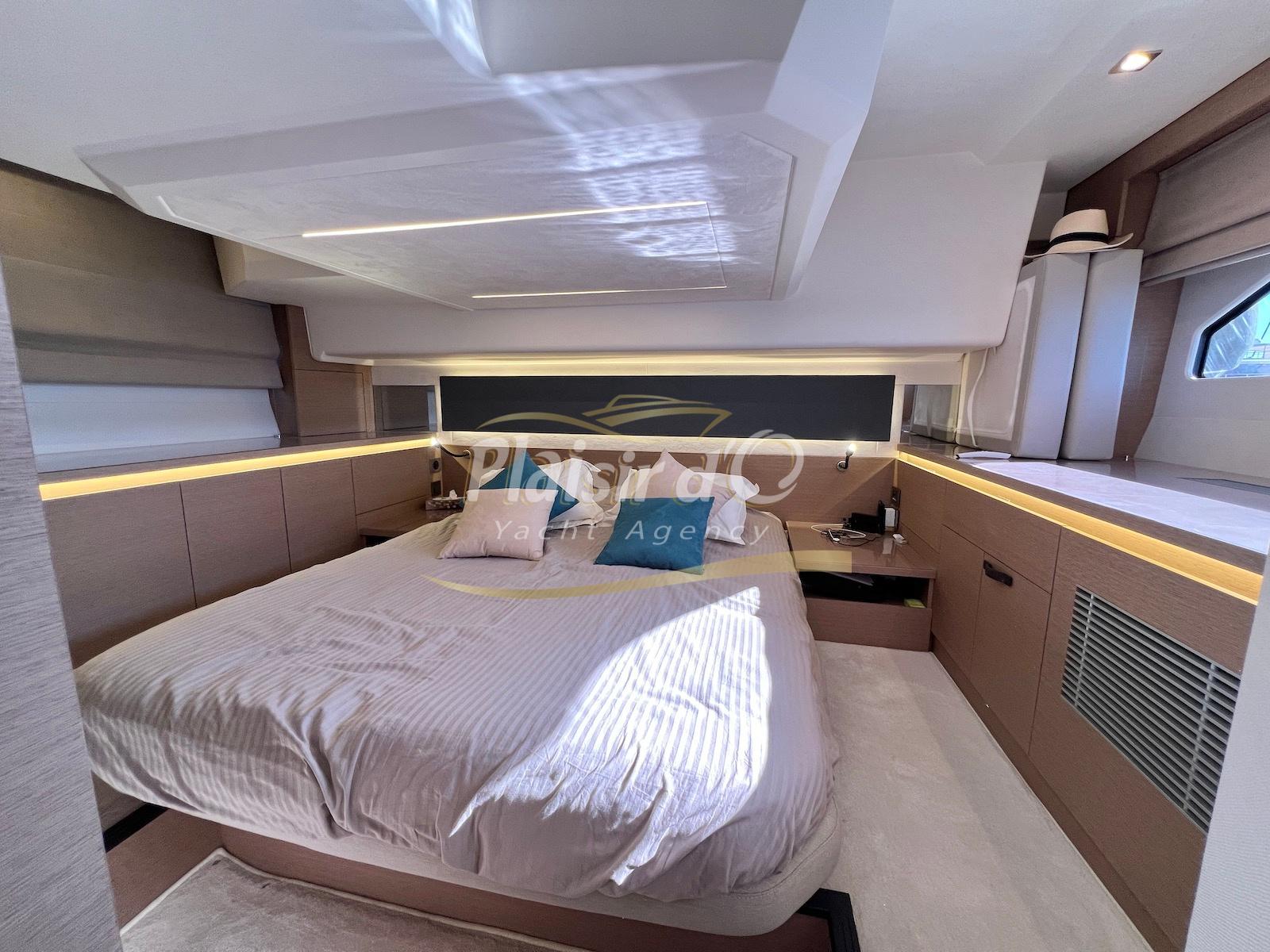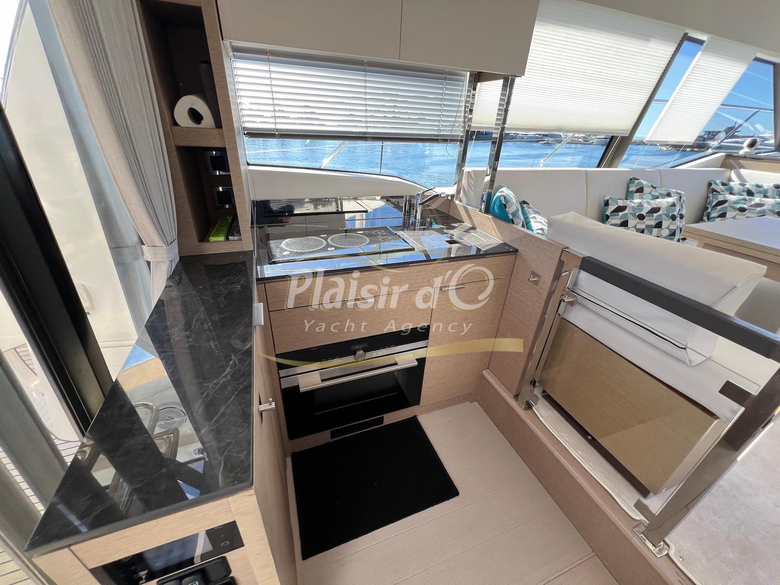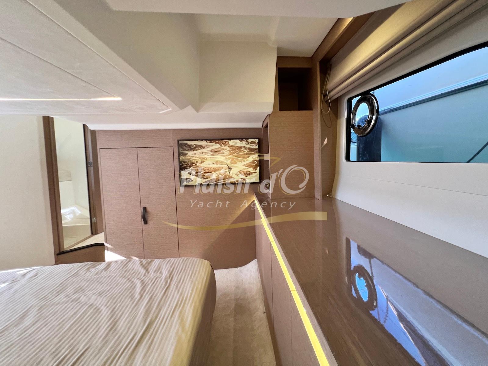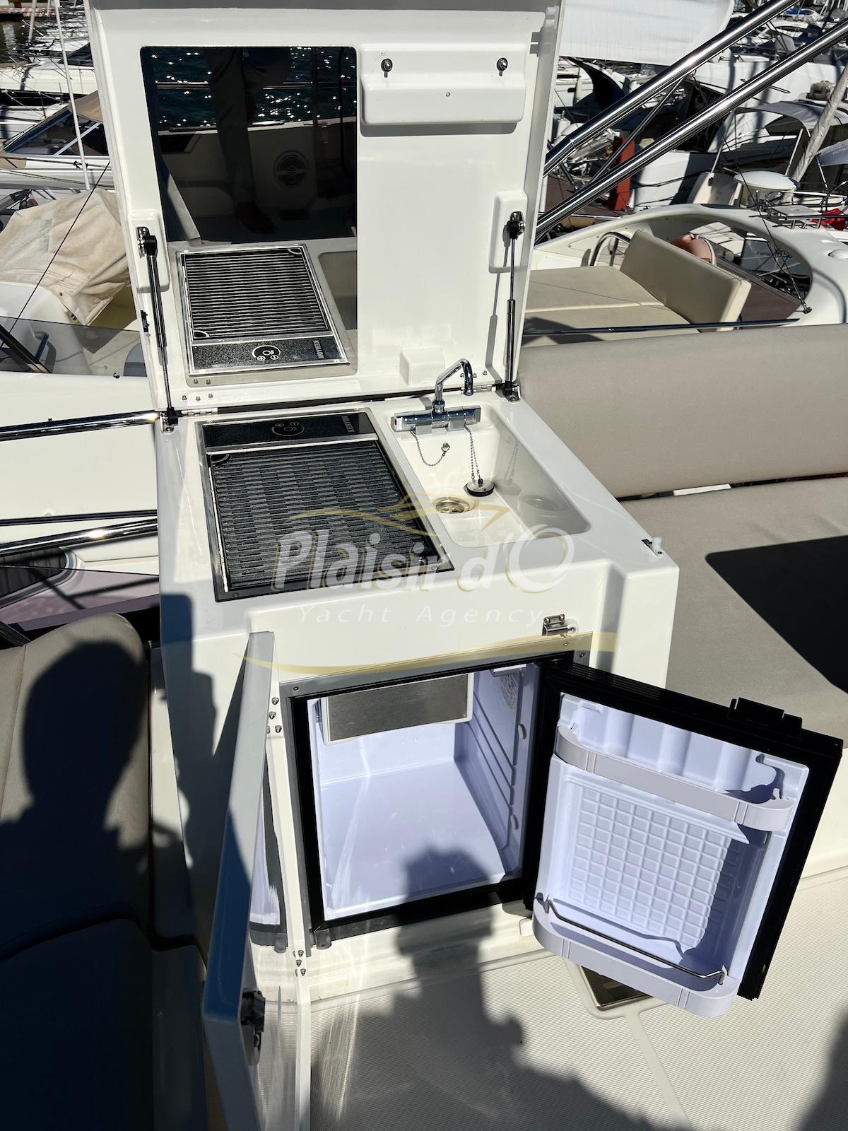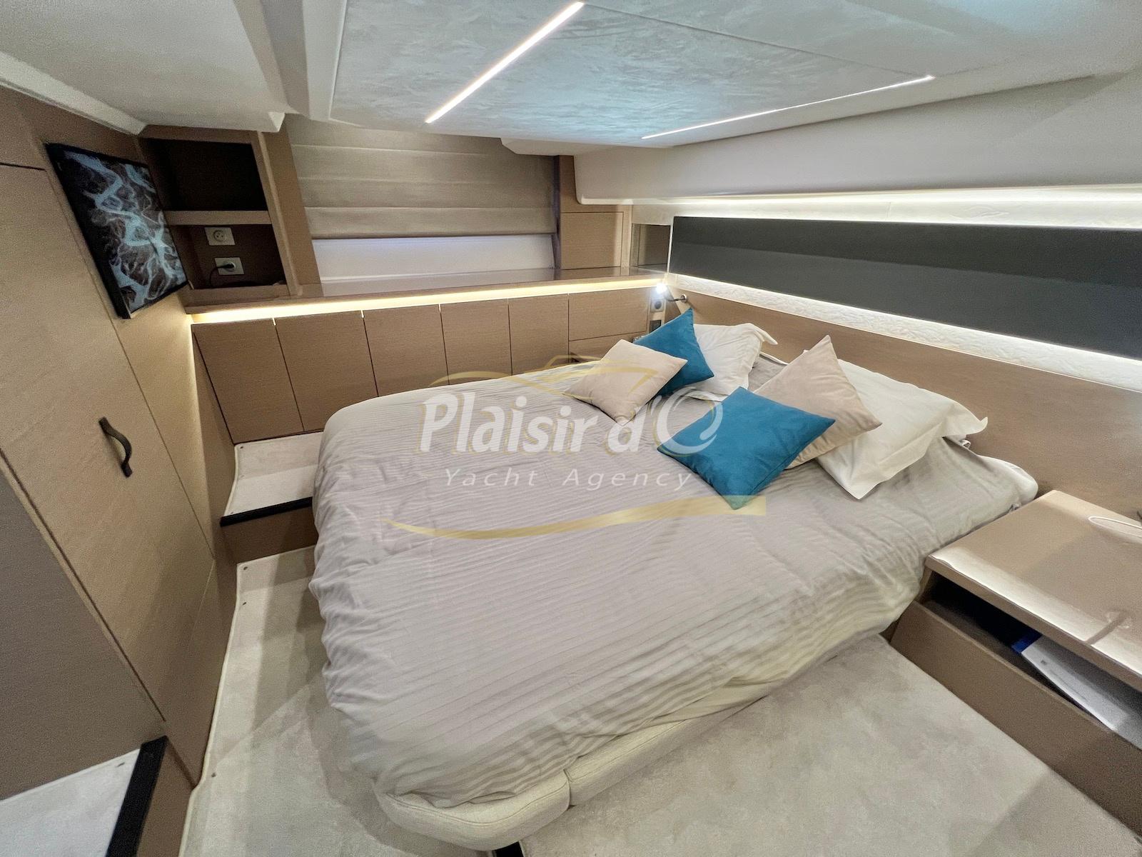 Nombreuses options: Motorisation maximale, Joystick, Générateur, GPS/Sondeur, AIS émetteur récepteur, radar, VHF, climatisation tropicale, Système fusion, Passerelle hydraulique, cockpit teck, table de cockpit teck, table intérieur électrique, 3 TV …