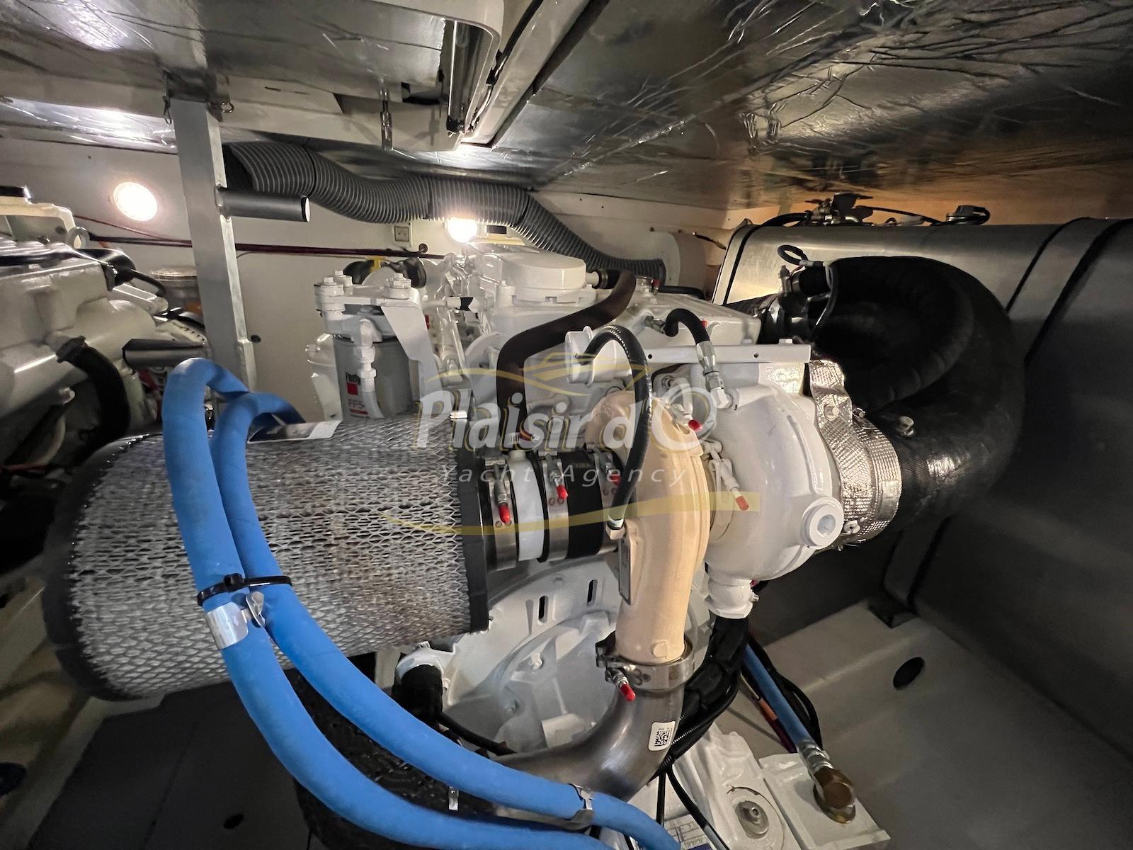 Motorisation maximale 2 x 425cv Cummins avec transmissions par lignes d’arbres + commande joystick pour faciliter les manœuvres.