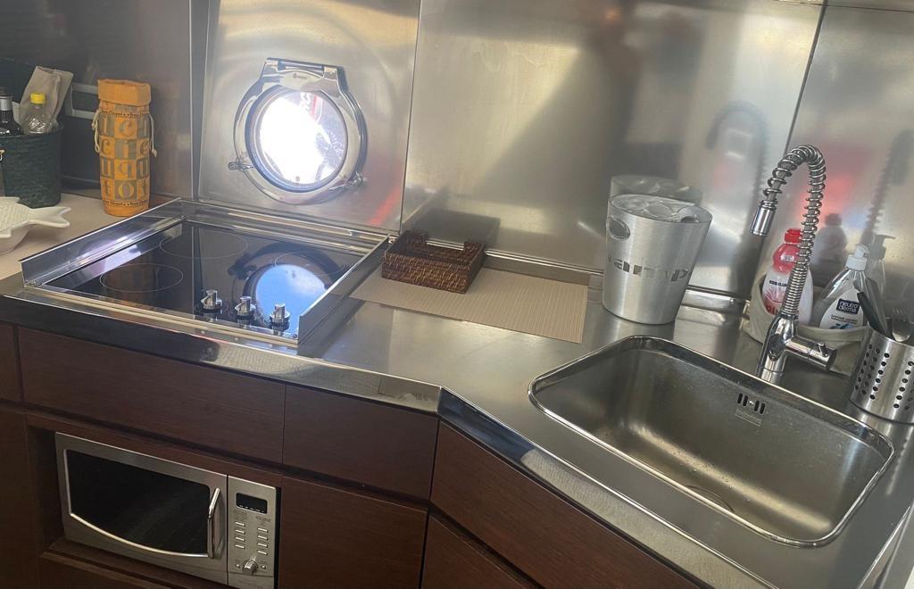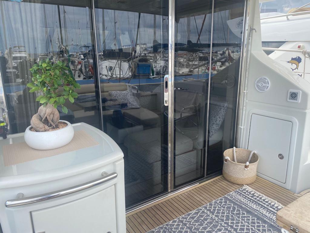6 Batteries, Douche de cockpit, 2 Flaps hydrauliques, Indicateurs de flaps, Passerelle (BESENZONI), Plateforme arrière (PEDANA POPPA AFFONDABILE), Porte latérale (IN ACCIAIO INOX), Guindeau électrique, Echelle de bain, Corne.