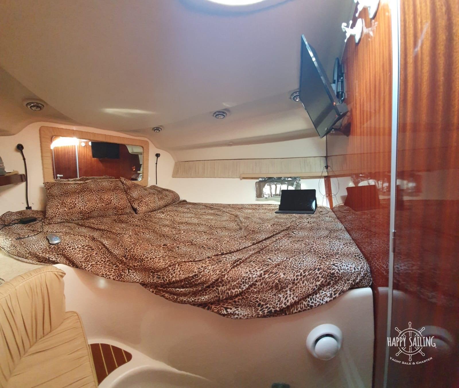 Alarme moteur, Alarme de pompe de cale, Ouverture du compartiment moteur électrique, Eau sous pression, Flaps électriques, Indicateurs de flaps, Plateforme arrière, Pompe de cale manuelle, Cockpit en teck, Prise de quai, Rollbar, Guindeau électrique, table de cockpit, Annexe.