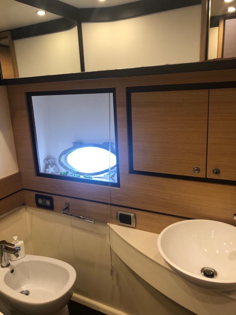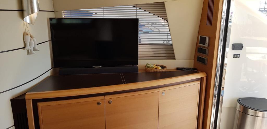 Alarme moteur, Eau sous pression, 2 Douche de cockpit (Una a prua e una poppa), Double barre à roue, Flaps hydrauliques, Passerelle (Idraulica lato destro, a scomparsa), Plateforme arrière, Pompe de cale automatique, Porte latérale (Elettrica), Cockpit en teck, Prise de quai, Rollbar, Guindeau électrique, Echelle de bain, table de cockpit, Annexe (3,3 con yamaha 15hp), 2 Winch électrique arrière, Winch électrique avant.