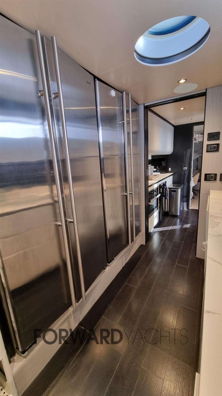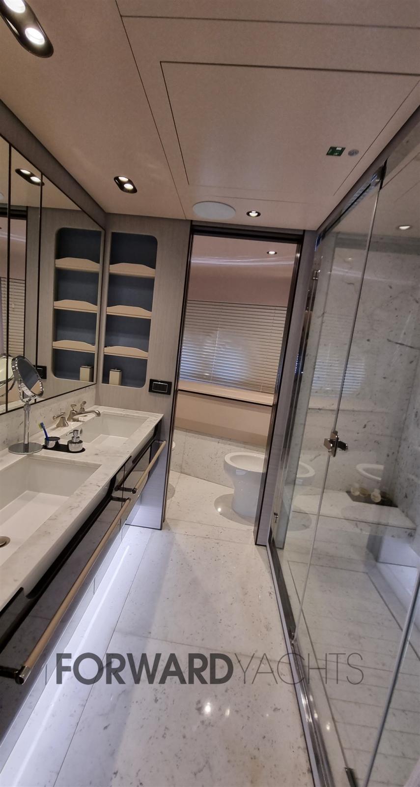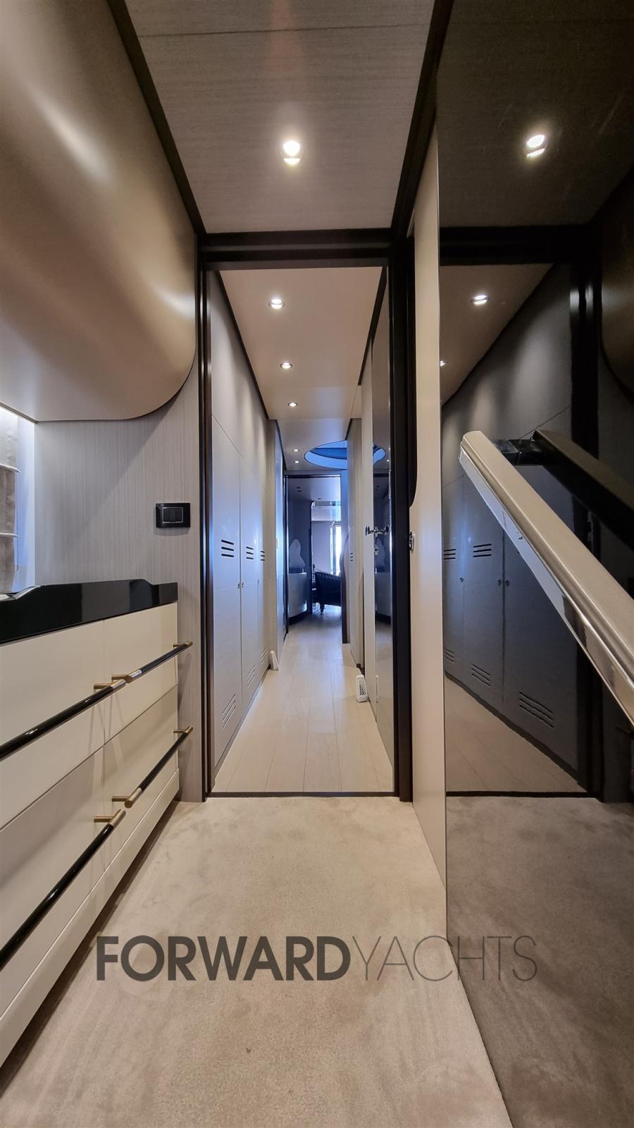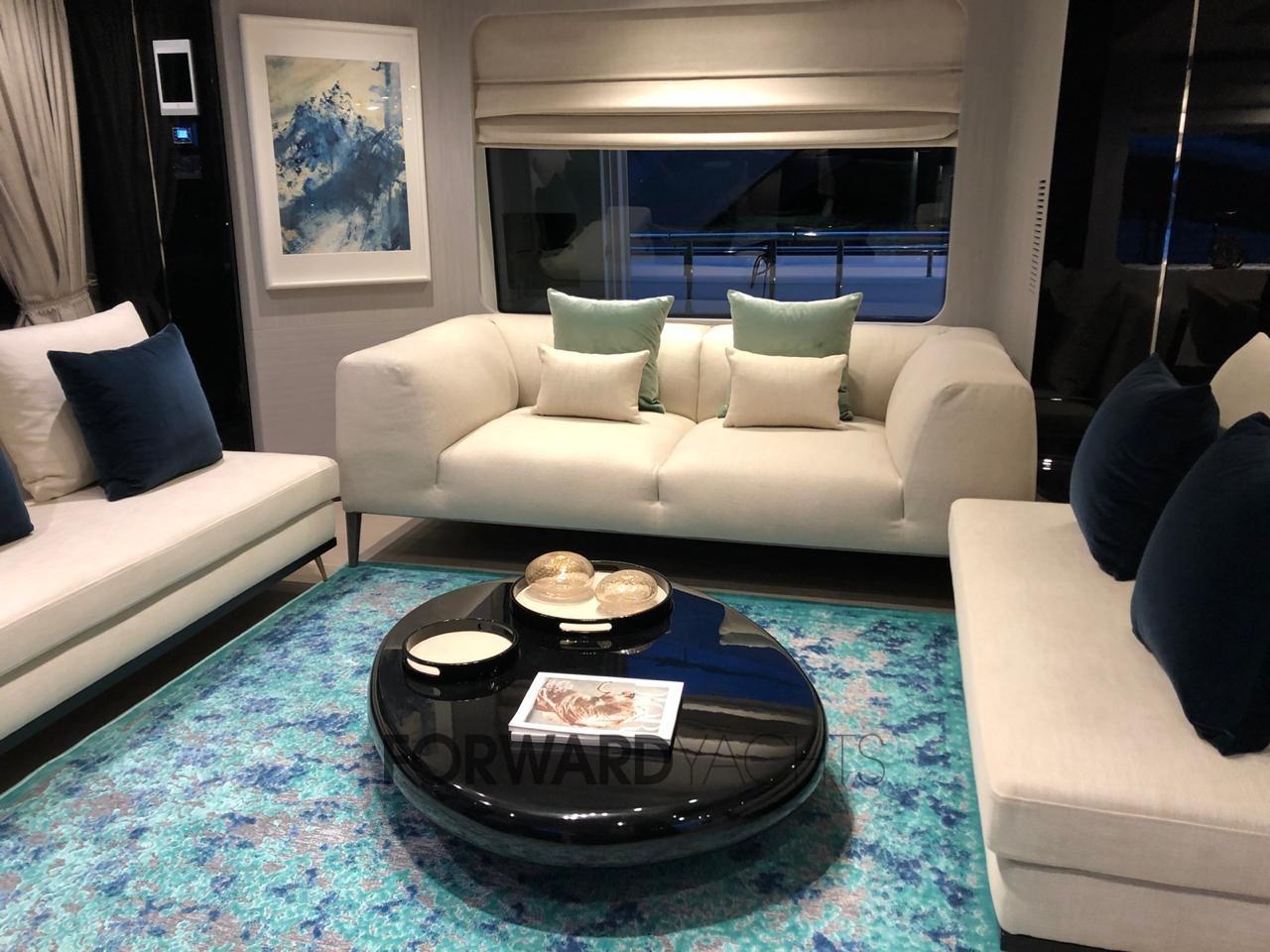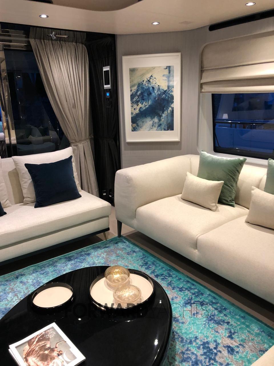 Le bateau est équipé de 2 moteurs MAN V12 de 1 900 CV. De plus, l’utilisation de la fibre de carbone permet d’augmenter la taille des volumes et des surfaces tout en conservant le même poids, assurant ainsi d’excellents niveaux de stabilité dynamique. Bien équipé avec : troisième poste de pilotage dans le cockpit, propulseur de poupe et d’étrave, stabilisateurs d’ailerons, pont de poupe hydraulique et bien plus encore.