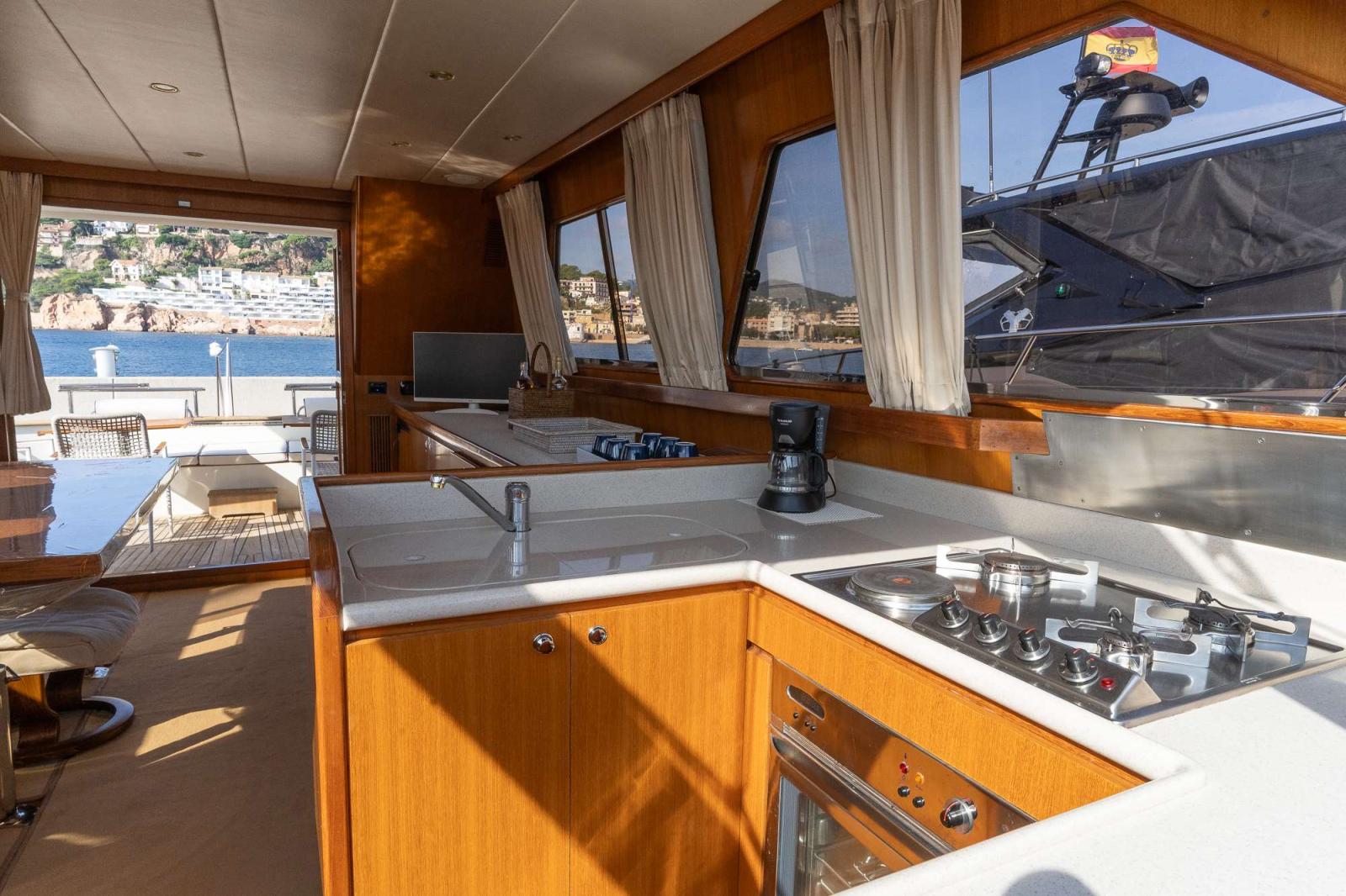Coin cuisine équipé faisant face au poste de pilotage.