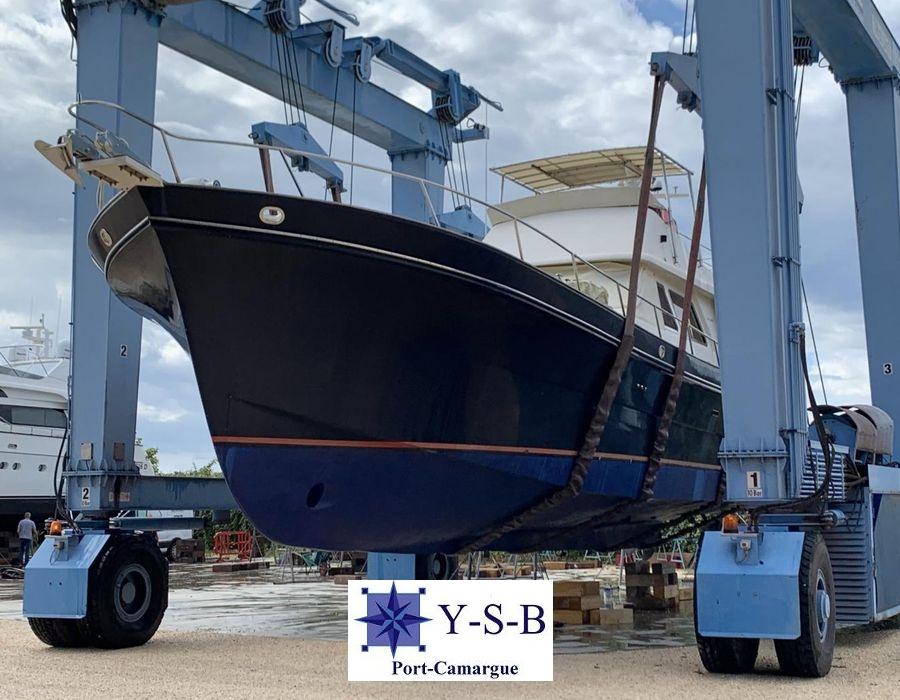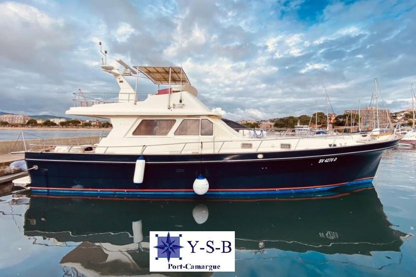 C'est un bateau capable de naviguer à vitesse de déplacement comme un trawler mais également de se déplacer en semi-déplacement avec une vitesse de croisière de 16 nds.
