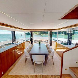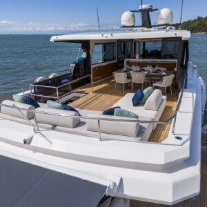 Pensé dans les moindres détails, l'Okean 80 offre un design élégant et une technologie de pointe, avec une attention particulière portée à l'efficacité énergétique et au confort des passagers. Son espace intérieur et extérieur est conçu pour garantir des moments inoubliables en mer.