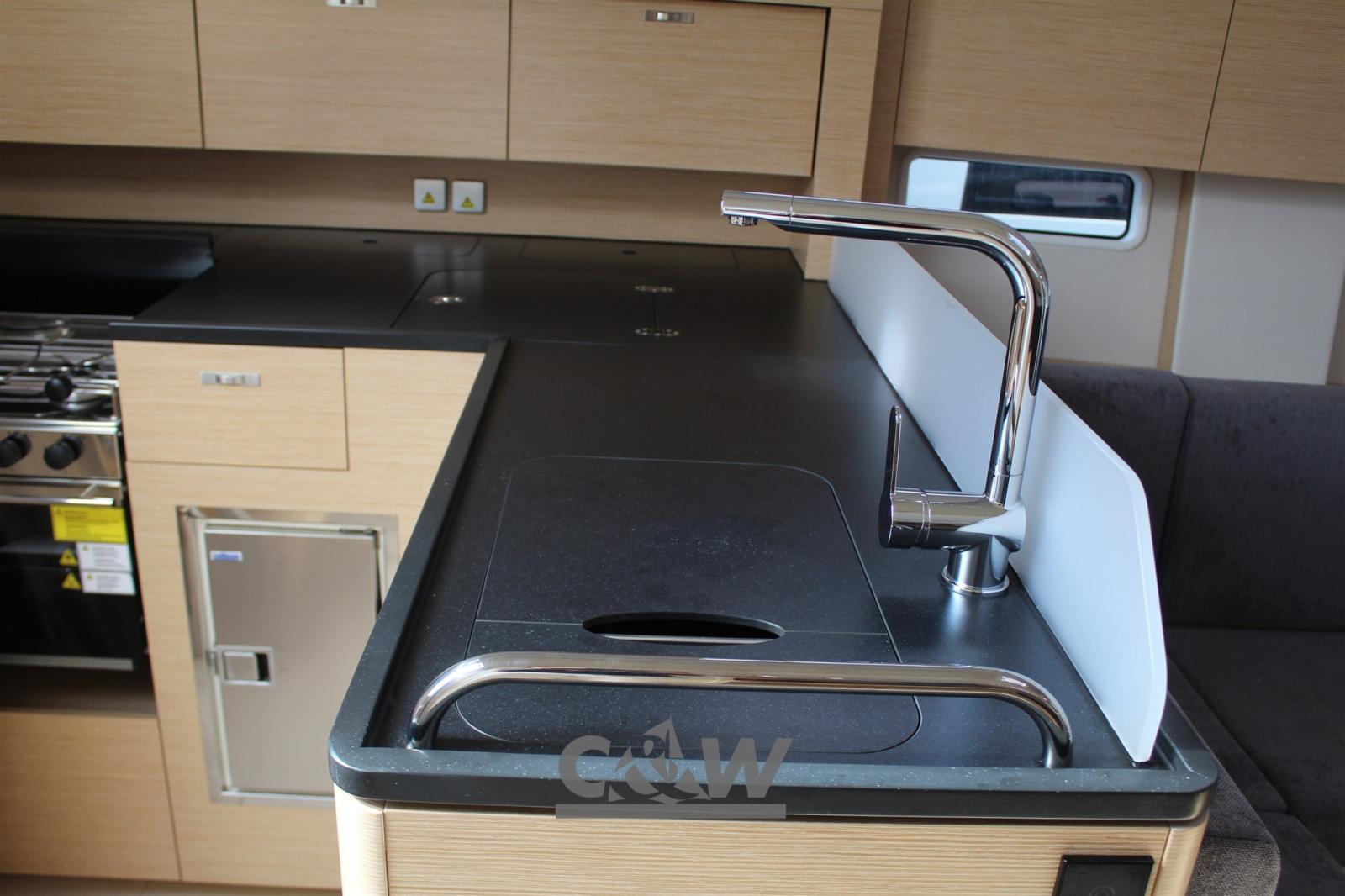 Gouvernail en composite blanc, deuxième réservoir d’eau de 79L, dînette convertible