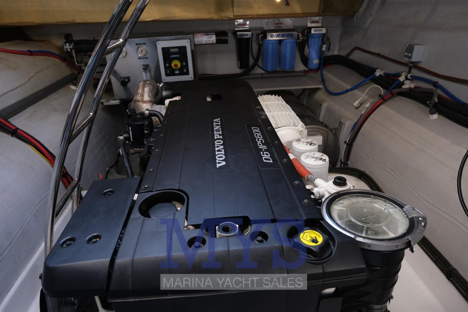 Alarme moteur, Eau sous pression, Douche de cockpit, Double barre à roue, Phare de poursuite, Flaps hydrauliques, Extincteur(s) fixe(s), Indicateurs de flaps, Éclairage de courtoisie, Panneau solaire, Passerelle, Plateforme arrière, Pompe de cale automatique, Porte latérale, Cockpit en teck, Prise de quai, Connexion eau sous pression à quai, Guindeau électrique, Echelle de bain, Selles pour Annexe, table de cockpit, Corne, T-Top, Winch électrique arrière.