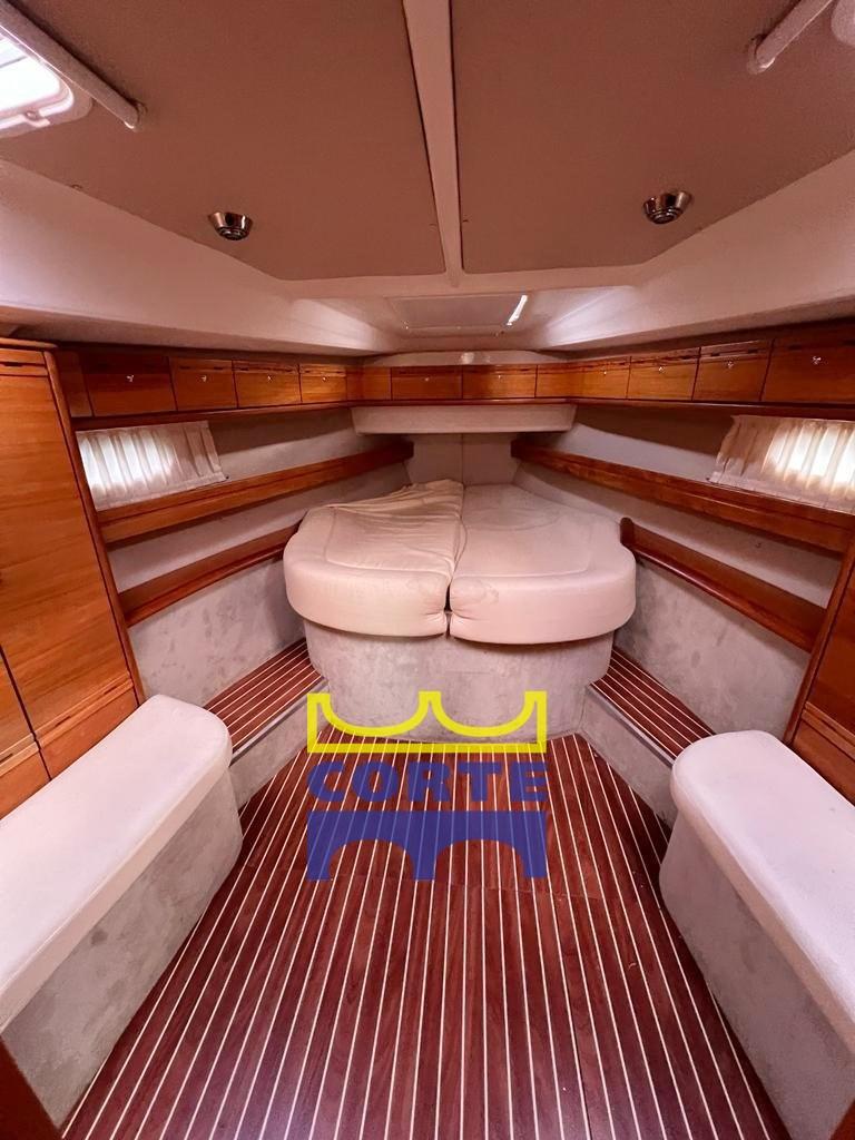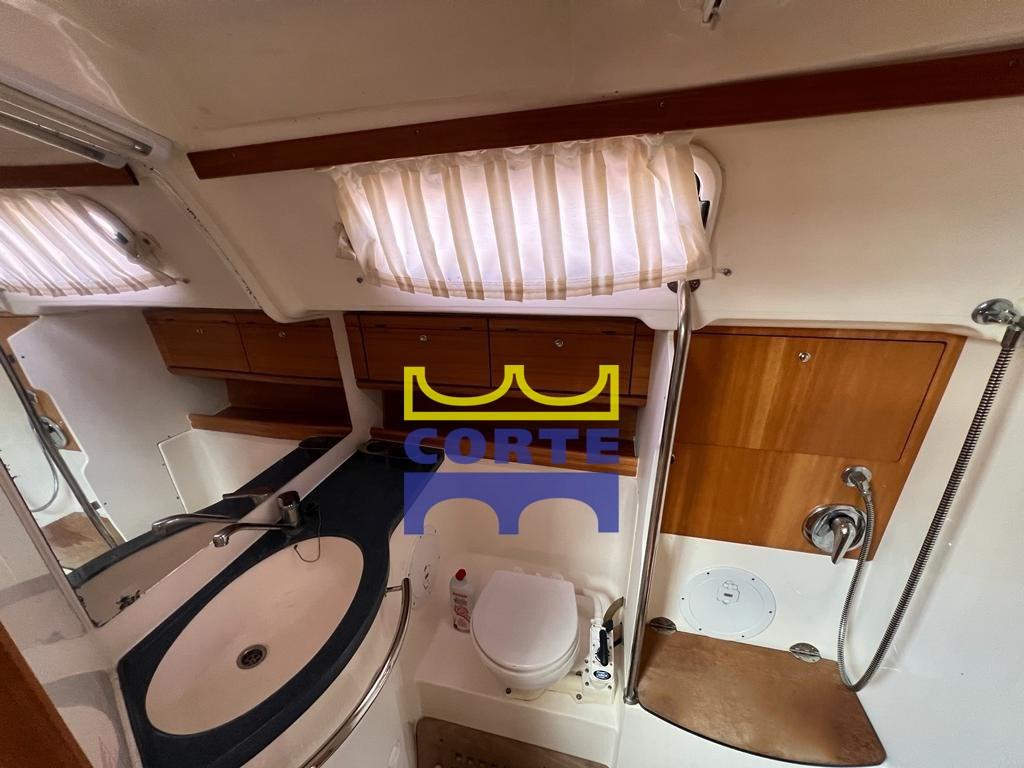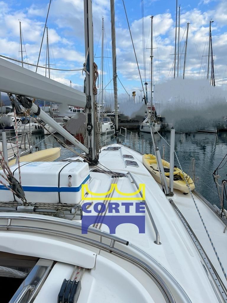 Eau sous pression (Jabsco), Chargeur de batterie (Quick SBC501), Douche de cockpit, Double barre à roue, Propulseur d'étrave (Sp75 Sleipner), Passerelle (teak acciaio), Pompe de cale automatique, Pompe de cale manuelle, Porte latérale, Cockpit en teck, Prise de quai, Guindeau électrique (Quick Hectot), Gréement monotoron, Echelle de bain, table de cockpit, 2 Winch électrique (pozzetto), Windex.