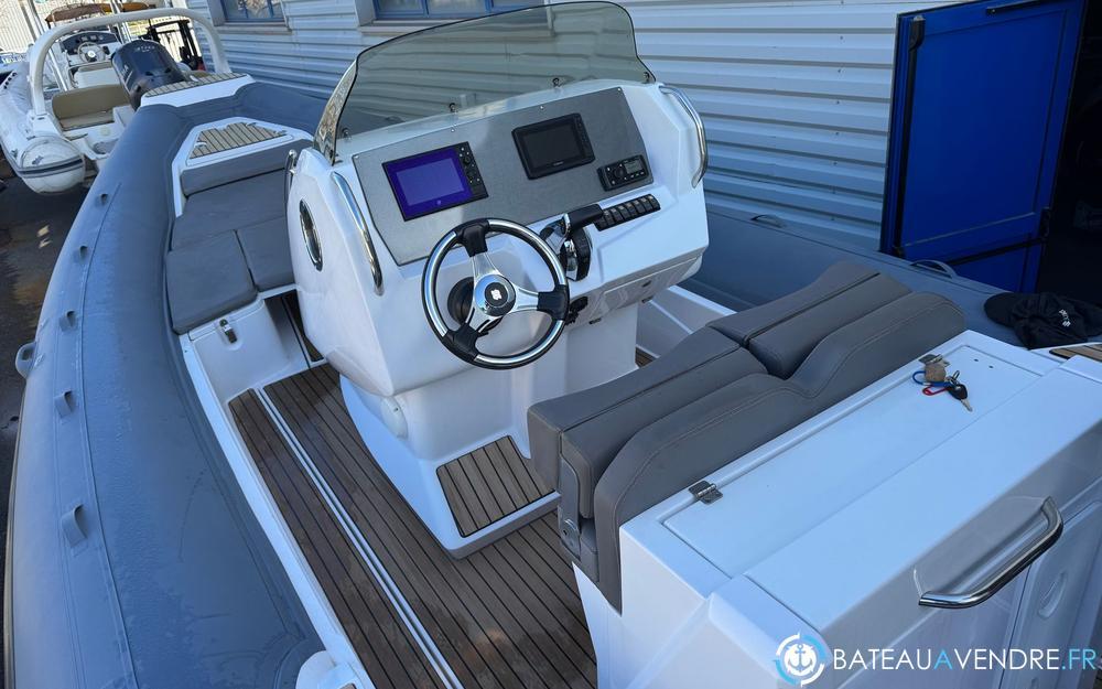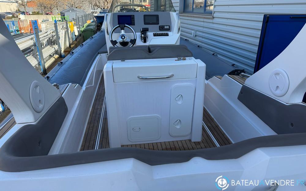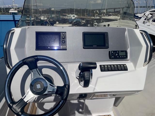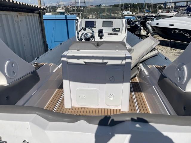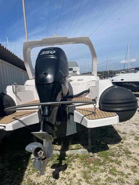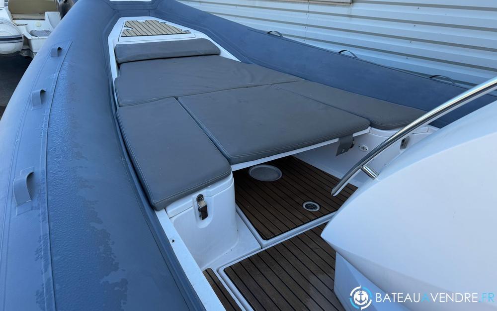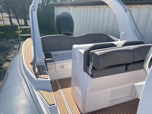 Performance grâce à son moteur 4 temps MERCURY RACING 350CV(170h), confort en navigation grâce à sa carène en V prononcé et farniente et liberté de mouvement grâce à son plan de Pont.