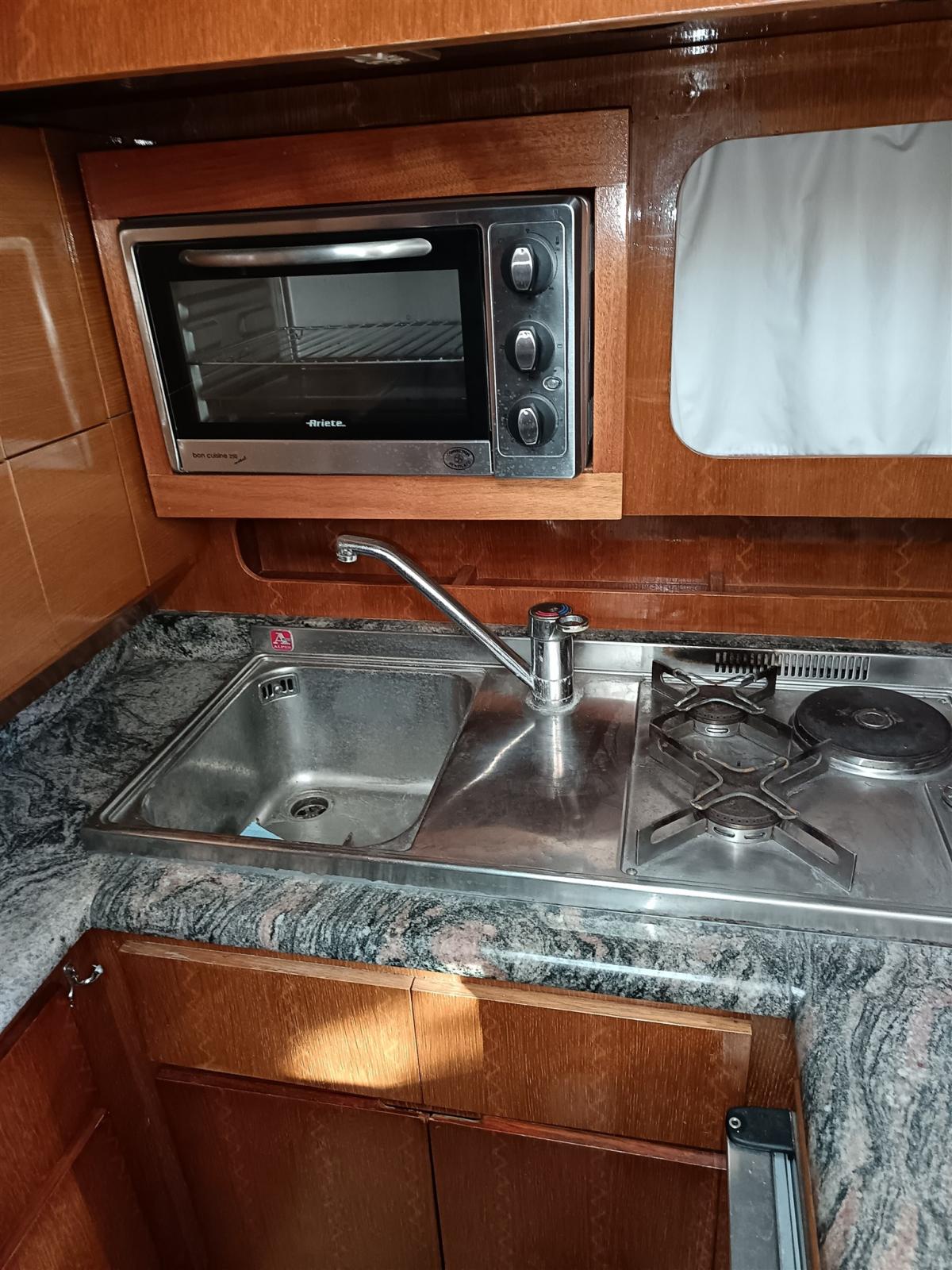 Alarme moteur, Alarme de pompe de cale, Eau sous pression, 4 Batteries, Douche de cockpit, Phare de poursuite, Extincteur(s) fixe(s), Indicateurs de flaps, Éclairage de courtoisie, Passerelle (Idraulica), Plateforme arrière (Teak), Pompe de cale automatique, Cockpit en teck, Prise de quai, Connexion eau sous pression à quai, Rollbar, Guindeau électrique, Echelle de bain, Corne.