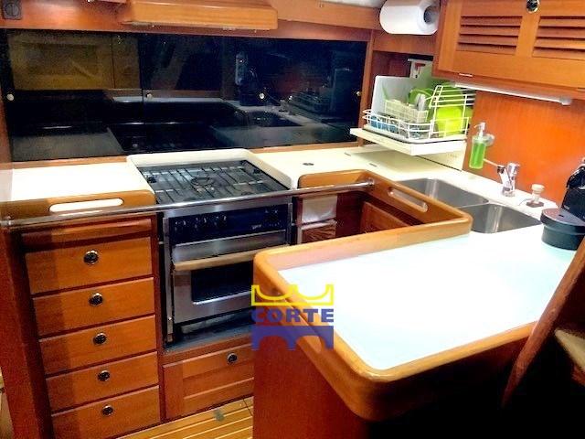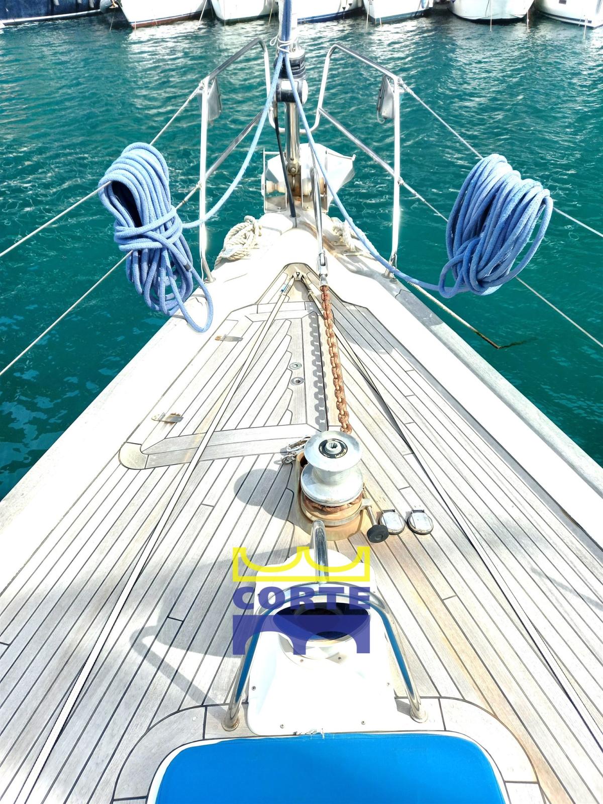 Alarme moteur, Alarme de pompe de cale, Ancre (Delta recente), Eau sous pression, Batteries (2023), Passavant en teck (recenti), 2 Chargeur de batterie (Victron), Douche de cockpit, Passerelle, Pompe de cale automatique, Porte latérale, Cockpit en teck, Prise de quai, Guindeau électrique (comando a pedale), Gréement monotoron, Echelle de bain, Chaise support HB, table de cockpit (abbattibile), Annexe (recente con motore Yamaha 25 HP), 3 Winch électrique.