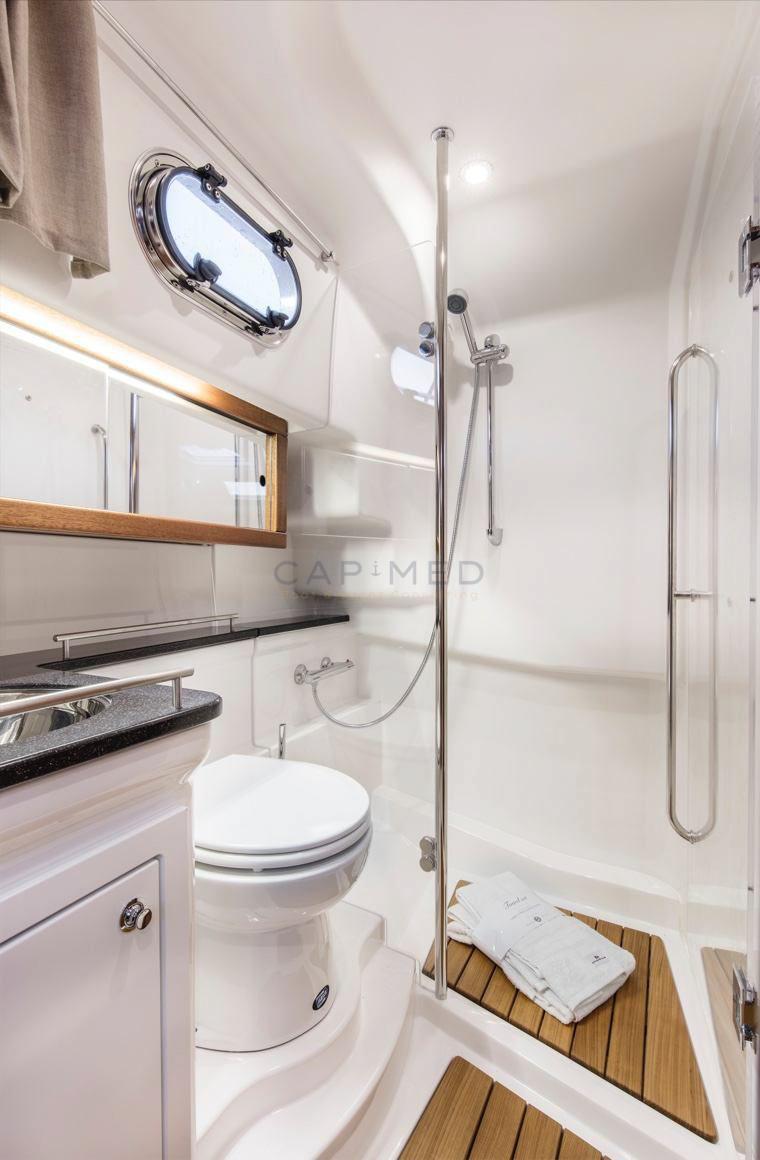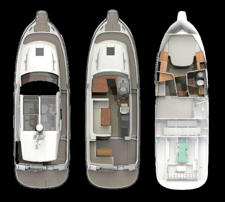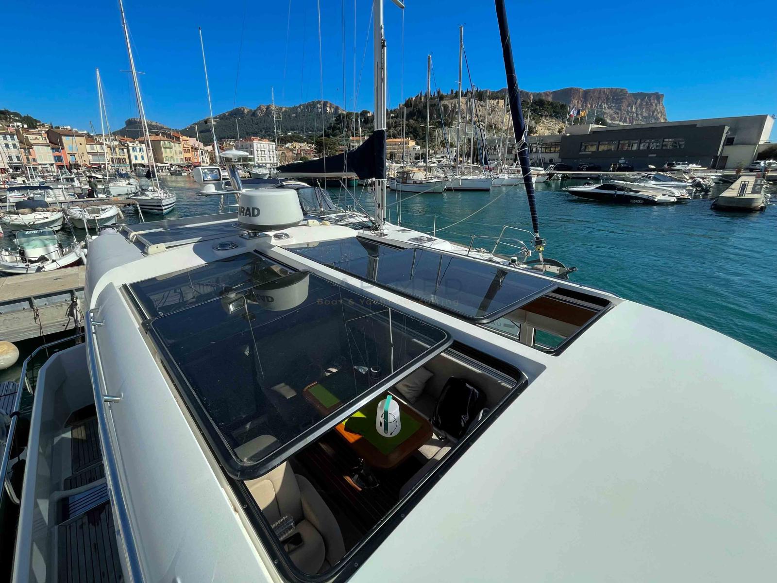Équipements premium : Toit ouvrant électrique, panneaux solaires, flaps automatiques, propulseur d’étrave et de poupe, guindeau électrique, ..