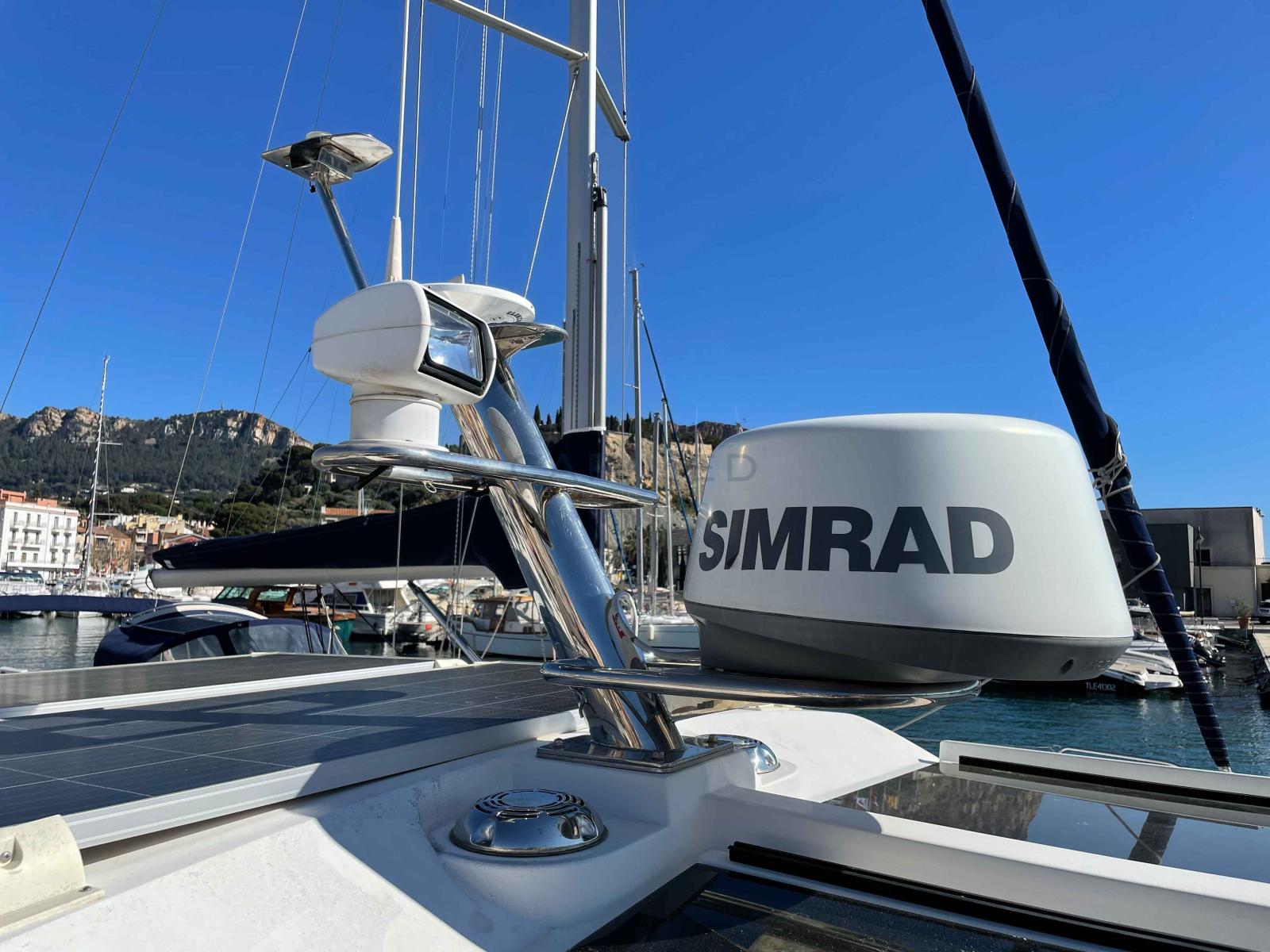 Électronique moderne : Ecran GPS 15" SIMRAD, Radar 4G, pilote auto avec télécommande, VHF/AIS