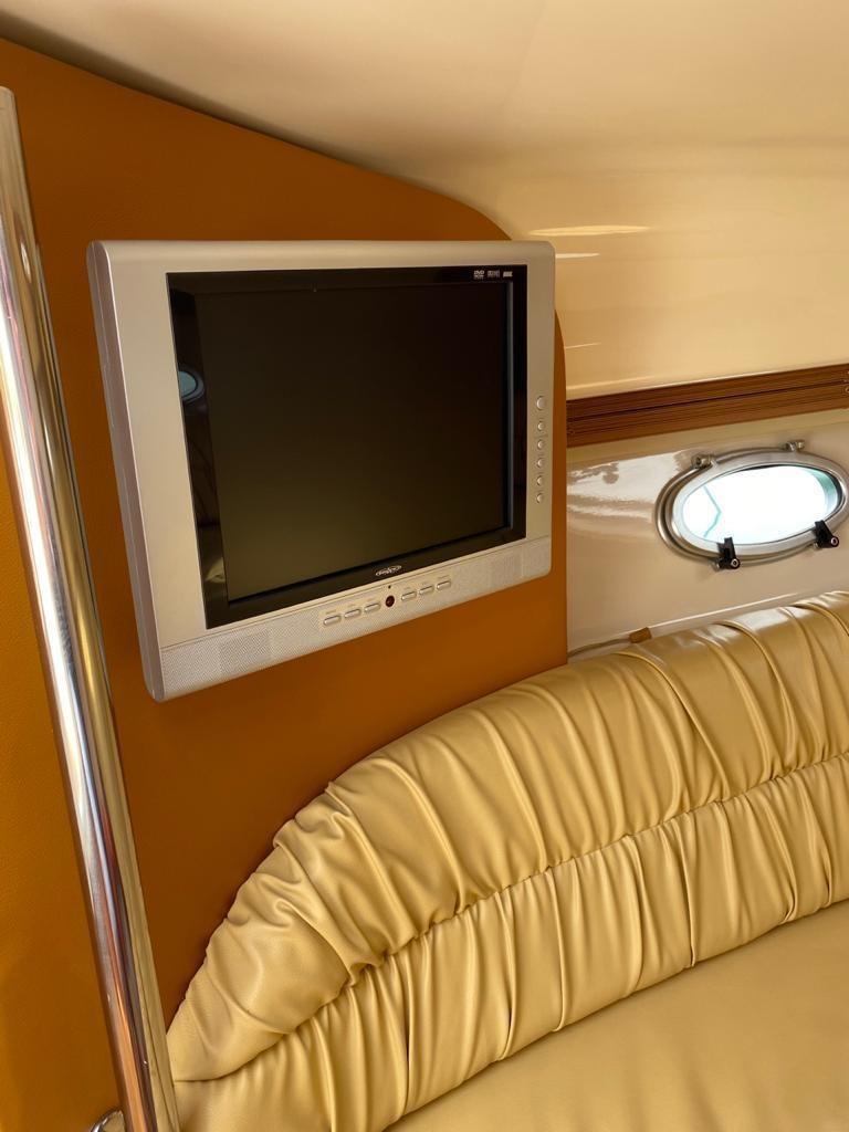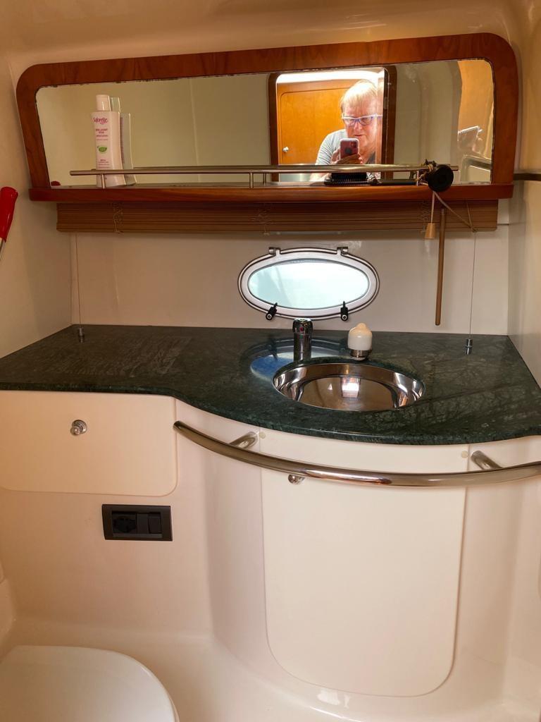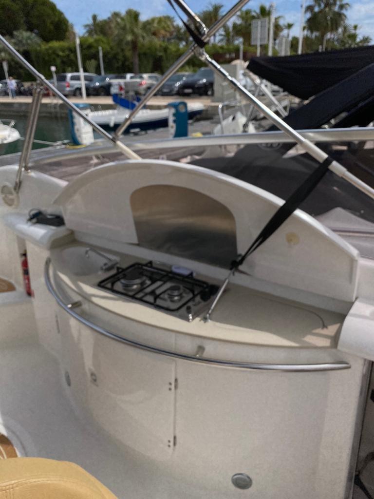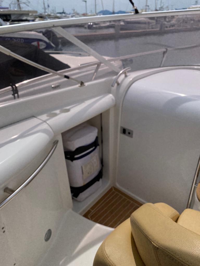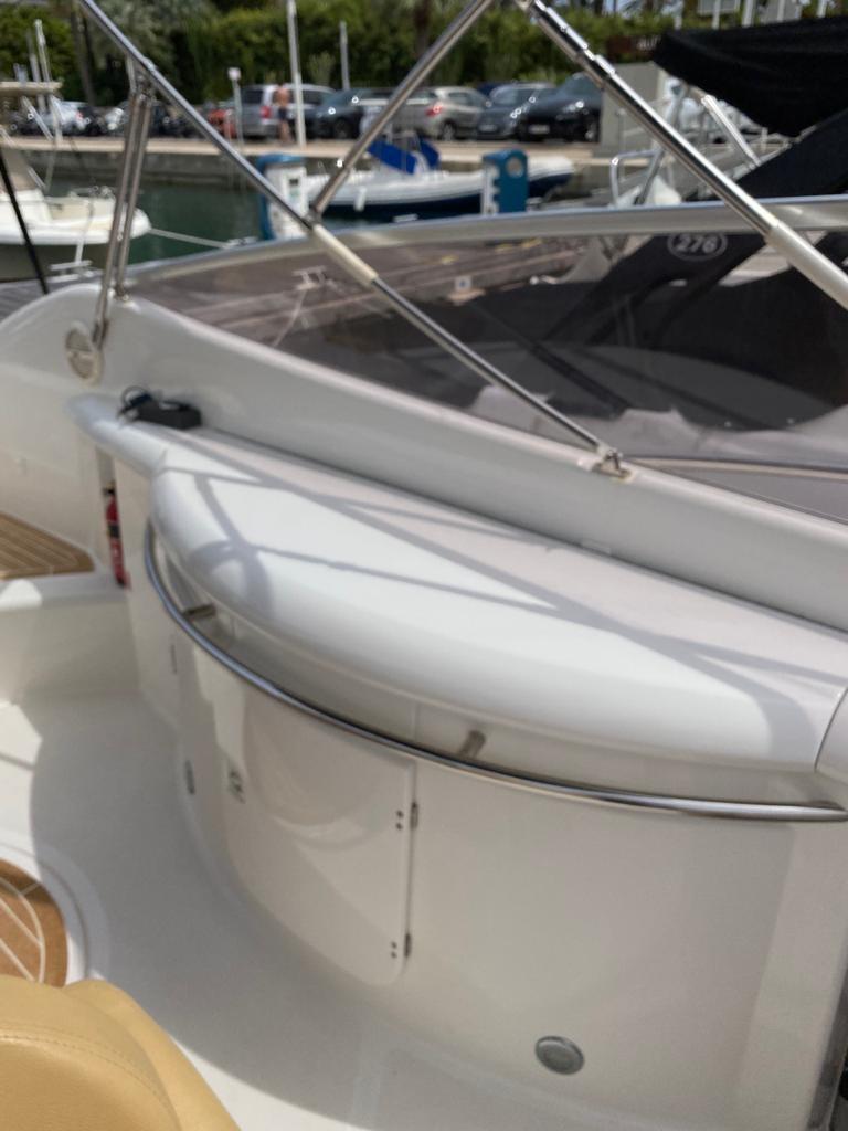 Alarme moteur, 3 Batteries, Douche de cockpit, Flaps hydrauliques (N°2), Passerelle, Plateforme arrière, Pompe de cale automatique, Cockpit en teck, Prise de quai, Guindeau électrique, Echelle de bain.
