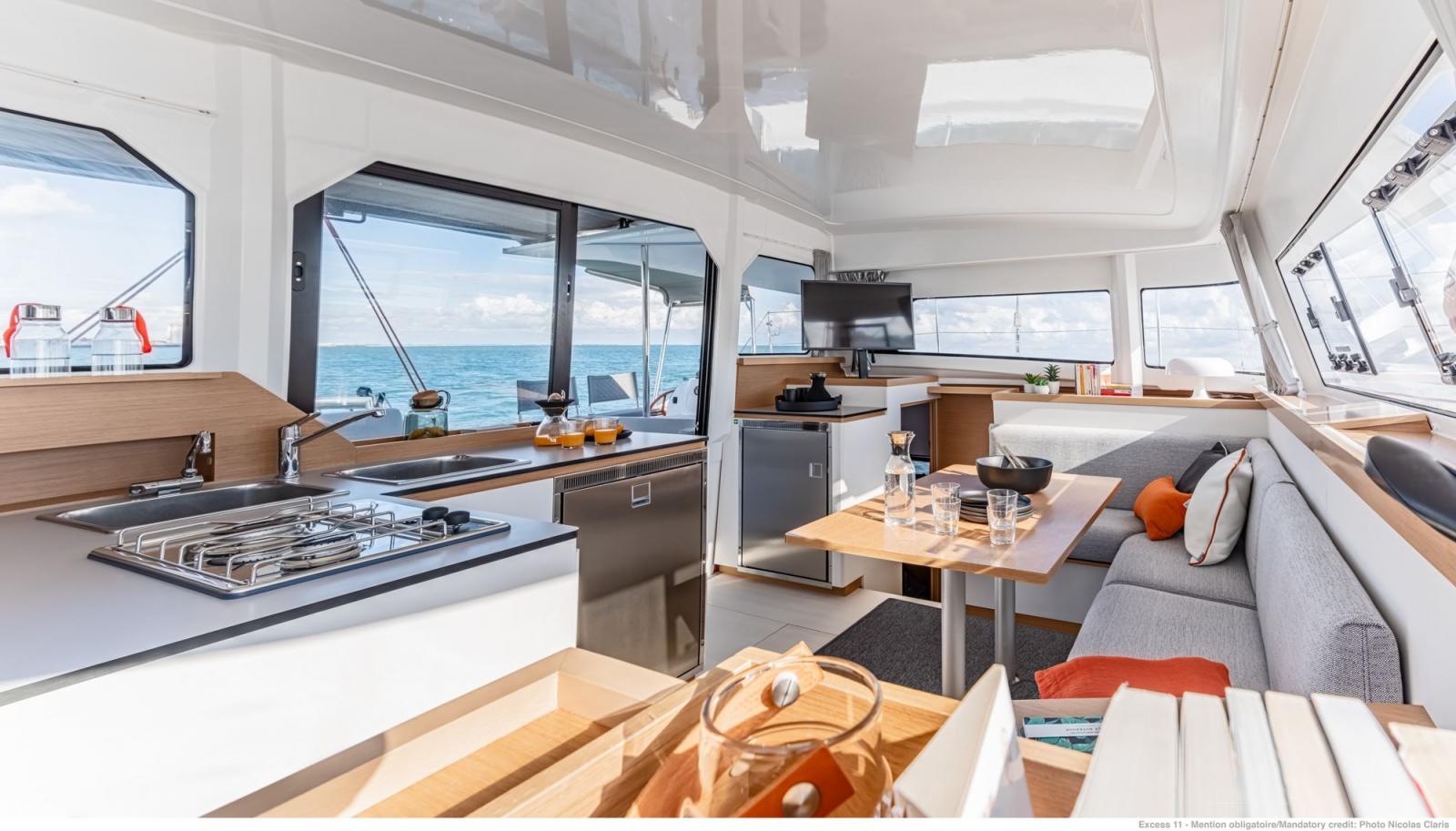 L’Excess 11 est l’unique offre de grande série sur le marché pour cette taille de catamaran. Ce catamaran de croisière de 37 pieds est impressionnant, tant en termes de confort et d'espace qu'en termes de sensations de navigation. L’Excess 11 est un bateau capable de grandes traversées et de vie à bord. Le travail du bureau d’études et des designers a été concentré sur un objectif : fournir un vrai catamaran de croisière capable de vous emmener dans le spot le plus reculé de la terre pour profiter d’une crique isolée, d’une plage abandonnée ou d’une vague secrète.