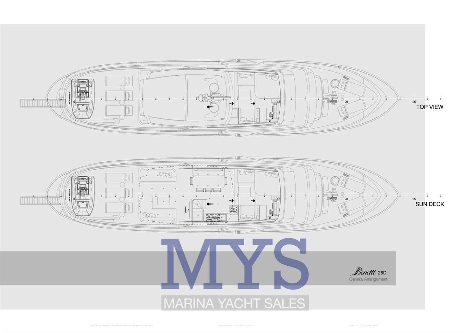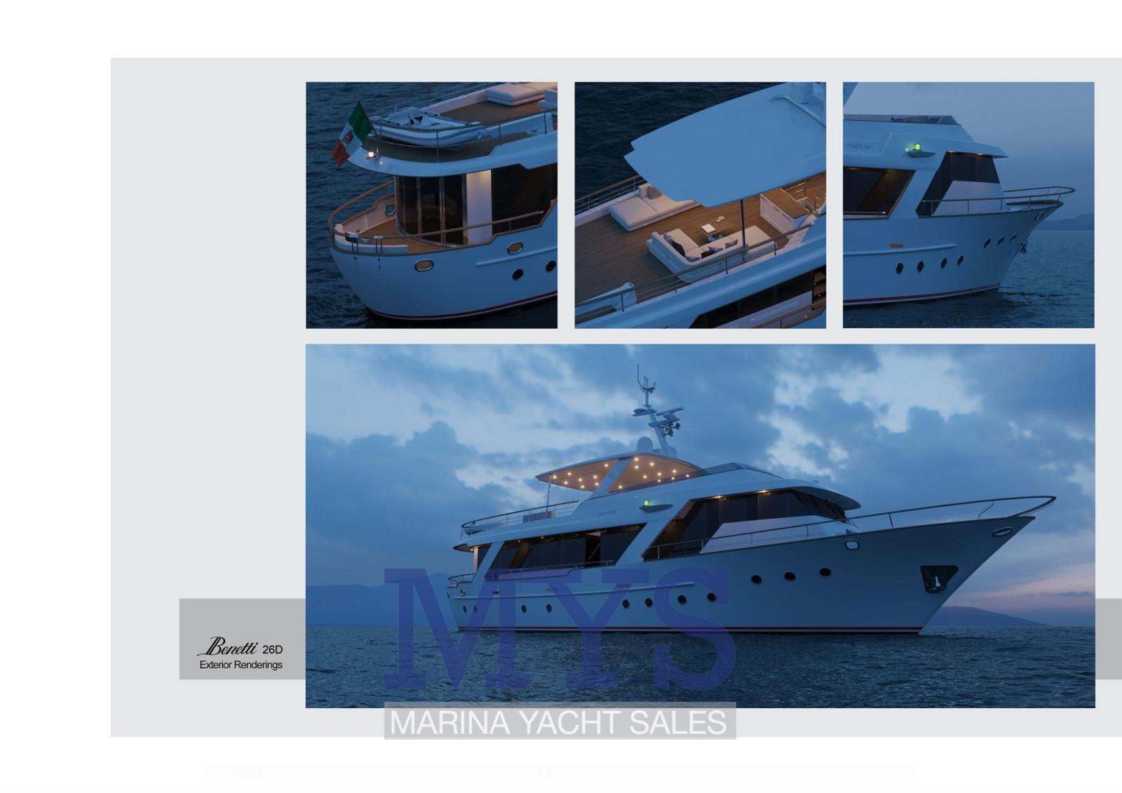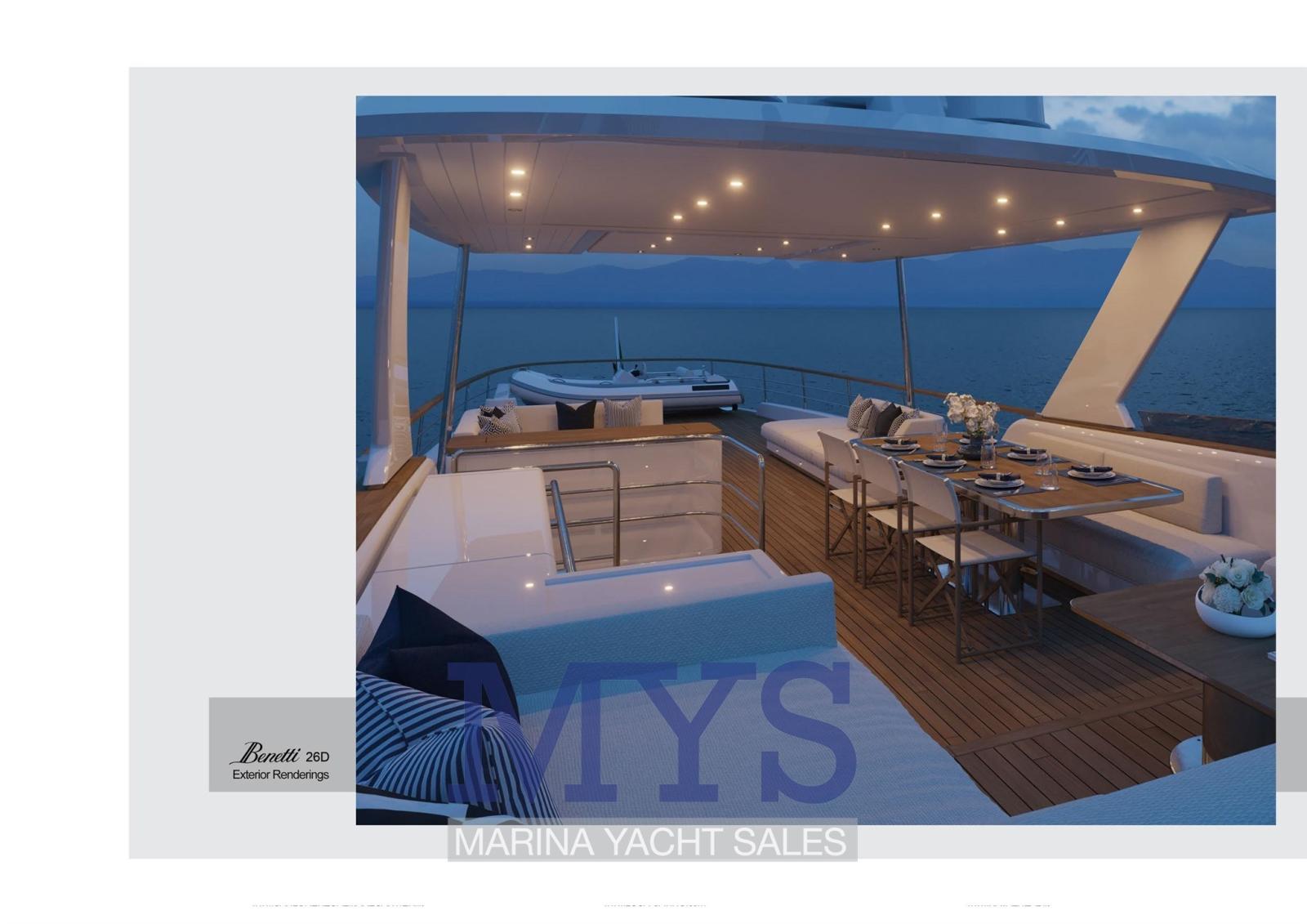 Alarme gaz, Alarme moteur, Alarme de pompe de cale, 2 Ancre, Eau sous pression, Système de vidange, Passavant en teck, Douche de cockpit, Phare de poursuite, Bossoirs pour annexe (Su Fly Bridge), Grue de flybridge, Hard top (Fly Bridge), Lavage de chaine, Éclairage de courtoisie, Spots sous-marins, Passerelle (A scomparsa), Pompe de cale automatique, Pompe de cale manuelle, Porte latérale, Porte latérale, Cockpit en teck, Prise de quai, Connexion eau sous pression à quai, Guindeau électrique, Echelle de coupée, Echelle de bain, Système de filtration des eaux usées, Stabilisateurs, table de cockpit, Annexe, Corne, T-Top, Winch électrique arrière, Winch électrique avant.
