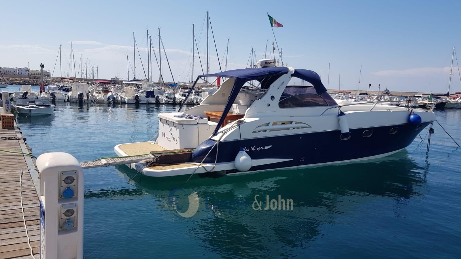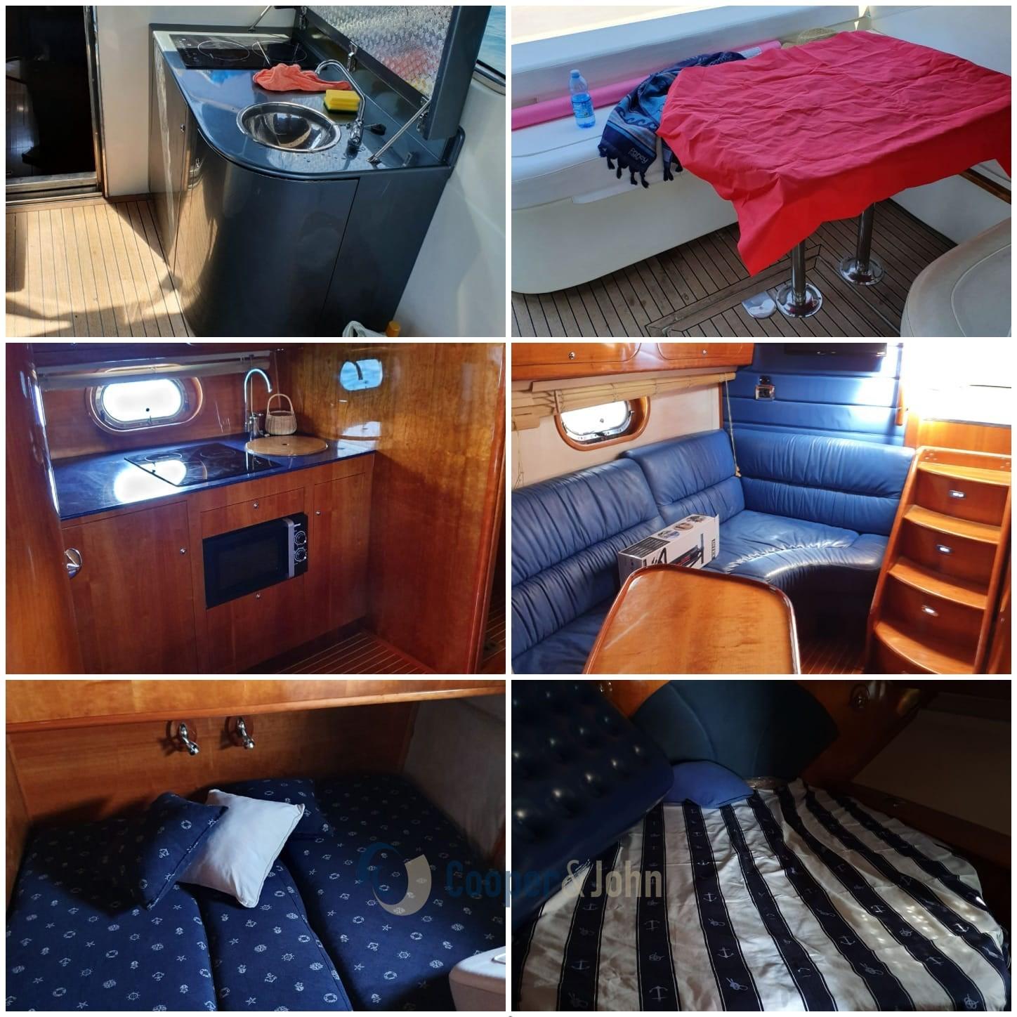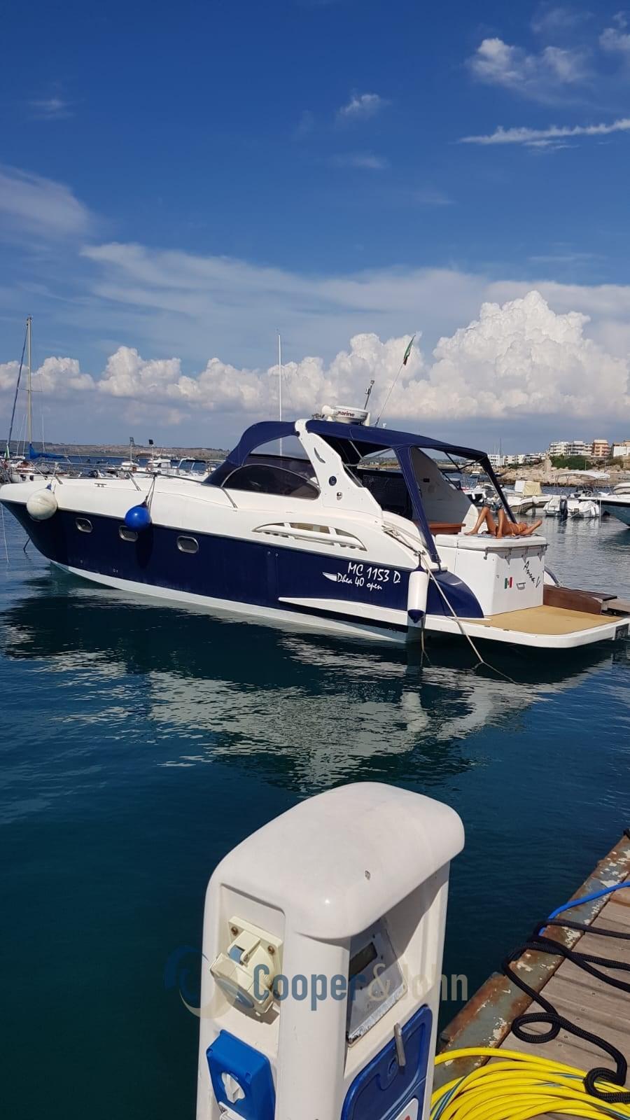 Eau sous pression, 4 Batteries, Propulseur d'étrave (2018 nuova), Passerelle (idraulica), Plateforme arrière (1,30 mt), Prise de quai, Rollbar, Guindeau électrique, Echelle de bain (con commando idraulico).