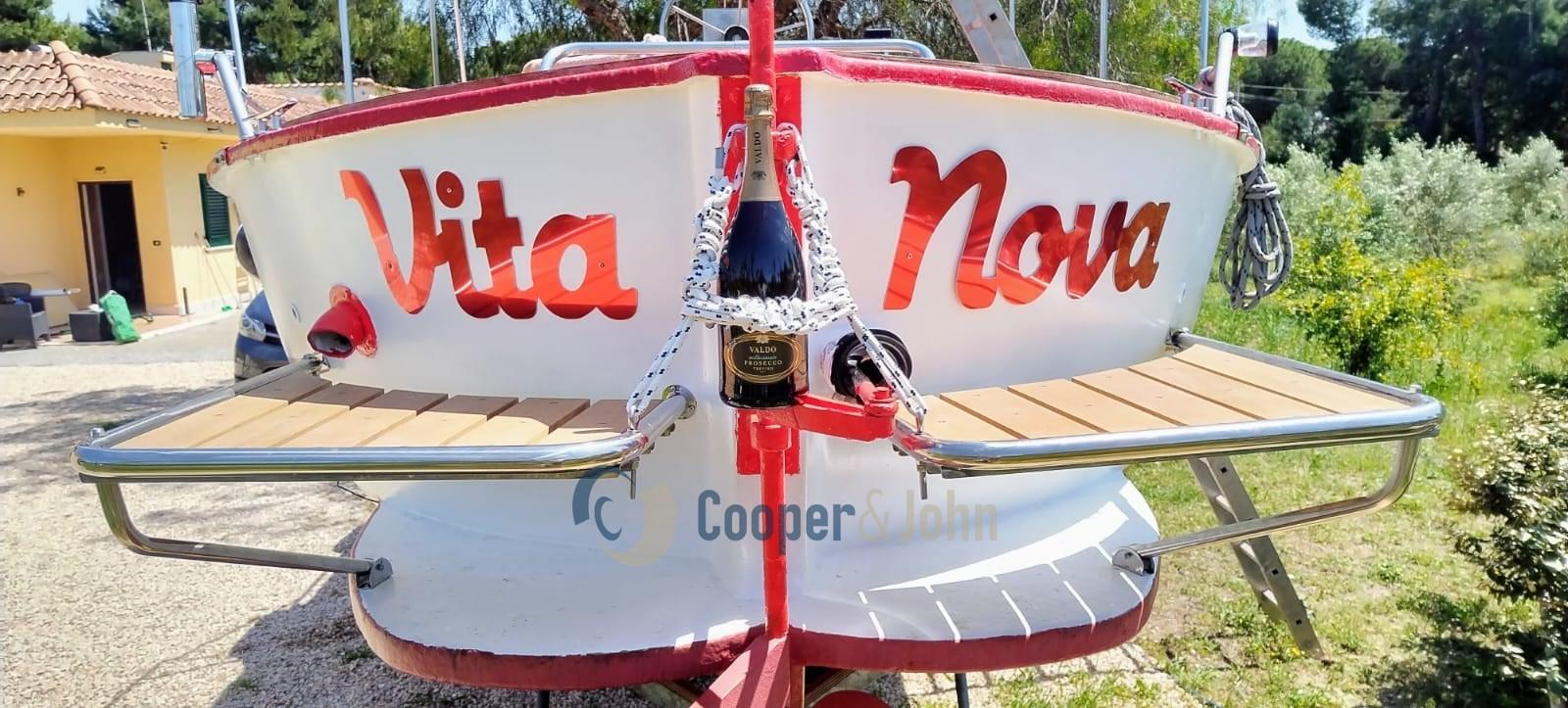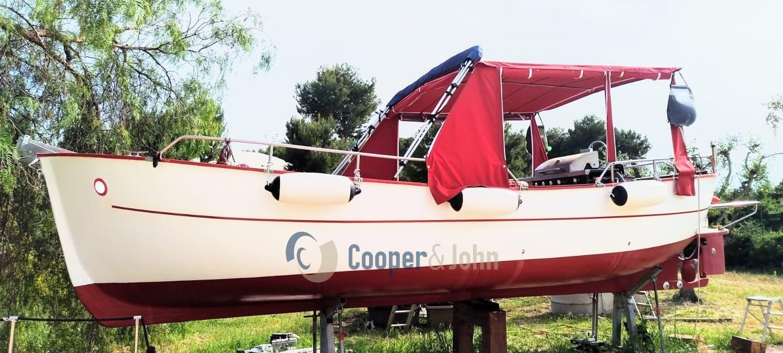 Ancre (7 Kg. mt. 25 catena da 8 mm), Batteries (180 amp 2023), Double barre à roue, Plateforme arrière (con gruette e scaletta bagno).