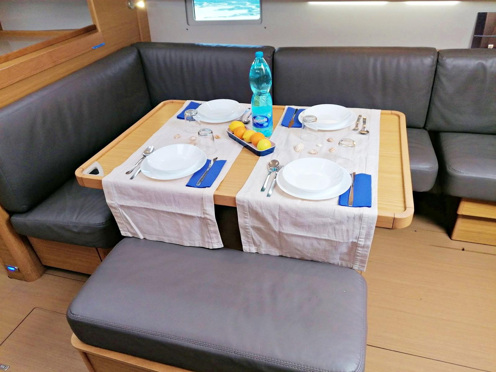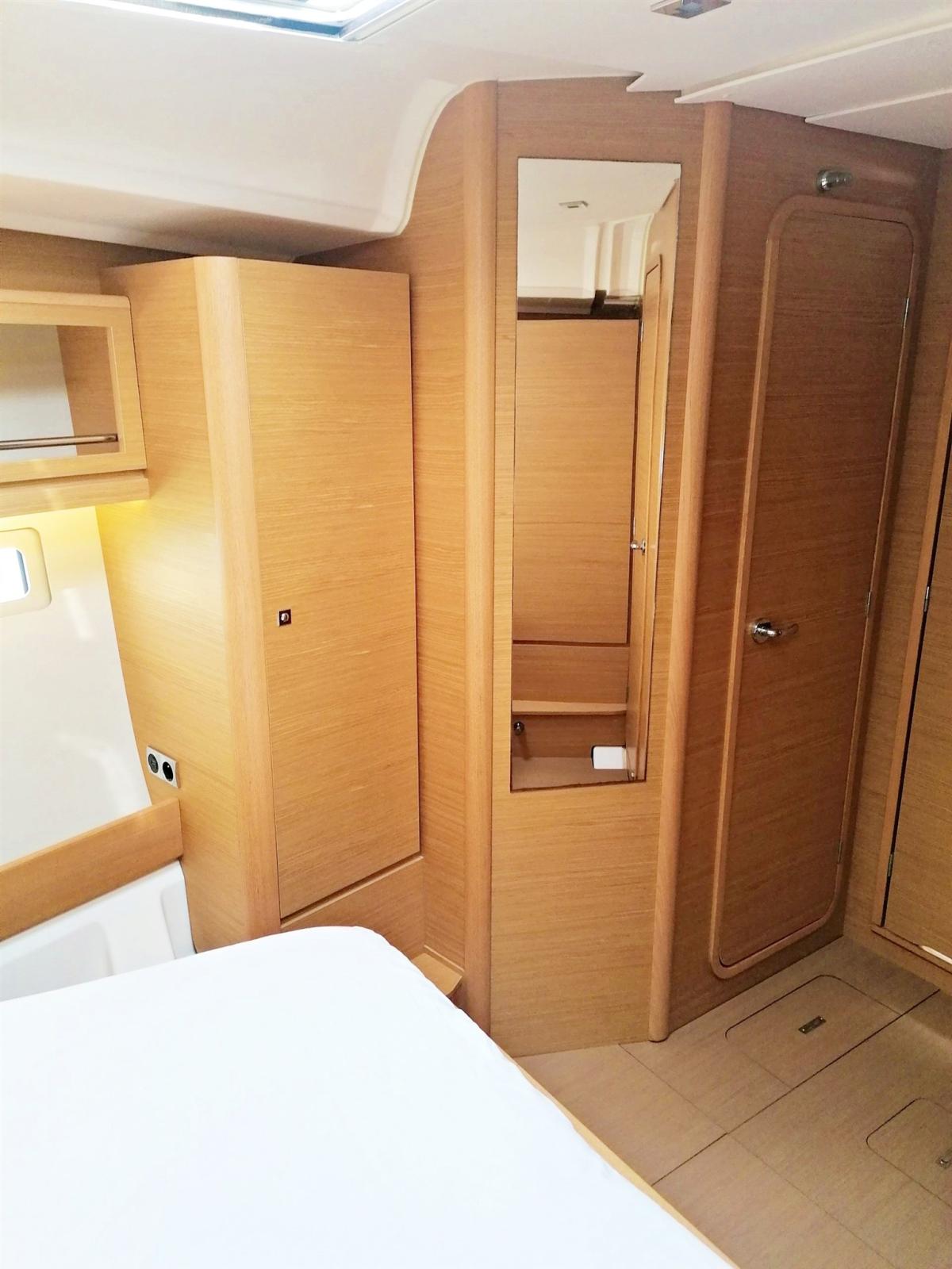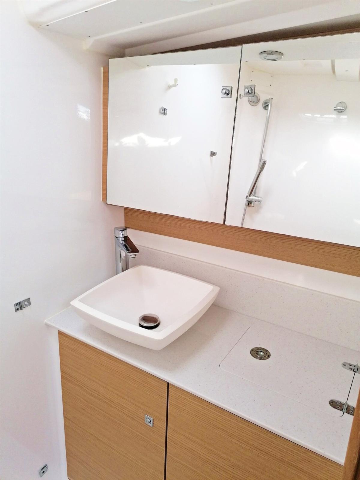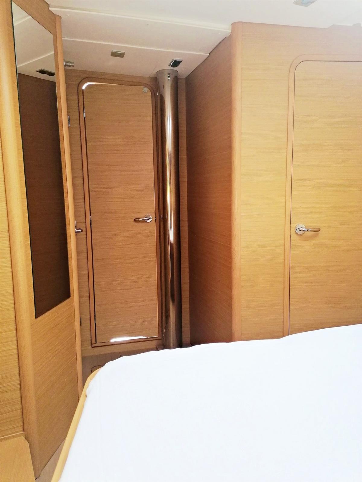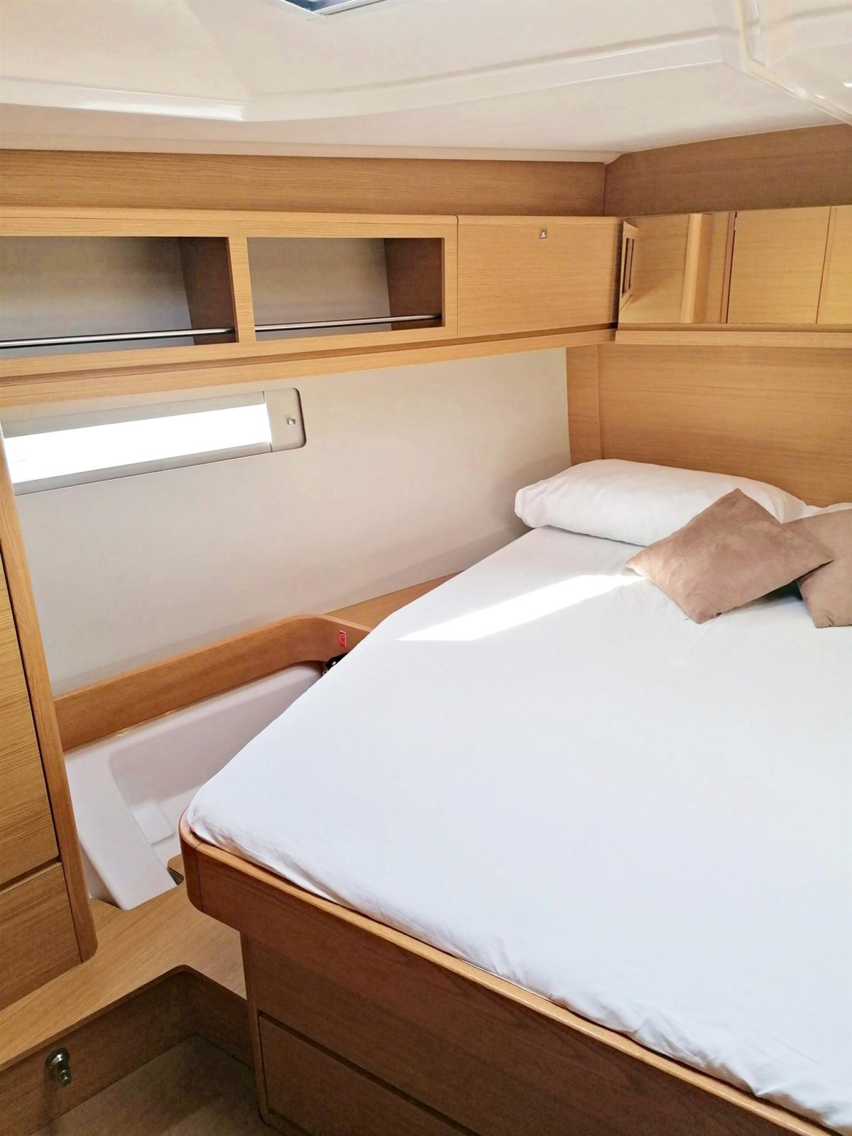 3 cabines doubles et 2 salles de bain, 8 couchettes (6+2), intérieur chêne clair, moteur turbo Volvo 75 cv, longueur hors tout 14,15 m (13,50 m certifié CE), propulseur d’étrave rétractable, grand-voile lattée et foc autovireur, lazy bag, lazy jacks, capote, bimini, électronique complète Raymarine avec gps dans le cockpit, fond du cockpit et plateforme de bain en teck, Coussins de dinette en éco-cuir, etc.