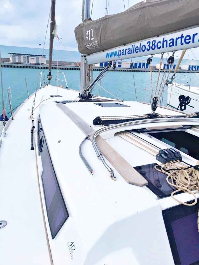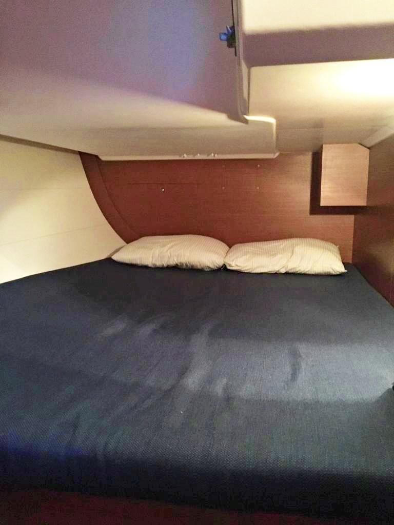3 cabines doubles et 2 salles de bain, 9 couchettes (6+3), intérieurs en bois de Moabi, joints blancs sur le fardage, moteur Volvo 60 cv, hélice repliable 3 pales, grand-voile lattée et génois sur enrouleur, capote, biminis, électronique Raymarine complète avec gps dans le cockpit, fond de cockpit en teck et plateforme de bain, barbecue et évier dans le cockpit, bancs de cockpit doubles extensibles (ils deviennent deux grands bains de soleil), Coussins de dinette en éco-cuir, etc.