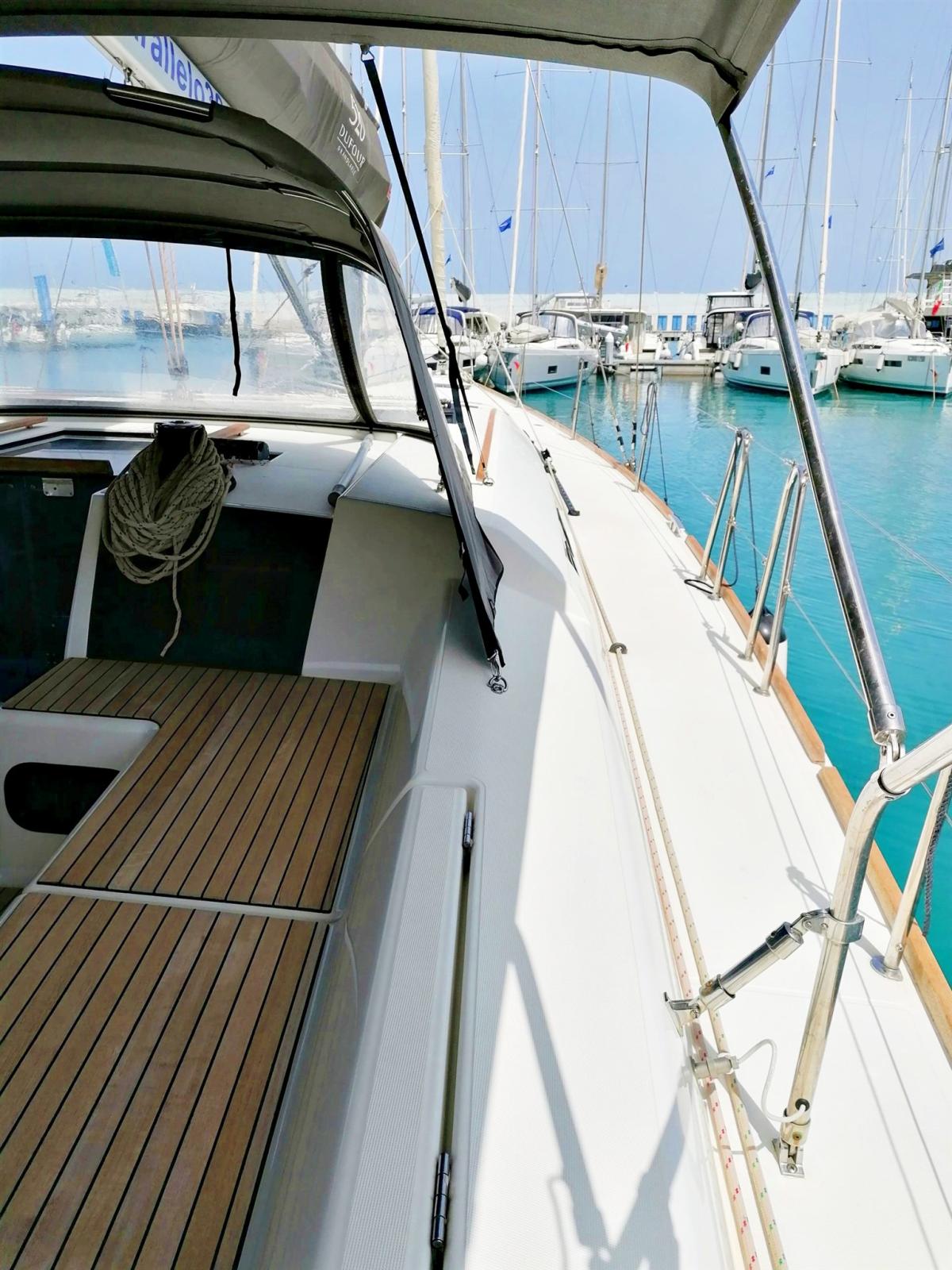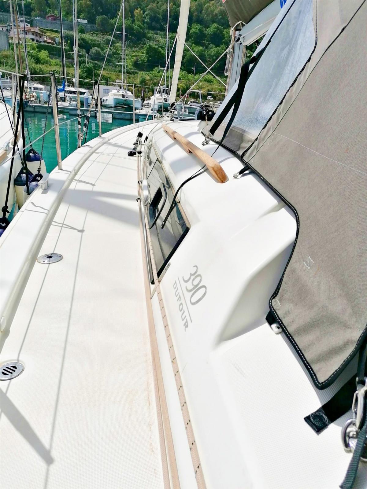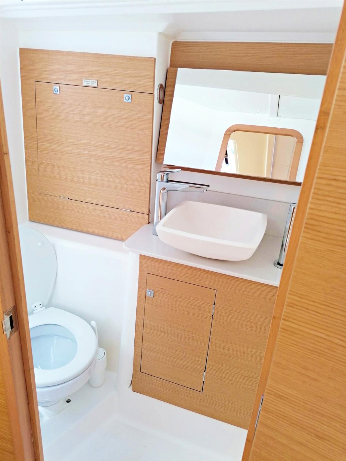 3 cabines doubles et 3 salles de bains, 8 couchettes (6+2), intérieur en chêne blanchi, moteur Volvo 40 cv, grand-voile lattée et génois sur enrouleur, lazy bah, lazy jack, capote, bimini, électronique complète Raymarine avec gps dans le cockpit, fond de cockpit en teck et plate-forme de bain, barbecue et évier dans le cockpit, coussins de dinette en éco-cuir, etc.