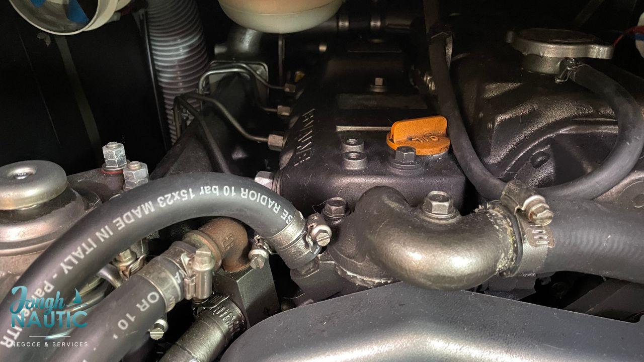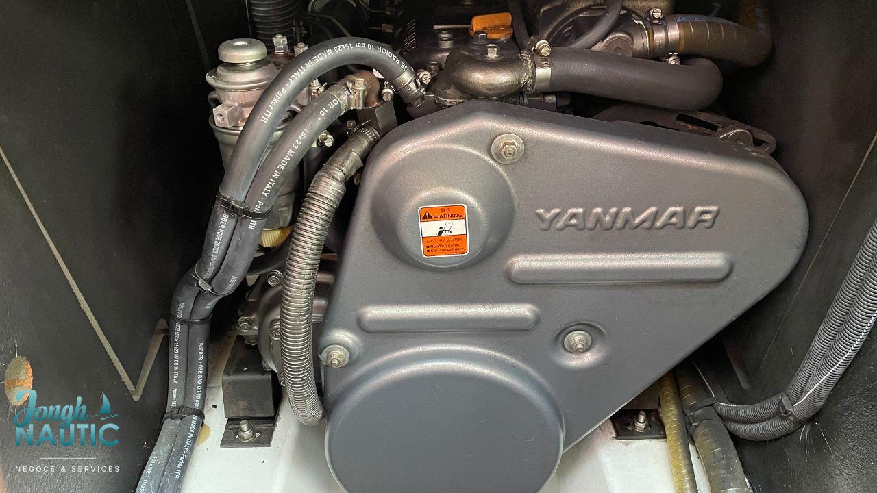 Moteur YANMAR 110cv avec une hélice trois pales fixe. Actuellement 1200 heures.