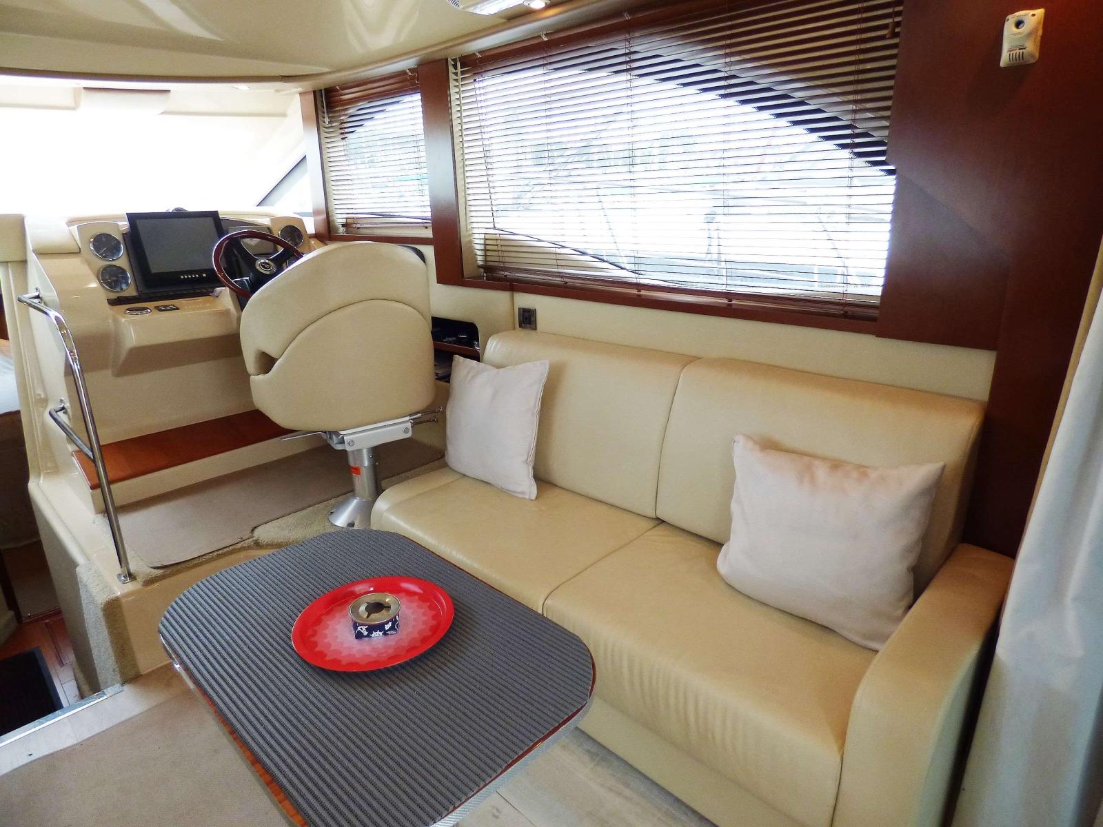 Beau fly avec poste de pilotage, coin repas transformable en bain de soleil.