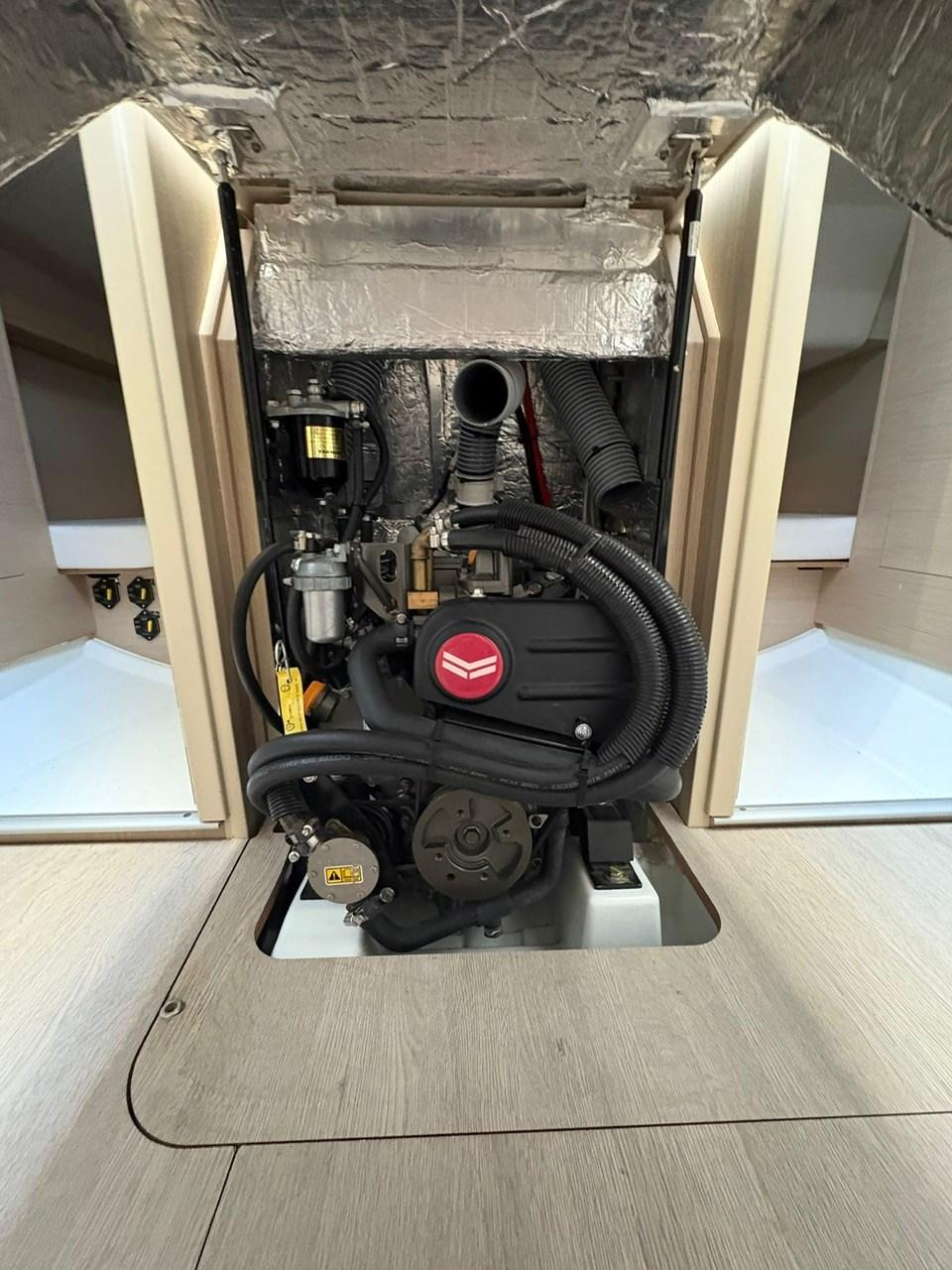 Alarme gaz, Eau sous pression, 3 Batteries, Douche de cockpit, Double barre à roue (Ruote in carbonio), Moniteur de batterie, Moteur d'annexe (Yamaha 2.5), Panneau solaire (2025 su bimini), Défenses (6), Plateforme arrière (Ribaltabile), Pompe de cale automatique, Cockpit en teck, Prise de quai, Onduleur, Guindeau électrique, Gréement monotoron, Echelle de bain, Chaise support HB, table de cockpit, Annexe (Piccolo), 2 Winch, Windex.