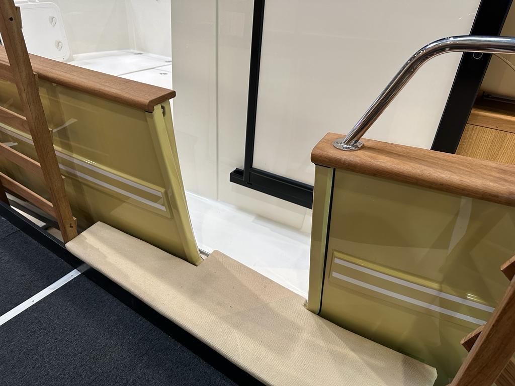 Les lignes de balcons ont été redynamisées. Une gamme de nouveaux coloris très tendances a été rajoutée aux choix habituels. Le style du covering a été entièrement revu avec un nouveau logo et de nouvelles lignes. Le bloc Timonerie a été repensé, avec un nouvelle ligne continue de hublots en verre sécurit (vitres teintés) offrant une visibilité accrue de plus de 30 % supplémentaire et deux montants d’angles de timonerie personnalisés (peints à la couleur de la coque). Les lignes de balcons ont été redynamisées. Le pare-brise a été transformé, il est en verre sécurit de 12 mm d’un seul bloc, et teinté avec bande serigraphié anti UV. Les portes d’accès ont été élargies facilitant ainsi l’accès à la timonerie. La casquette a été entièrement dessinée pour une ligne générale plus tendu et elle offre un nouveau ciel de toit tout en bénéficiant d’une protection (ombrage) plus importante. Une nouvelle porte de coupée coulissante très fonctionnelle de largeur 50 cm a été rajoutée à Tribord.
