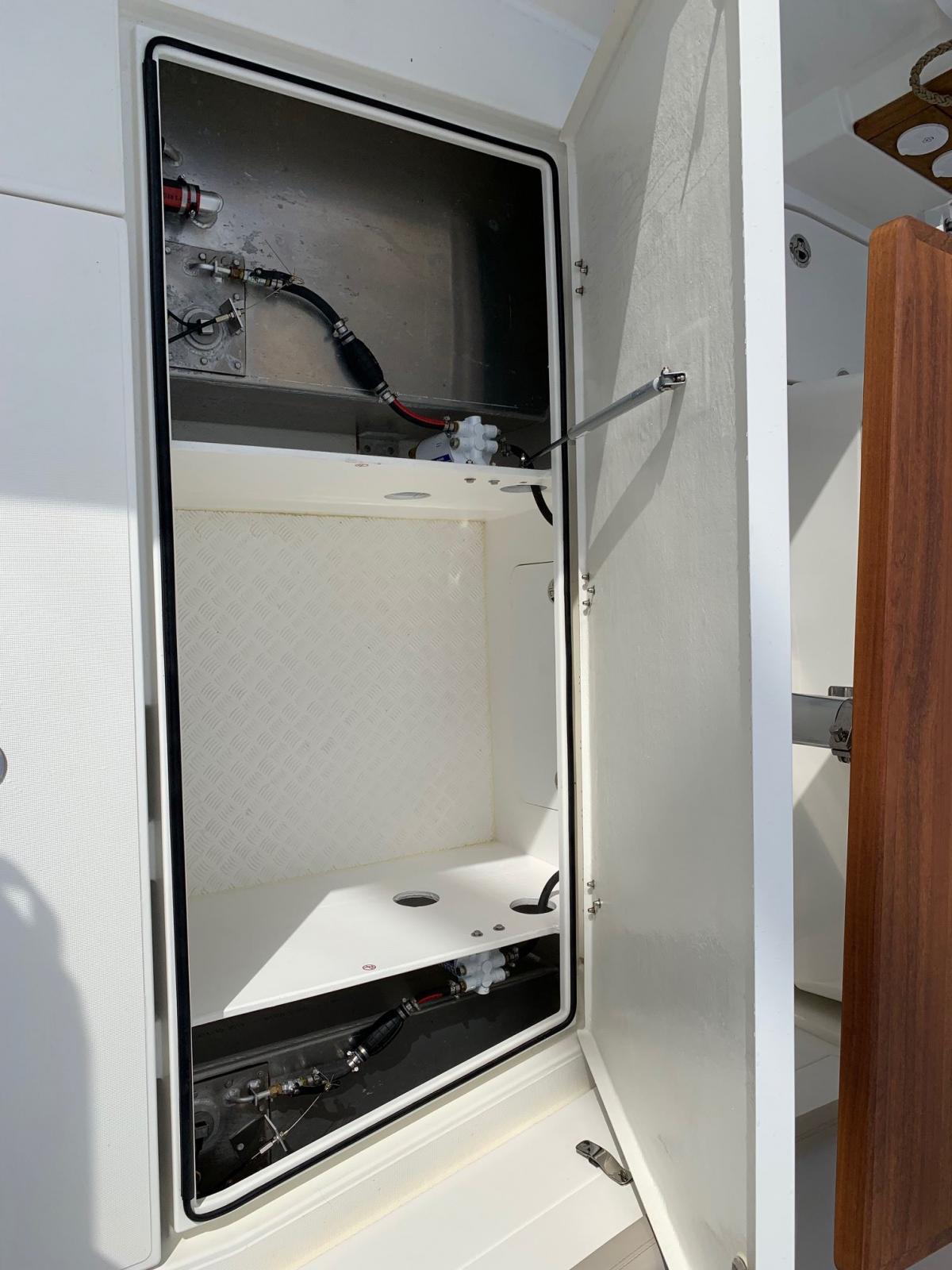 "Au sein de la cabine, très chaleureuse, de nombreux rangements viennent agrémenter la vie à bord."
