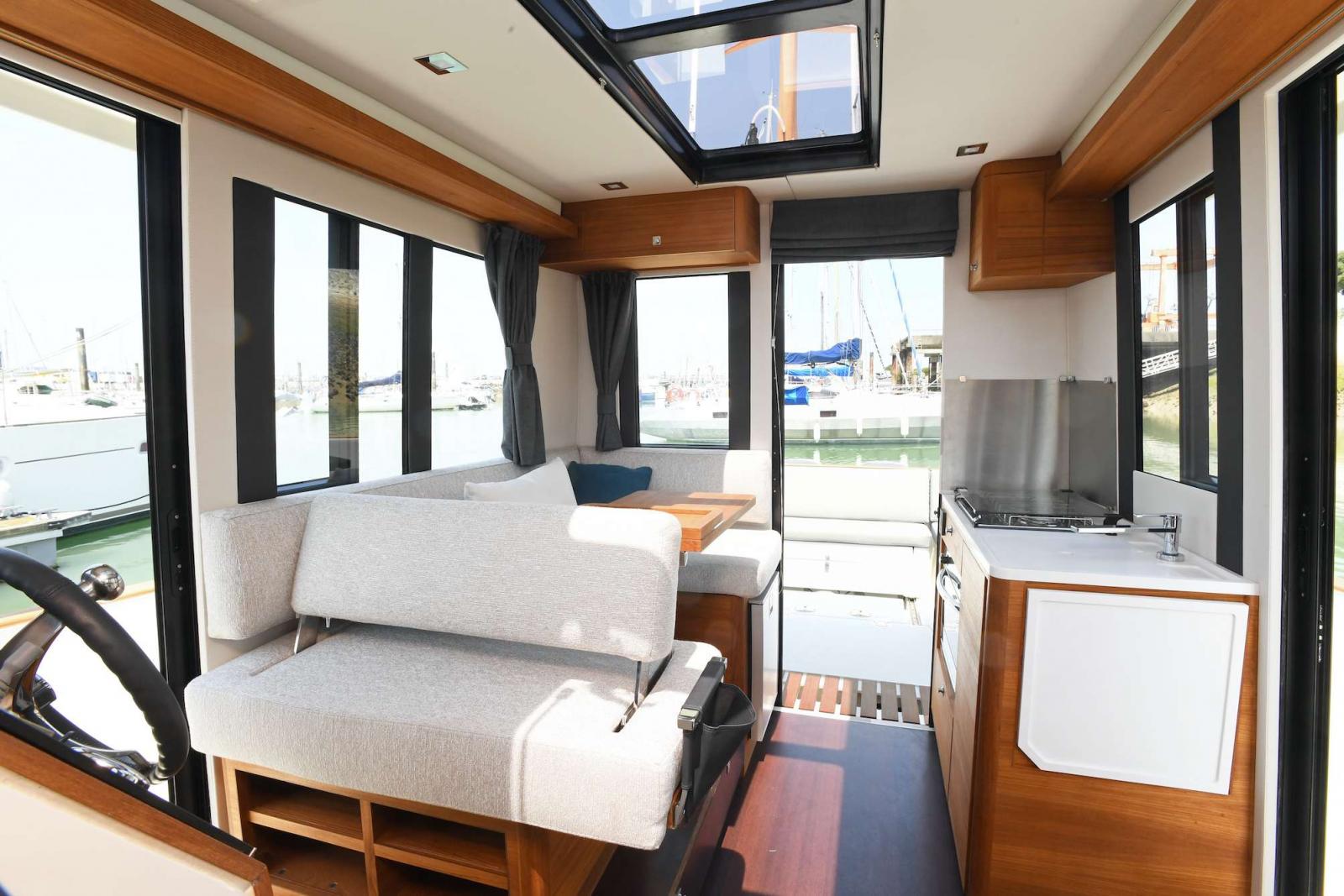 "Au sein de la cabine, très chaleureuse, de nombreux rangements viennent agrémenter la vie à bord."