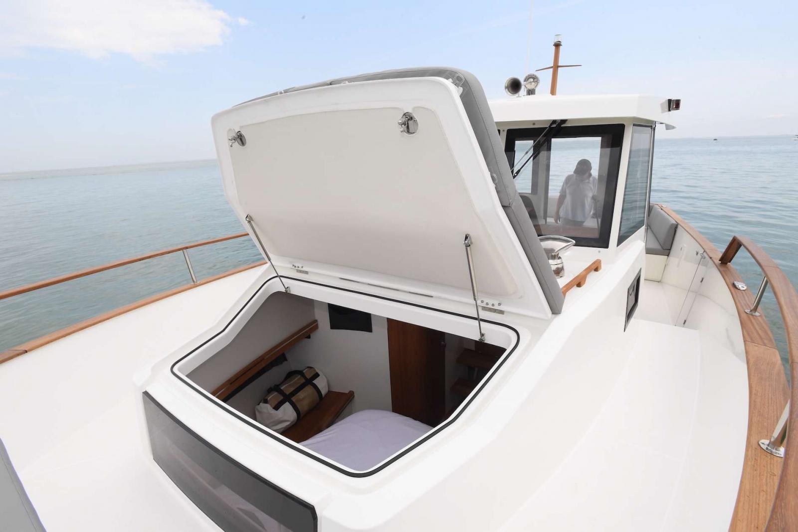 "le panneau de pont associé au roof ouvrant rendent la cabine avant d’autant plus lumineuse"