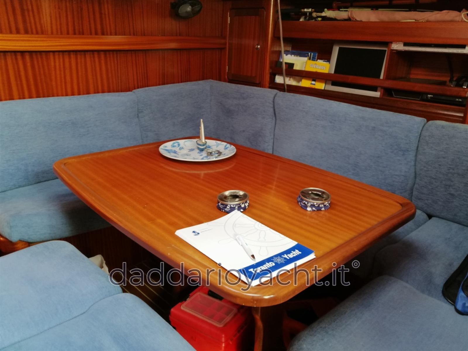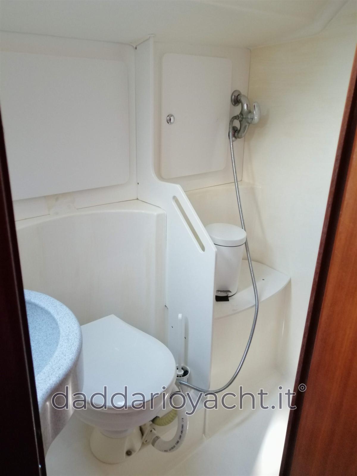 Il dispose de 3 cabines dont la cabine avant dispose de 4 lits (2 couchettes superposées). Il dispose de 3 salles de bains électriques. Une grande dinette et une cuisine en ligne sur le côté gauche. Déposez des voiles externes. Coussin de coulot externe. Profils Lewmar hublots inox.white rideaux internes. tissus de dinette en velours bleu récents.