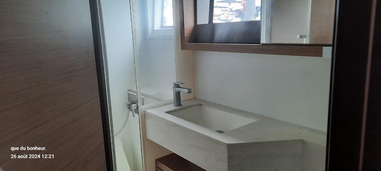 MANUFACTURER PROVIDED DESCRIPTIONThis new boat is the perfect compromise between the emblematic 450 model and the 52. She offers an attractive option to navigators in search of a large “seaworthy and modern" owner’s boat. With her new visual identity, rigging and hull design, she provides increased performance, comprising a unique brand signature. Indeed, the 50's elegance seduces thanks to the bevelled shape of her hulls, generous volumes and panoramic views, more than ever enhanced. With unparalleled accommodation possibilities, this new model is available in three, four or even... six cabins! EXTERIOR : COMFORTABLE AND FUNCTIONALA flybridge with two secure accesses and a helm station provides perfect visibility. And behind the helm station, a huge modular recreation area conceals a storage area large enough to store all the cushions.A large open cockpit facing out to sea, large stern skirts enable easy access to the boat and a large modular dining area with removable bench seats to welcome children and adults alike.A second cockpit for further enjoyment of the foredeck with dual function: seating or deck chair position, flush with the forward trampoline.Vast storage space under most of the cockpit and flybridge seats. INTERIOR : GENEROUS VOLUMES AND LUMINOSITYThe spaciously designed layout reveals innovative architecture where every detail has been planned to create a warm, homely atmosphere. The design enables anyone to choose their desired accommodation layout, with three, four, five or even six cabins!An innovative saloon concept on two levels, providing two separate but communicating areas: a large galley that opens onto the cockpit on one side, and a slightly elevated lounge area for enhanced panoramic vision, which can easily be turned into a dining area if needed. An innovative interior design, with a new, elegant and elaborate wood finish to be customised for the owner.Remarkable communication between the interior and the exterior: the central panoramic windscreen is retractable, which is ideal for ventilation of both the saloon and the cockpit. This enables interaction with the forward area. Outstanding natural light in the aft cabins, fitted with panoramic glazing and large hull portholes in the showers and bathrooms.Volume and comfort in the hulls with particular attention to storage space: cabins with Island bed berths forward and aft, large storage volumes, hanging lockers, and open bookcases.Large fresh and black water tanks located under the floorboards, thus providing considerable space. A grey water tank is optional in order to comply with environmental standards. NEW GENERATION RIGGING : PERFORMANCE AND SIMPLICITYThe decision to position the mast step further aft, which stems directly from VPLP's experience in competitive sailing, provides this catamaran with multiple advantages:A self-tacking jib for simplified manoeuvres.A large forward triangle for a wider choice of downwind sails: a guaranty of performance,A shorter boom for easier manoeuvres.A main sail, with a high aspect ratio, enabling the capture of better airflow in the upper parts of the sail for optimised performance.The re-centring of weight, thanks to aft positioning of rigging, considerably reduces the boat's pitch.