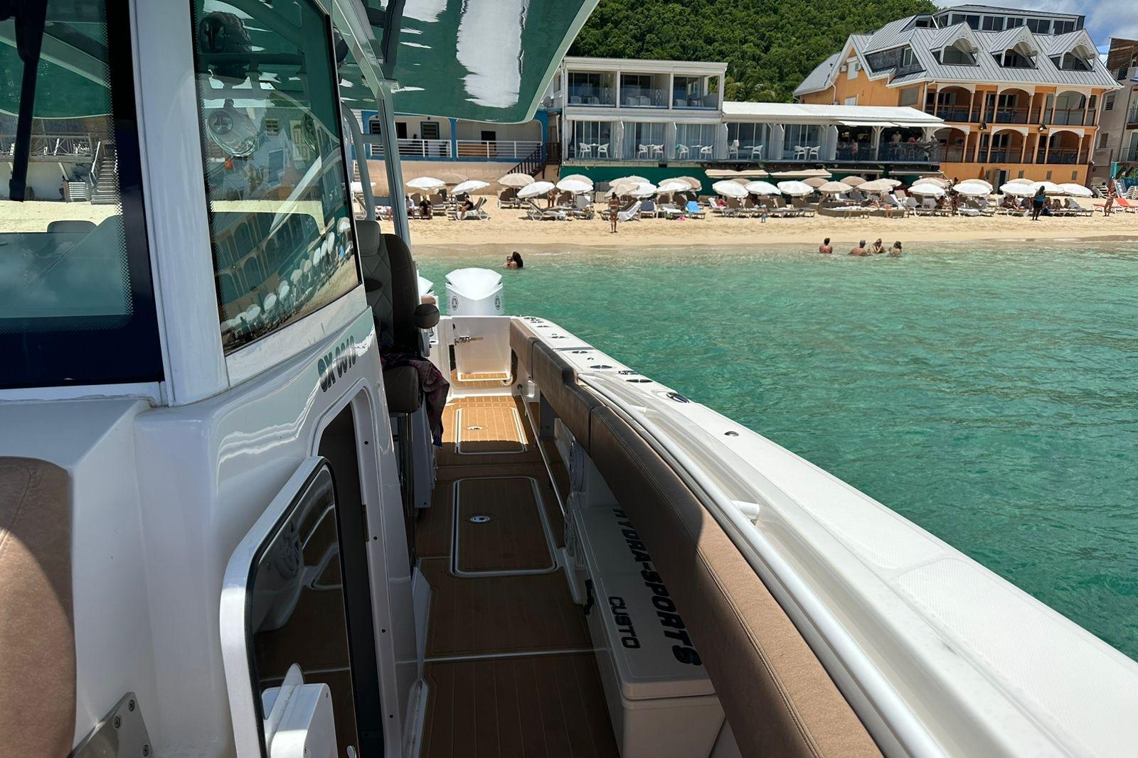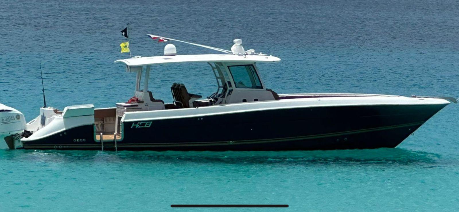 Additional InformationHCB 42 SIESTA Year 2018 Hull color: Navy Blue Hard top Roof ENGINES YAMAHA QUAD F350 – only approx..450 hours Joystick control LAYOUT 1 x cabin Airconditioning INTERIOR VINYL and maple TV Electric toilet UPGRADE STEREO SYSTEM : 4-7,7” & 4-8.8” SPEAKERS 4-10 SUBWOOFERS 2 -8.8” TOWER CANS UPGRADED UPHOLSTERY COCKPIT. VINYL -HARMONY ULTRA LEATHER SUMMER KITCHEN- 12V REFRIGERATOR ,SINK ,GRILL AND STORAGE Led Underwater lights Bow table: power lift , converts into large sunbed Twin Seating bench at transom with cupholders Twin Seating bench in front of console with cupholder 3 x seatings with armrest and foot support at helm station 2 x Seating at 2nd Row with cupholders Swing door at transom Windshield with wipers ` Shore power connection Canvas protection covers for all seating Electronics Garmin navigation pack: Garmin Triple 7612-2 &7412-1 Radar Autopilot Satellite TV receiver to chart plotter Joystick control OTHERS TRAILER