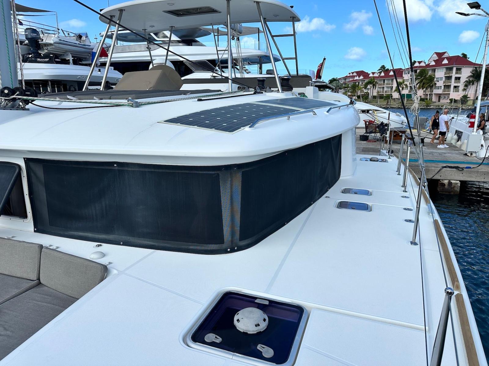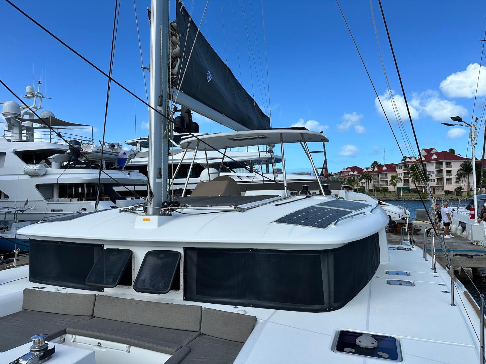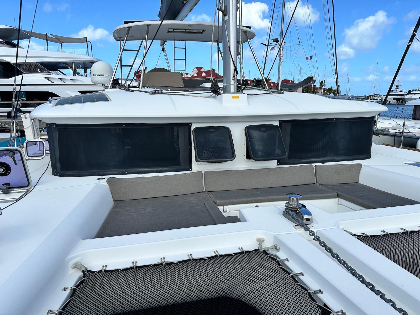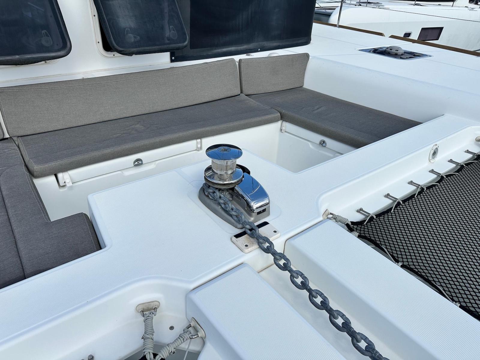 SpecificationInterior Equipment:• 4 x A/C Units (Cruisair 48,000 BTU) – Factory Installed• 6 x 2-speed fans• Watermaker AQUA-BASE• 6-filter + remineralizer drinking water filtration system (2023)• Washing Machine (BEKO, 5kg)• 2 x TVs with Raymarine Antenna• Fusion MS-RA 70 Sound System with 6 built-in speakers• Safe (Installed 2023)• New Carpet (2023)• New Mattress in Owner’s Cabin (2023) Galley:• Propane Oven & Stove (ENO) + 6 propane bottles• Refrigerator & Freezer (Frigonautica)• Microwave (Samsung)• Dishwasher (Electrolux)• Saltwater tap with foot pump• Blender & Coffee Grinder• Full set of dishes and glasses Bathrooms:• 3 x Electric toilets (saltwater flush with macerators)• 3 x Holding tanks• Shower in each bathroom• Teak floors Engines & Propulsion:• 2 x Yanmar 54HP (2,600 hrs)• 3-bladed folding props (Flex-O-Fold, 2021) Electrical & Power:• Cummins Onan Generator (11 KVA, 2,200 hrs)• 4 x Lithium Batteries (2023)• Solar Array (3,000 watts total, 2023):• 4 x 150W flexible solar panels (cabin top)• 4 x solar panels on stainless steel arch (2023)• Victron 5000W Inverter/Charger (2024) – Can power all A/C units Exterior Equipment:• Complete cushion set (cockpit, flybridge, forward sunbathing area)• Teak cockpit• Hardtop Bimini (2023)• Cockpit refrigerator (Waeco)• Passerelle• 48Kg ULTRA stainless steel anchor• 300-foot galvanized steel anchor chain (2023)• Windlass (QUICK) with chain counter + spare Delta anchor, chain & rode• Black trampoline replacement (2023)• Davits Sails & Rigging:• Square Top Mainsail• Roller Furling Genoa• Code 0 on roller furling (2016)• Asymmetrical Spinnaker w/ sock (1.5 oz, 2019)• Storm Jib (2019)• Headstay replaced (2021)• Dyneema Reefing Lines (12mm)• Jib Drum (2023)• 1 x Electric Harken Winch Electronics & Navigation (Raymarine):• Plotter, Depth Sounder, Wind Speed/Direction, Radar, AIS• Autopilot• VHF Radio at Helm & Nav StationExtras & Safety:• 10ft VIPER Dinghy with 15HP Mercury Outboard (electric start, 2019)