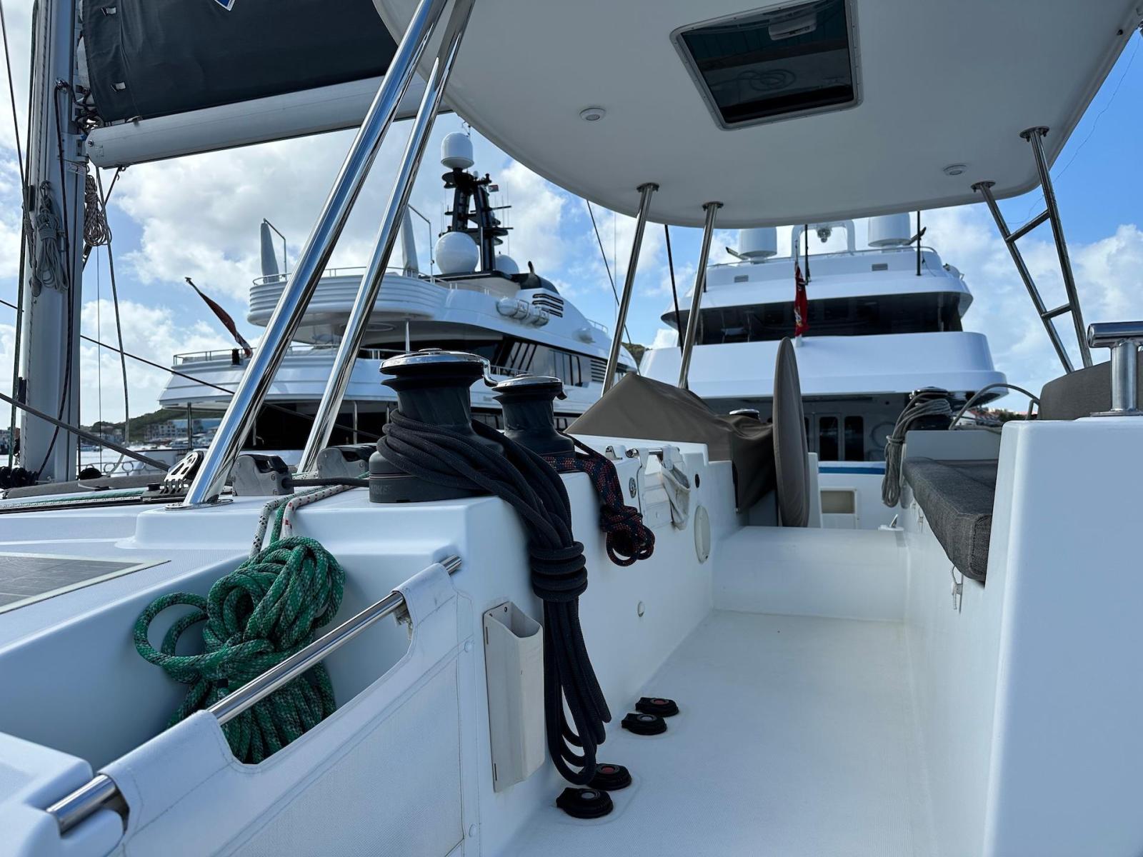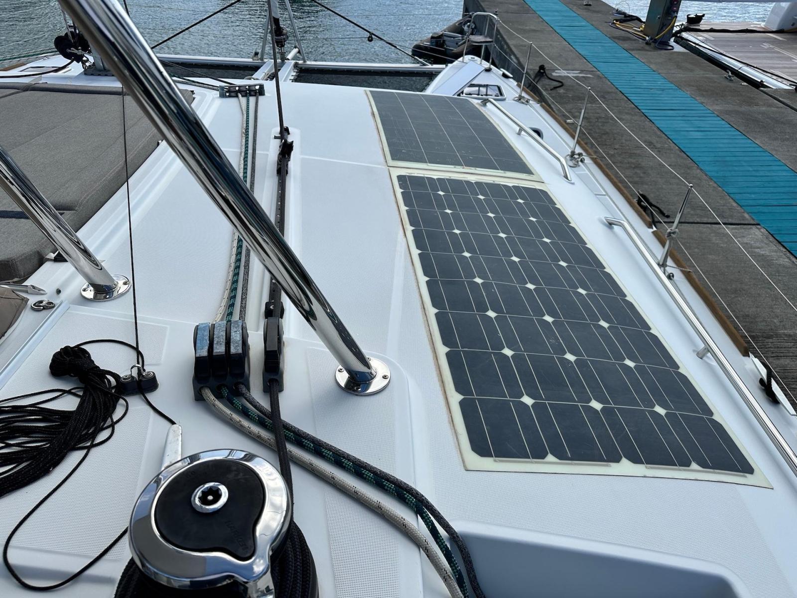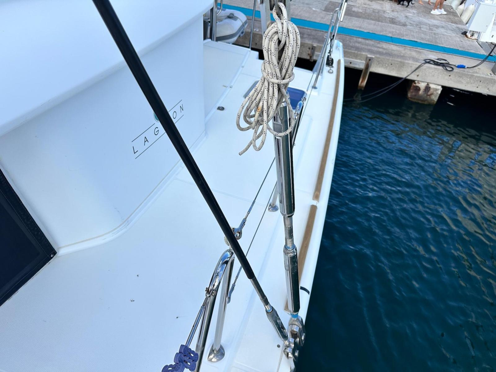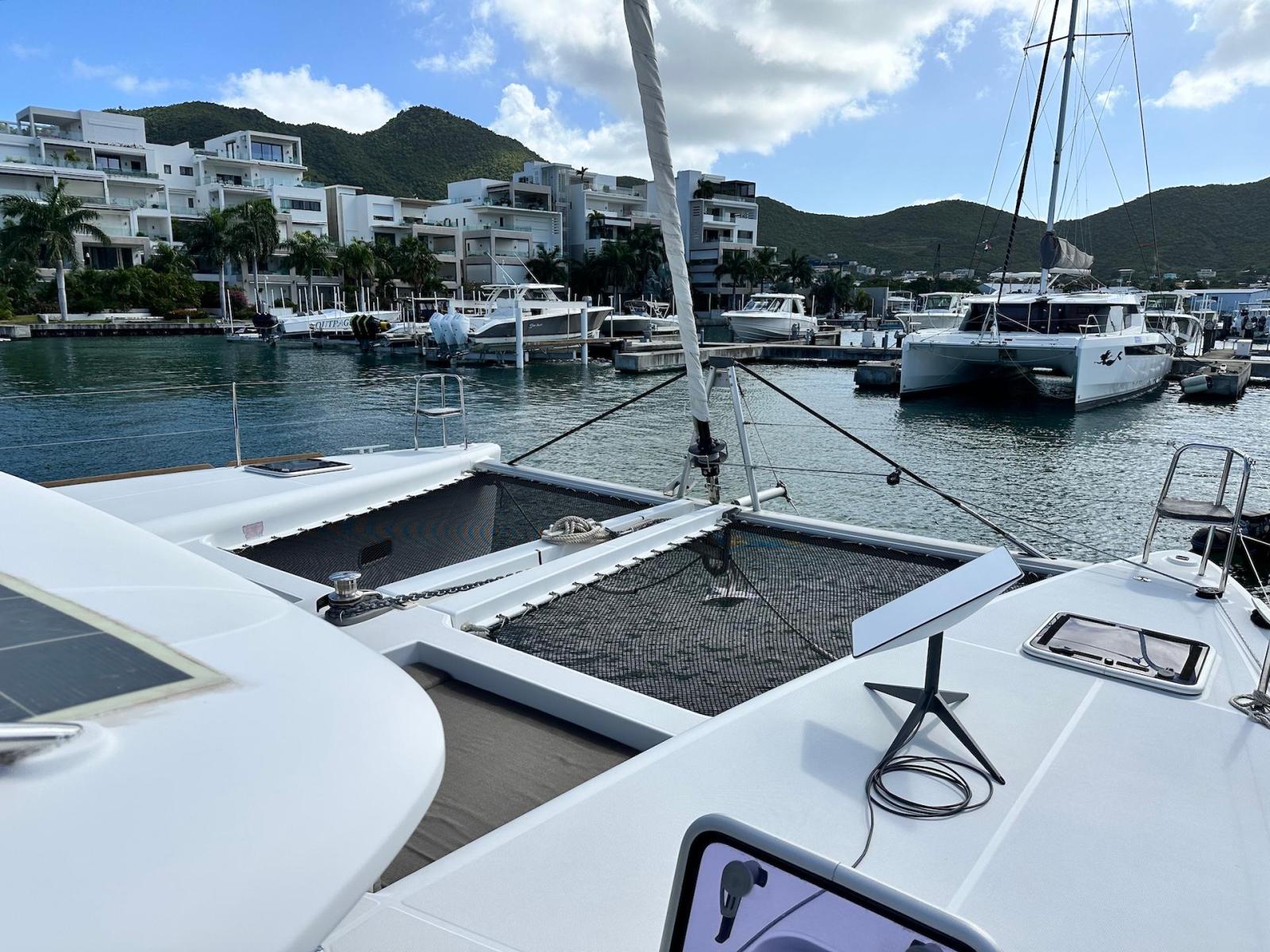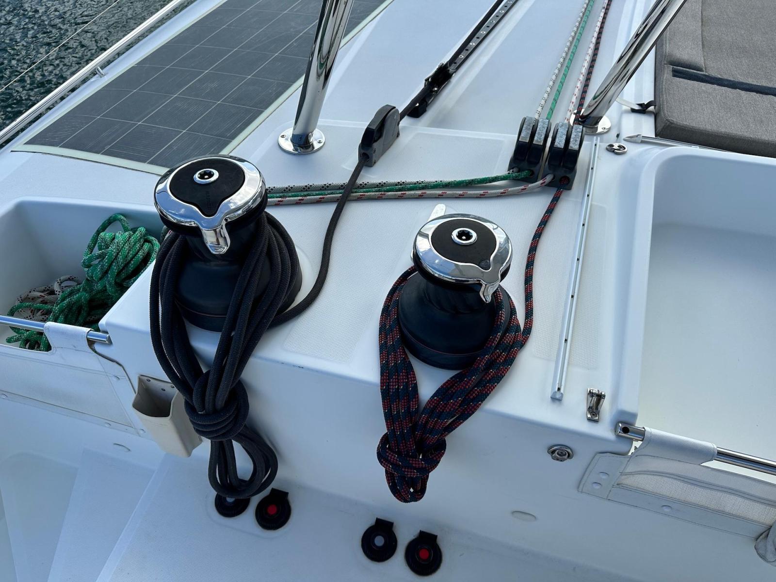 SpecificationInterior Equipment:• 4 x A/C Units (Cruisair 48,000 BTU) – Factory Installed• 6 x 2-speed fans• Watermaker AQUA-BASE• 6-filter + remineralizer drinking water filtration system (2023)• Washing Machine (BEKO, 5kg)• 2 x TVs with Raymarine Antenna• Fusion MS-RA 70 Sound System with 6 built-in speakers• Safe (Installed 2023)• New Carpet (2023)• New Mattress in Owner’s Cabin (2023) Galley:• Propane Oven & Stove (ENO) + 6 propane bottles• Refrigerator & Freezer (Frigonautica)• Microwave (Samsung)• Dishwasher (Electrolux)• Saltwater tap with foot pump• Blender & Coffee Grinder• Full set of dishes and glasses Bathrooms:• 3 x Electric toilets (saltwater flush with macerators)• 3 x Holding tanks• Shower in each bathroom• Teak floors Engines & Propulsion:• 2 x Yanmar 54HP (2,600 hrs)• 3-bladed folding props (Flex-O-Fold, 2021) Electrical & Power:• Cummins Onan Generator (11 KVA, 2,200 hrs)• 4 x Lithium Batteries (2023)• Solar Array (3,000 watts total, 2023):• 4 x 150W flexible solar panels (cabin top)• 4 x solar panels on stainless steel arch (2023)• Victron 5000W Inverter/Charger (2024) – Can power all A/C units Exterior Equipment:• Complete cushion set (cockpit, flybridge, forward sunbathing area)• Teak cockpit• Hardtop Bimini (2023)• Cockpit refrigerator (Waeco)• Passerelle• 48Kg ULTRA stainless steel anchor• 300-foot galvanized steel anchor chain (2023)• Windlass (QUICK) with chain counter + spare Delta anchor, chain & rode• Black trampoline replacement (2023)• Davits Sails & Rigging:• Square Top Mainsail• Roller Furling Genoa• Code 0 on roller furling (2016)• Asymmetrical Spinnaker w/ sock (1.5 oz, 2019)• Storm Jib (2019)• Headstay replaced (2021)• Dyneema Reefing Lines (12mm)• Jib Drum (2023)• 1 x Electric Harken Winch Electronics & Navigation (Raymarine):• Plotter, Depth Sounder, Wind Speed/Direction, Radar, AIS• Autopilot• VHF Radio at Helm & Nav StationExtras & Safety:• 10ft VIPER Dinghy with 15HP Mercury Outboard (electric start, 2019)