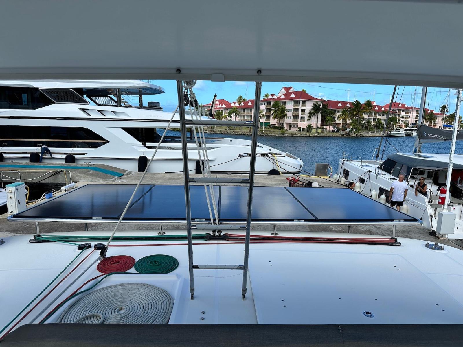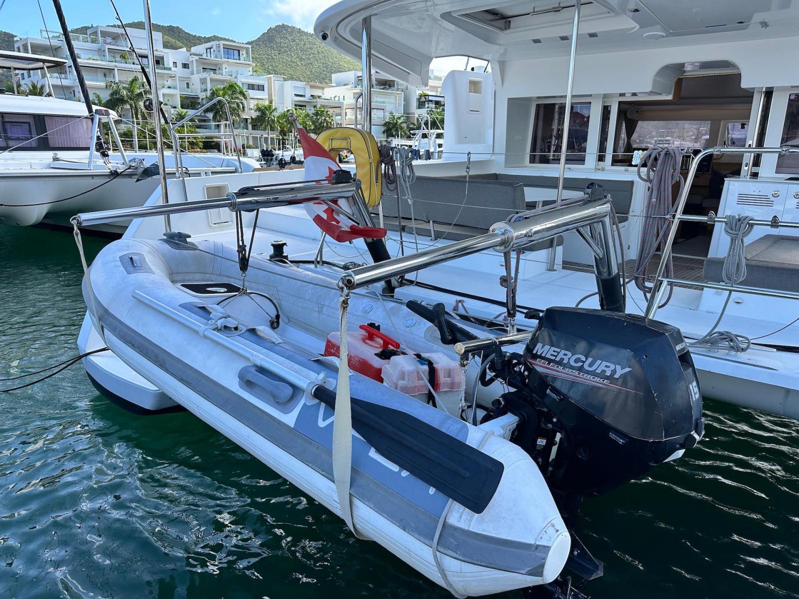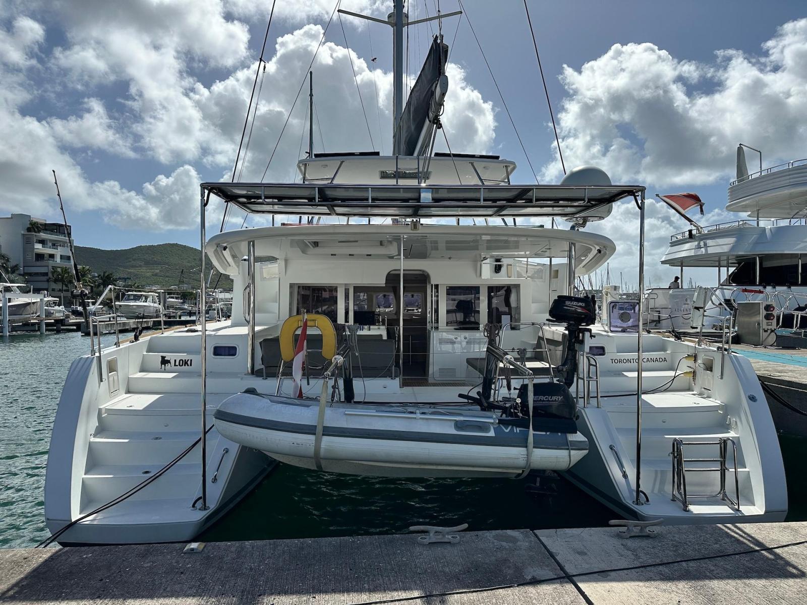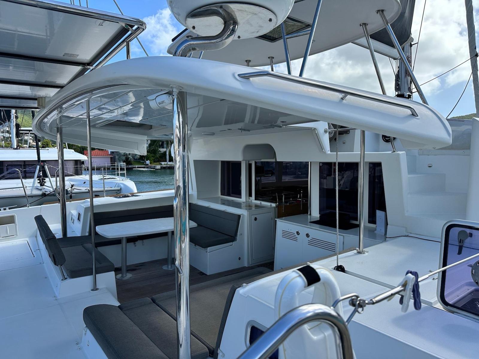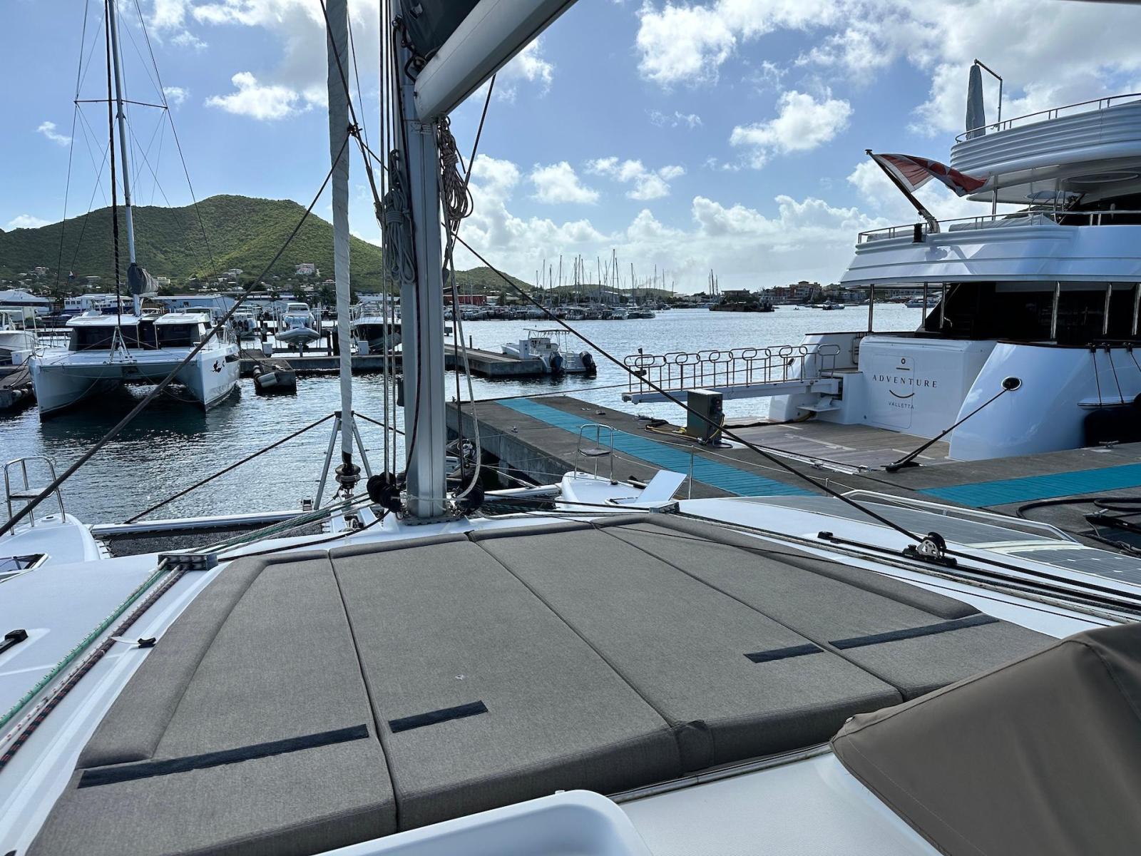 SpecificationInterior Equipment:• 4 x A/C Units (Cruisair 48,000 BTU) – Factory Installed• 6 x 2-speed fans• Watermaker AQUA-BASE• 6-filter + remineralizer drinking water filtration system (2023)• Washing Machine (BEKO, 5kg)• 2 x TVs with Raymarine Antenna• Fusion MS-RA 70 Sound System with 6 built-in speakers• Safe (Installed 2023)• New Carpet (2023)• New Mattress in Owner’s Cabin (2023) Galley:• Propane Oven & Stove (ENO) + 6 propane bottles• Refrigerator & Freezer (Frigonautica)• Microwave (Samsung)• Dishwasher (Electrolux)• Saltwater tap with foot pump• Blender & Coffee Grinder• Full set of dishes and glasses Bathrooms:• 3 x Electric toilets (saltwater flush with macerators)• 3 x Holding tanks• Shower in each bathroom• Teak floors Engines & Propulsion:• 2 x Yanmar 54HP (2,600 hrs)• 3-bladed folding props (Flex-O-Fold, 2021) Electrical & Power:• Cummins Onan Generator (11 KVA, 2,200 hrs)• 4 x Lithium Batteries (2023)• Solar Array (3,000 watts total, 2023):• 4 x 150W flexible solar panels (cabin top)• 4 x solar panels on stainless steel arch (2023)• Victron 5000W Inverter/Charger (2024) – Can power all A/C units Exterior Equipment:• Complete cushion set (cockpit, flybridge, forward sunbathing area)• Teak cockpit• Hardtop Bimini (2023)• Cockpit refrigerator (Waeco)• Passerelle• 48Kg ULTRA stainless steel anchor• 300-foot galvanized steel anchor chain (2023)• Windlass (QUICK) with chain counter + spare Delta anchor, chain & rode• Black trampoline replacement (2023)• Davits Sails & Rigging:• Square Top Mainsail• Roller Furling Genoa• Code 0 on roller furling (2016)• Asymmetrical Spinnaker w/ sock (1.5 oz, 2019)• Storm Jib (2019)• Headstay replaced (2021)• Dyneema Reefing Lines (12mm)• Jib Drum (2023)• 1 x Electric Harken Winch Electronics & Navigation (Raymarine):• Plotter, Depth Sounder, Wind Speed/Direction, Radar, AIS• Autopilot• VHF Radio at Helm & Nav StationExtras & Safety:• 10ft VIPER Dinghy with 15HP Mercury Outboard (electric start, 2019)