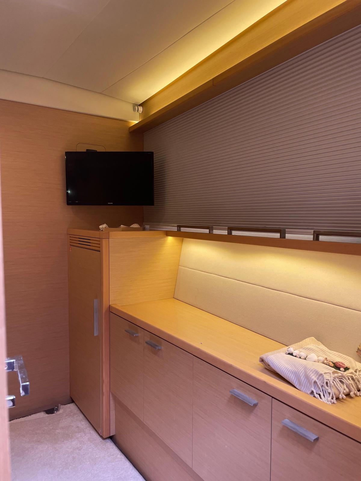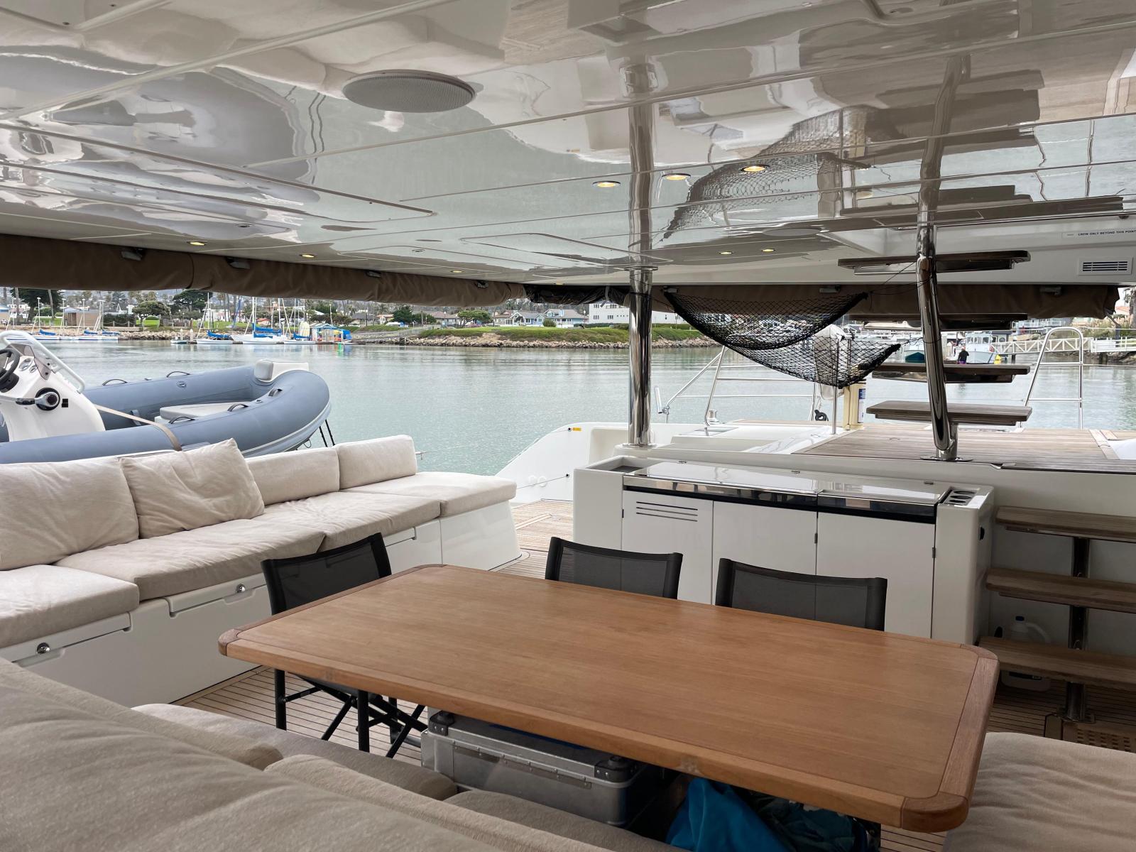 FACTORY LOADED CONFIGURATIONGENERAL LAYOUTVERSION 4 CABINS, 4 HEADS - LATERAL GALLEY,DOOR BETWEEN GALLEY AND SALONDOOR FOR DAY-HEAD ACCESS TO MIDDLE PORT BATHROOM - LATERAL GALLEY ALPI WALNUTFORWARD COMPARTMENT LAYOUTSCREW CABIN IN PORT BOW COMPARTMENT (berth, sink, shower, toilet)INTERIOR WOOD GREY ALPI OAK WITH WENGE FLOOR (4cab Lateral Galley)UPHOLSTERIES & CARPETSSPECIAL LEATHER UPHOLSTERY FOGLIZZO DUKE (salon & settees) - 4 CABINS LATERAL GALLEYCOLOR TUNDRA ARGILE(comes with Taube Canvas) AFT COCKPIT AND AFT BEAM CUSHIONS + LOUNGER WITH ADJUSTABLE BACKREST -TUNDRA ARGILEFOREDECK CUSHIONS - TUNDRA ARGILEFLYBRIDGE CUSHIONS - TUNDRA ARGILESUNLOUNGERS ON FLY WITH ADJUSTABLE BACK REST - TUNDRA ARGILESAILS AND RIGGINGWHITE PAINTED ALUMINIUM CANOE BOOM WITH LED LIGHTS AND COVER – TAUPE CODE 0 RIG AND POLE3 X ELECTRICAL WINCHES ON FLYBRIDGEEXTRA FOR HYDRANET SQUARE TOP MAINSAIL AND GENOA IN LIEU OF STANDARDCODE 0 IN D4 BLACK 186 sqm (2001 sq ft) WITH KING ROPEDACRON STAYSAIL + RUNNING RIGGING AND HALYARD + ELECTRICAL FURLER (for Aluminium mast)DECK EQUIPMENTTENDERLIFT XL HYDRAULIC PLATFORM WITH REMOTEBOARDING LADDER2 X MOORING CAPSTANS 1000W AFT PORT & AFT STARBOARDDIVING COMPRESSOR BAUER JUNIOR II 220V/50HzFOLDING CARBON GANGPLANK 2,60m/8,53ft WITH COVER + 2 SOCKETSTEAK FOREDECK AND DECK PASSAGE WAYKIT OF COVERS - TAUPE (Steering wheels, wheel stations, cockpit tables, liferaft cptmt)DECK COURTESY LIGHTS IN COCKPIT, TRANSOMS AND FLYBRIDGE2 X LED SPOT LIGHTS IN AFT BEAM4 X UNDER WATER BLUE SPOT LIGHTSELECTRICAL S/STEEL GRILL 220V IN COCKPIT LOCKERICE MAKER 220V IN COCKPIT COCKPIT SIDES AND AFT SUN CANVAS + SIDES AROUND AFT COCKPIT WITH WINDOWS- TAUPEFORWARD DECK SEA/FRESH WATER WASH PUMP & AFT DECK FRESH WATER WASH PUMPLARGE BIMINI ON HELM STATION WITH FOOTPATH UNDER BOOM, LED LIGHTS - TAUPEELECTRICAL FLYBRIDGE DOORFLYBRIDGE FLOOR IN TEAKFLYBRIDGE FRIDGE (S/steel interior, with top opening)NAVIGATION AREANAVIGATION AREA WORLD TOURENGINES & HELM STATION2 x 150 HP (VOLVO PENTA D3 -150)EXTRA FOR ENGINE THROTTLES AT STARBOARD HELM STATION + NAV STATION -VOLVO 150HPELECTRICAL BOW THRUSTER AT STARBOARD 24V 200KGF + 2 JOYSTICKSPAIR OF 3-BLADES GORI FOLDING PROPELLERS FOR VOLVO D3-150 (150 HP)ROPE CUTTERS ON THE PROPELLERSELECTRICAL CIRCUITVERSION 220 V 50 HzONAN GENSET 19Kva 1500rpm 220V / 50HZ + COCOON + FUEL TRANSFER PUMPFISCHER PANDA 10000i PMS 9Kva SPARE GENERATOR IN PORTSIDE ENGINE ROOMPACK FOR 2 BATTERY CHARGERS 220V 100Amp EACHPACK FOR 2 INVERTERS 24 / 220V - 2 x 5000 VAADDITIONAL SURGE PROTECTIONUSB SOCKETS IN CABINSWATER CIRCUITWATERMAKER 280L/H (74USGal/H) SEA RECOVERY AQUAMATIC 220VEXTRA FOR INTEGRATED BIDET IN ELECTRICAL TOILET - 4 CABINSINTERIOR EQUIPMENTFANS IN CABINS, GALLEY AND SALON (8)WINE CELLAR IN LATERAL GALLEY(17 bottles)ELECTRIC OVEN AND STOVES IN LIEU OF STANDARD GAS + MICROWAVE OVEN -DISH-WASHER MIELE 12 sets 220VWASHING MACHINE/DRYER 220 VPLEATED BLINDS IN THE SALON (In lieu of Curtains on door &roller blinds on aft window)PLEATED BLINDS IN THE CABINSPLEATED BLINDS FOR AFT COMPANIONWAYS OWNER4S VERSIONREVERSE CYCLE CHILLED WATER AIR CONDITIONING 96000 BTU 220V - 4 CABINS LATERAL GALLEYHI-FI, VIDEO & ELECTRONICSNAVIGATION PACK B&G 2019/2020AIS 500 B&G TRANSCEIVER WITH ANTENNA COUPLINGVHF B&G RS90 DOUBLE HANDSETRR MAST ANTENNA (TV,VHF,AM- FM,GSM)ATOLL HIFI MEDIA CENTER IN SALON & TV 40" ON ELECTRIC LIFTTV LED 23" PAL/SECAM IN FWD PORT CABINTV LED 23" PAL/SECAM IN FWD STARBOARD CABINTV LED 23" PAL/SECAM IN MIDDLE PORT CABIN LATERAL GALLEYTV LED 23" PAL/SECAM IN OWNER4S CABINUNLIMITED COMMUNICATION PACK SATELLITE 3G/4G INMARSAT (2 years subscription included)ACCESSORIESDINGHY SET OCEAN MASTER DELUXE 460 GREY WITH HONDA ENGINE BF60HPLAGOON EXTRA PACKAGES:READY TO SAIL - CHIC AND CHILL IN (Classic)READY TO SAIL - CHIC AND CHILL OUT (Classic)READY TO SAIL - TOOL BOXREADY TO SAIL - BOAT CARE BOXOWNER'S MANUALENGLISH OWNER'S MANUALEXPORTATIONEXPORTATION FEESDELIVERYLAUNCHED, RIGGED, ANTIFOULING (4 dock lines, 8 fenders, diesel, anchor set)ADDITIONAL EX-FACTORYCOMPLETE SAFETY EQUIPMENTS,(MCA)4 X EMERGENCY HATCHES (MCA)