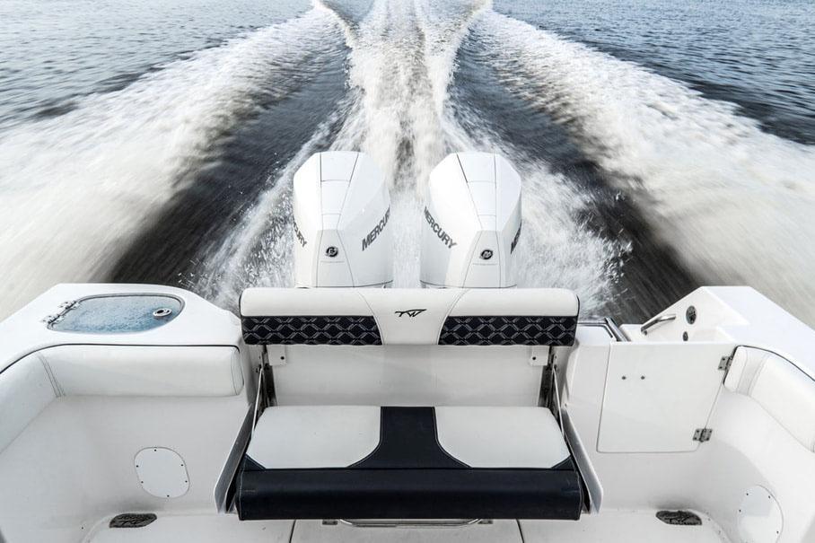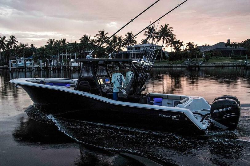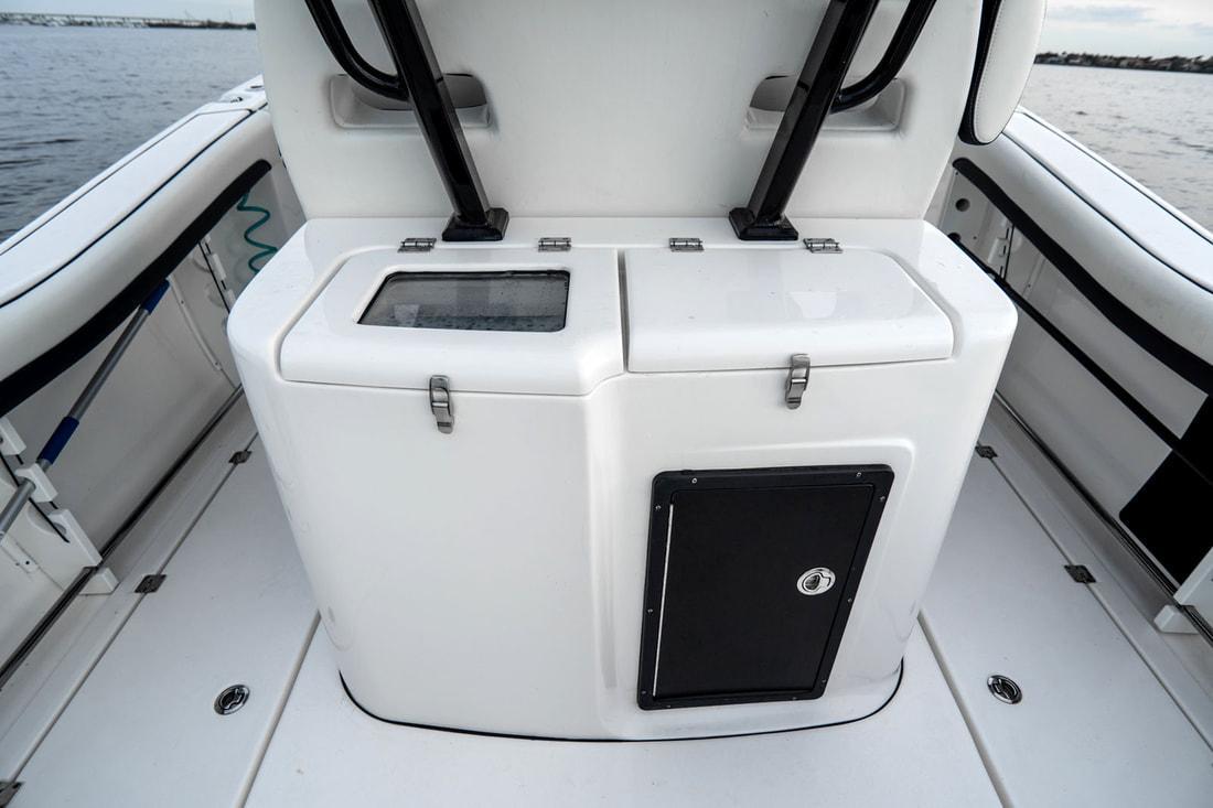 Standard Features (2) 800 GPH Aerator Pumps w/ High Speed Pickup (2) Bilge Pumps (1500/1000 GPH) w/ Auto Float Switches 3-12 volt power sources: Stern, Leaning Post & Console 6 Pull up cleats (8") All access doors are white acrylic Bucket Style forward console seating w/Armrest China Bowl Head w/ pump out & overboard discharge Console Sleeper Berth Deluxe Leaning Post Seat w/ Armrest & Pull-Up bolsters Edson Steering Wheel Electric Hi/Lo Bow Table with Pad Flush mount transom seat Glove box on front of Leaning Post Hard Top w/ LED lights (Spreader, Map & Rope lights) Leaning Post tackle center w/ drawers, sink & 30 Gallon livewell LED Nav Lights Molded catch all on top of console & front of Leaning post Optimus Electronic Power Steering Recessed Rodracks w/ toe rail Recessed Windlass w/ plow anchor, chain & rope Side Door Sink w/ shower head inside console Tempered glass windshield Tension hinges on all lids (no shocks needed) Trim tabs with LED indicators T-Top Recessed into console for flushed fit Wiring harness w/Digital Voltage Sense Relay (Dual Battery Swith Panel) Woodgrain Swim Platform accent Wrap around bow seating with flip out backrest Yacht style helm station with room for 2-15" GPS/Chart Plotters Yamaha 6YC Information Station LED Cockpit Lighting