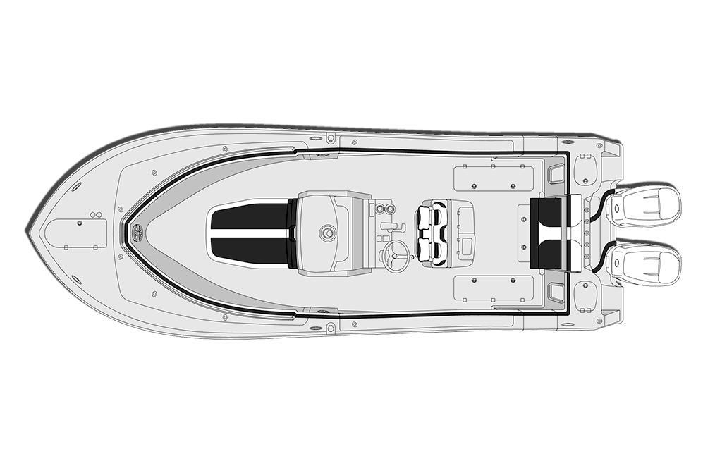 Standard Features (2) 800 GPH Aerator Pumps w/ High Speed Pickup (2) Aquarium Livewells (2) Bilge Pumps (1500/1000 GPH) w/ Auto Float Switches 6 Pull up cleats (8") China Bowl Head w/ pump out & overboard discharge Coffin Box w/Full Open Bow Deluxe Leaning Post Seat w/ Armrest & Pull-Up bolsters Dive Door Ladder Dual Battery Switch Flush mount transom seat Glove box on front of Leaning Post Hard Top w/ LED lights (Spreader, Map & Rope Lights ) Leaning Post tackle center w/ drawers, sink & 30 Gallon livewell LED Cockpit Lighting LED Nav Lights Molded catch all on top of console & front of Leaning post Recessed Rodracks w/ toe rail Recessed Windlass w/ plow anchor, chain & rope Sink w/ shower head inside console T-Top Recessed into console for flushed fit Trim tabs with LED indicators Yamaha Information Station