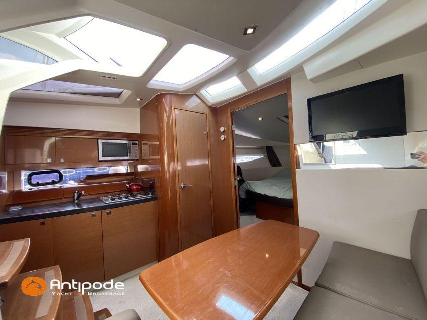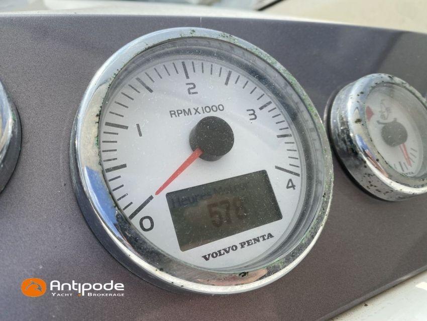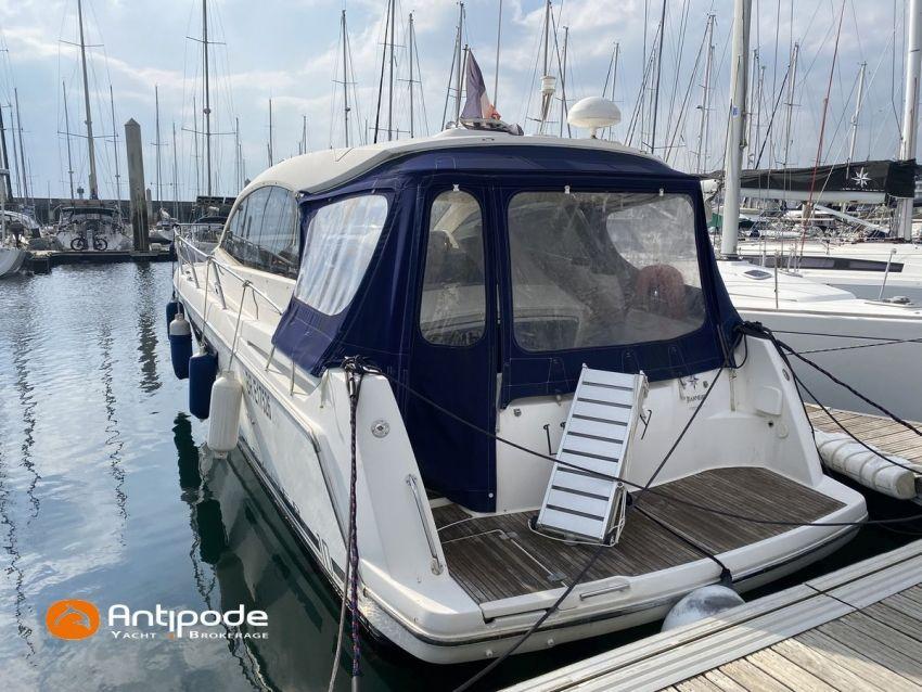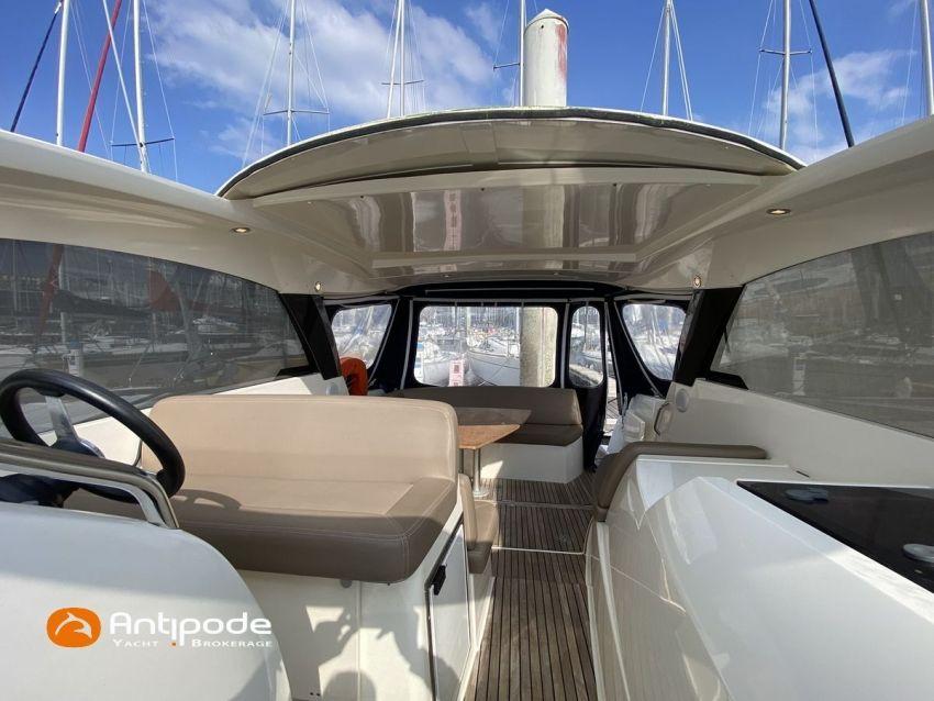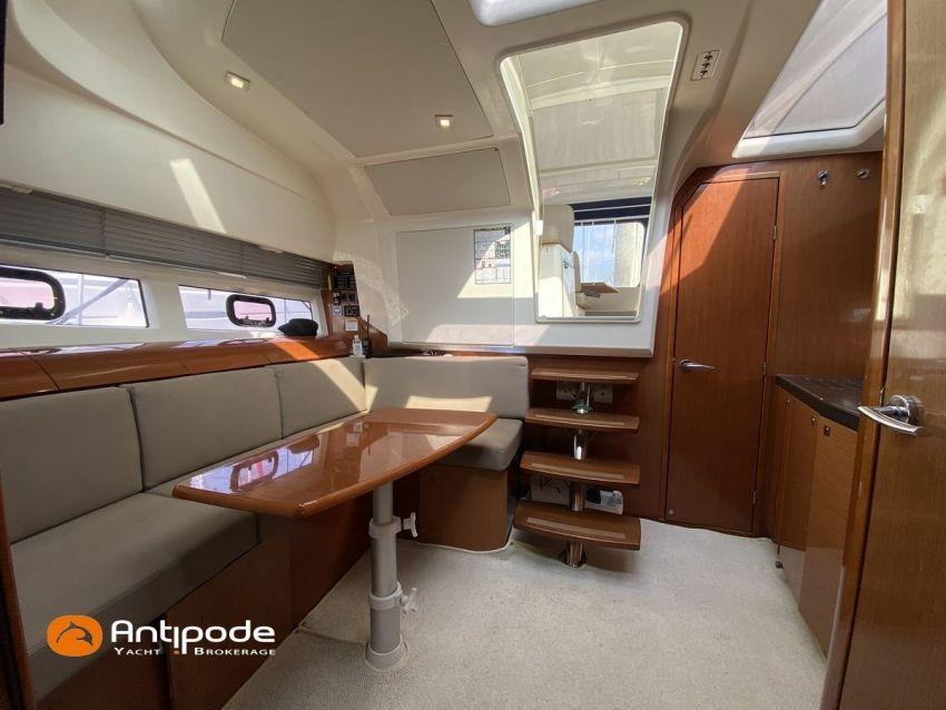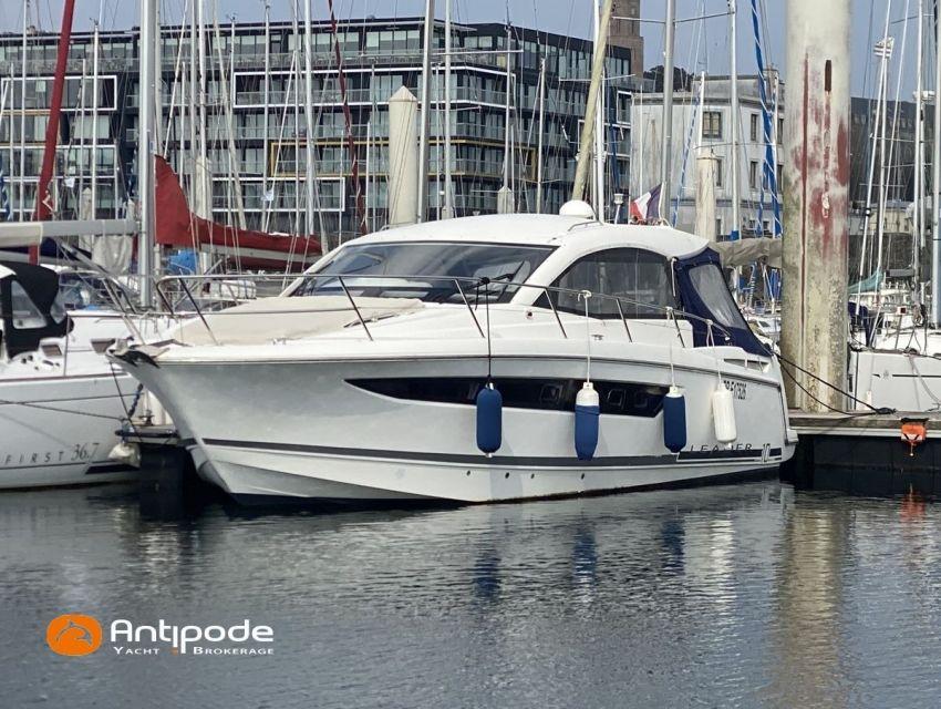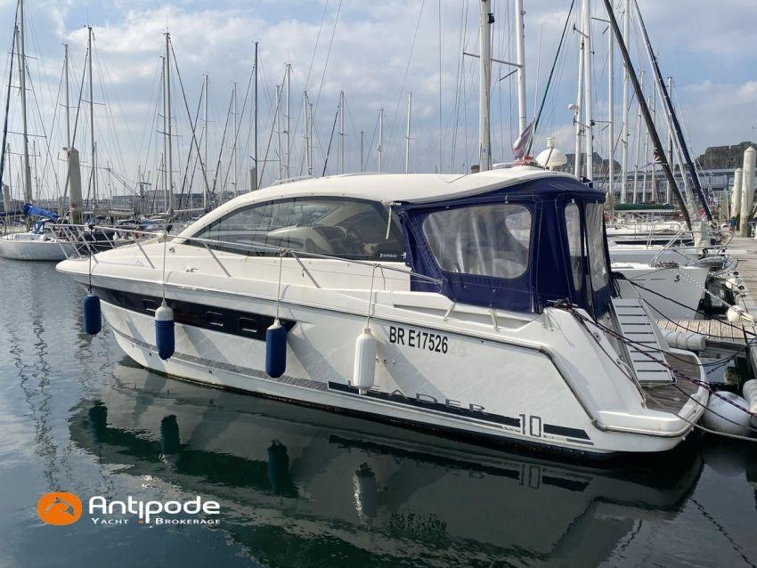 LEADER 10, deuxième main, jamais loué, 2010, VOLVO D4 260K, 2x 260 cv (580 h), Propulseur d'étrave, Version PREMIERE, Version d'aménagement intérieur 1 cabine avant, 1 cabine arrière, Menuiseries intérieures Moabi, Fond de cockpit latté teck, Jupe arrière lattée teck, Table de cockpit avec abattants bois, Coussins bains de soleil avant, Télécommande guindeau au cockpit, Tauds de fermeture arrière complète du cockpit, Pilote automatique in board Raymarine, Télévision dans le carré, Unité réfrigérante 12 V porte frontale, 2 ème unité réfrigérante, Four à micro-ondes, Prise de quai 220 V + chargeur de batteries, Contrôleur / gestionnaire de batteries, Chauffage WEBASTO, Réservoir rigide eaux noires, WC électrique, Annexe, entretiens moteurs complet à jour, factures d'entretien disponible, Visible Bretagne. Pour plus d'informations ou pour fixer un rendez-vous de visite, contact : François Mouchel 06 62 30 97 30 - francois@antipode-yachts.com