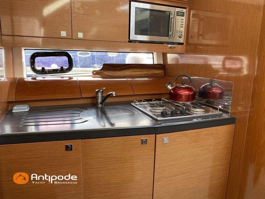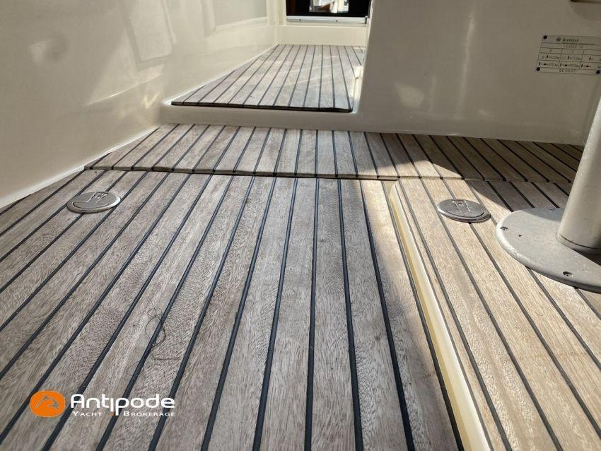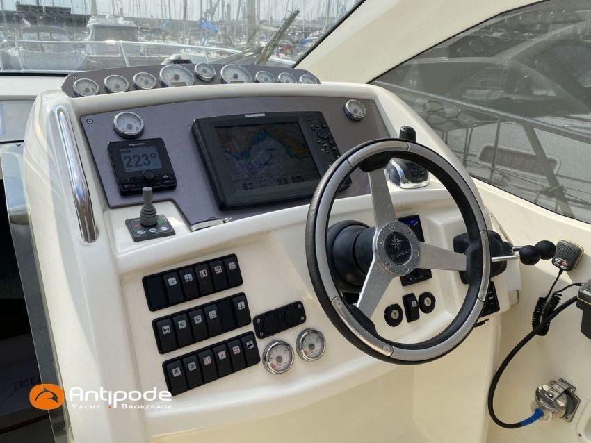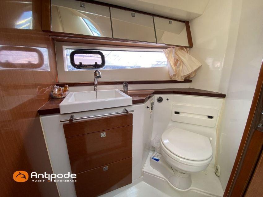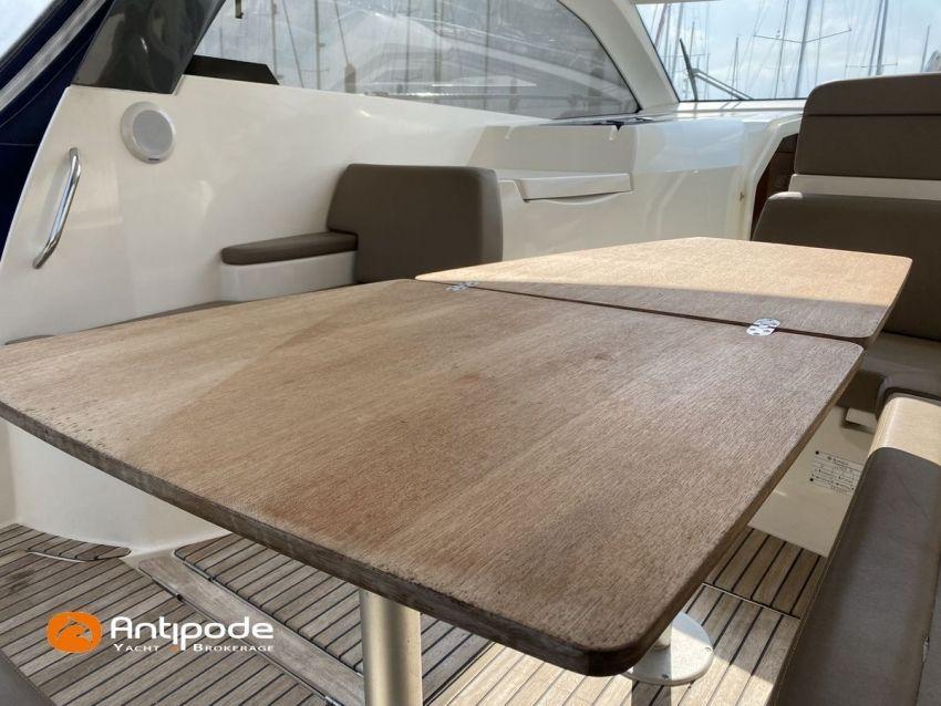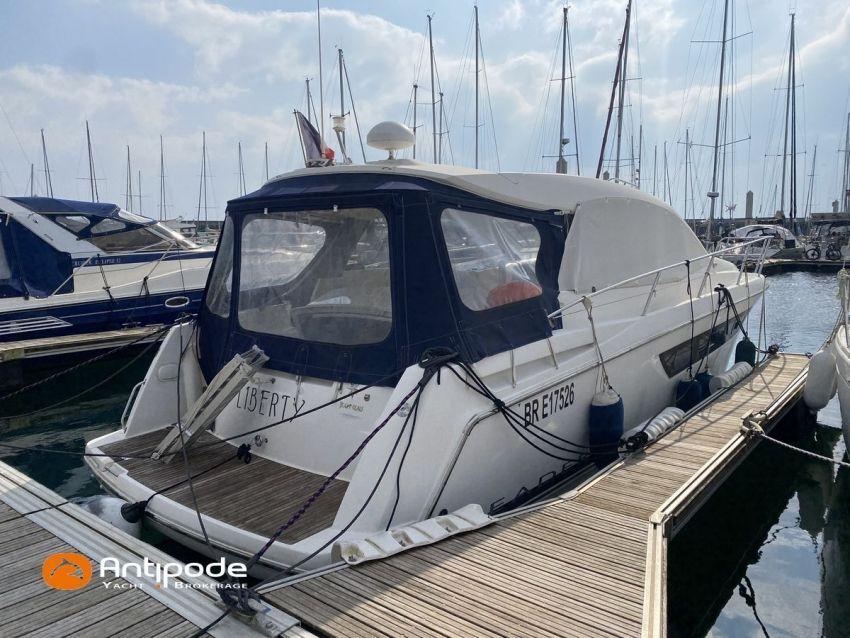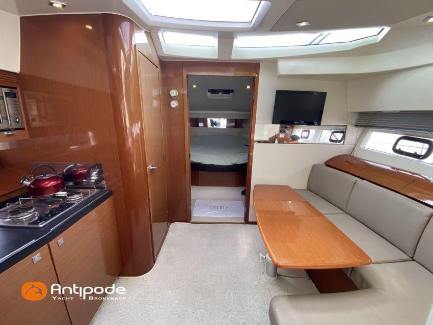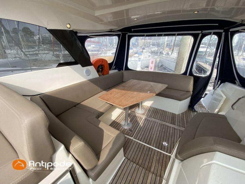 LEADER 10, deuxième main, jamais loué, 2010, VOLVO D4 260K, 2x 260 cv (580 h), Propulseur d'étrave, Version PREMIERE, Version d'aménagement intérieur 1 cabine avant, 1 cabine arrière, Menuiseries intérieures Moabi, Fond de cockpit latté teck, Jupe arrière lattée teck, Table de cockpit avec abattants bois, Coussins bains de soleil avant, Télécommande guindeau au cockpit, Tauds de fermeture arrière complète du cockpit, Pilote automatique in board Raymarine, Télévision dans le carré, Unité réfrigérante 12 V porte frontale, 2 ème unité réfrigérante, Four à micro-ondes, Prise de quai 220 V + chargeur de batteries, Contrôleur / gestionnaire de batteries, Chauffage WEBASTO, Réservoir rigide eaux noires, WC électrique, Annexe, entretiens moteurs complet à jour, factures d'entretien disponible, Visible Bretagne. Pour plus d'informations ou pour fixer un rendez-vous de visite, contact : François Mouchel 06 62 30 97 30 - francois@antipode-yachts.com