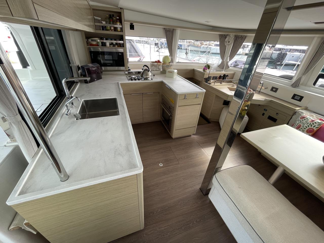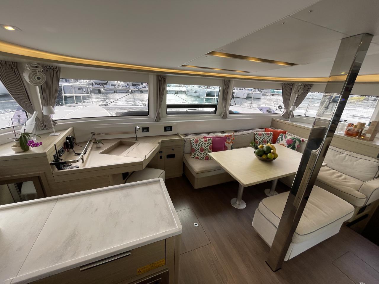 Le Lagoon 46 est un catamaran de croisière haut de gamme, lancé par le chantier français CNB – Groupe Bénéteau. Il succède au très populaire Lagoon 450 et combine espace, confort, sécurité et performance. La version quatre cabines est parfaitement adaptée à la croisière en famille ou à la location haut de gamme. Catamaran privé, jamais loué, pavillon Français, TVA Européenne payée, visible en Martinique