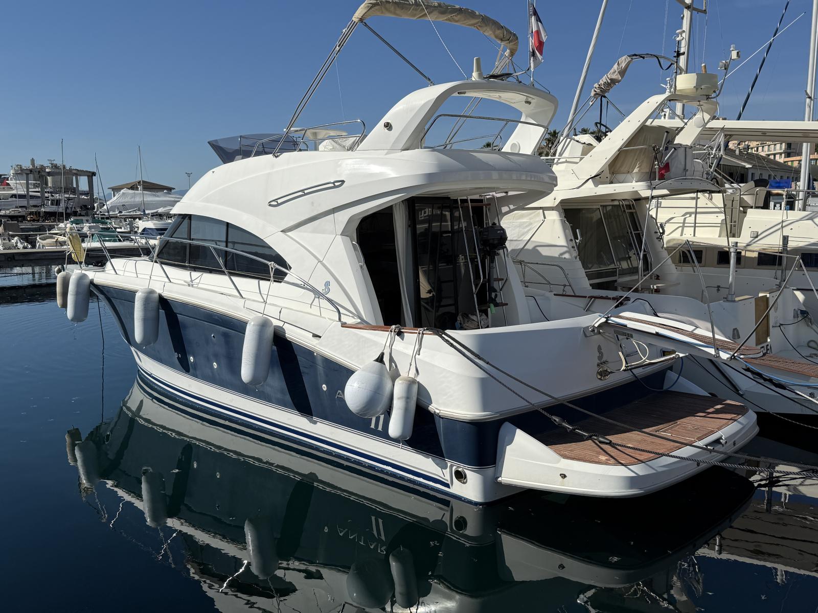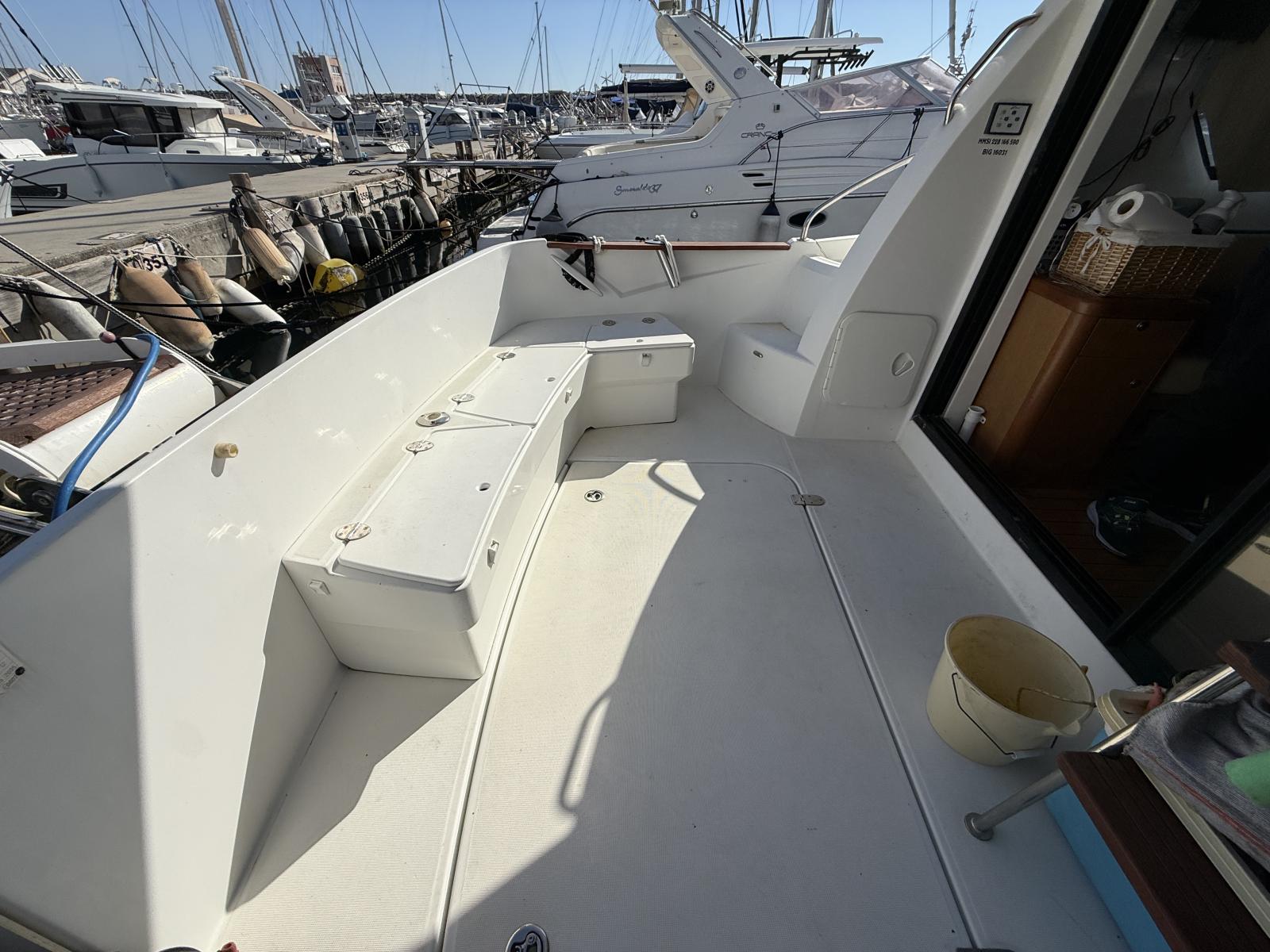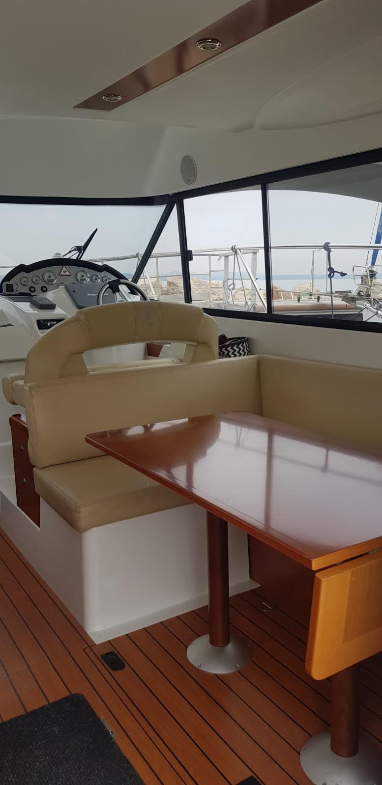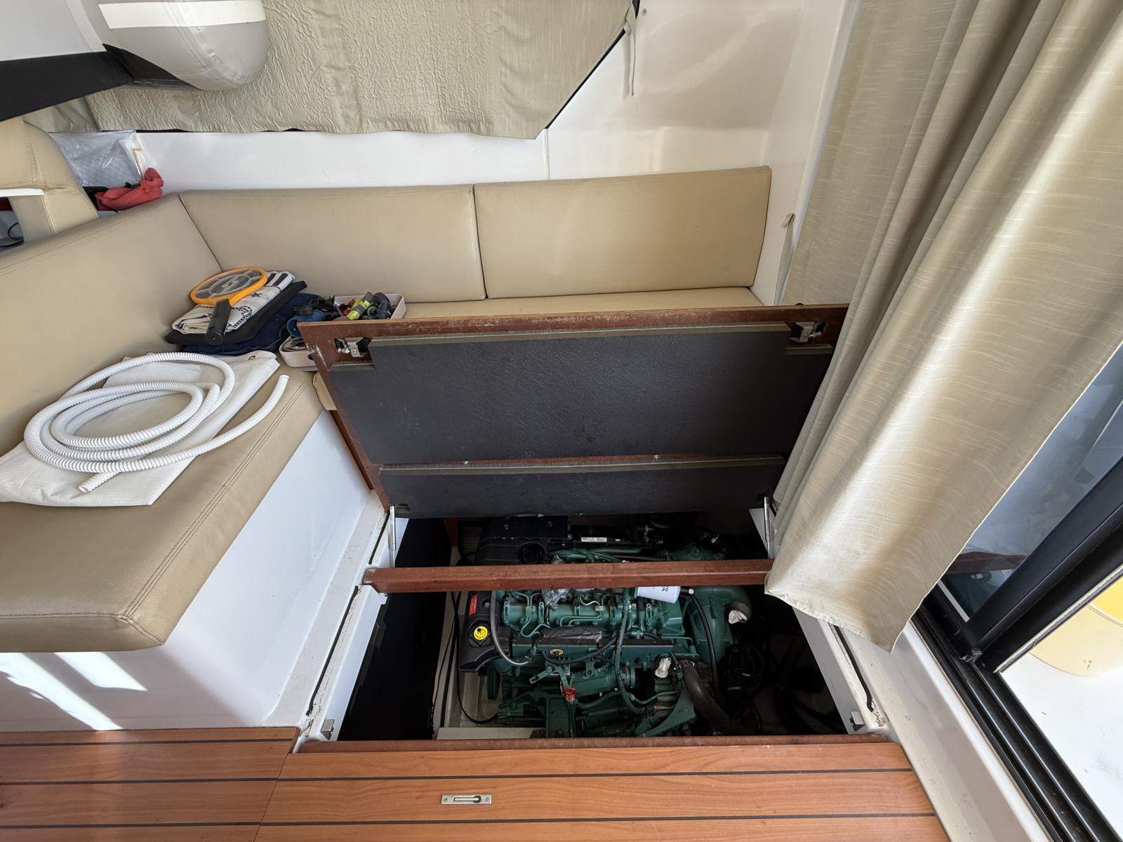 Ce bateau en excellent état bénéficie d’un entretien méticuleux : carénage complet, nettoyage des échangeurs, antifouling et anodes neuves. Des bagues d’arbre en bronze remplacent celles d’origine en Teflon pour une fiabilité accrue.