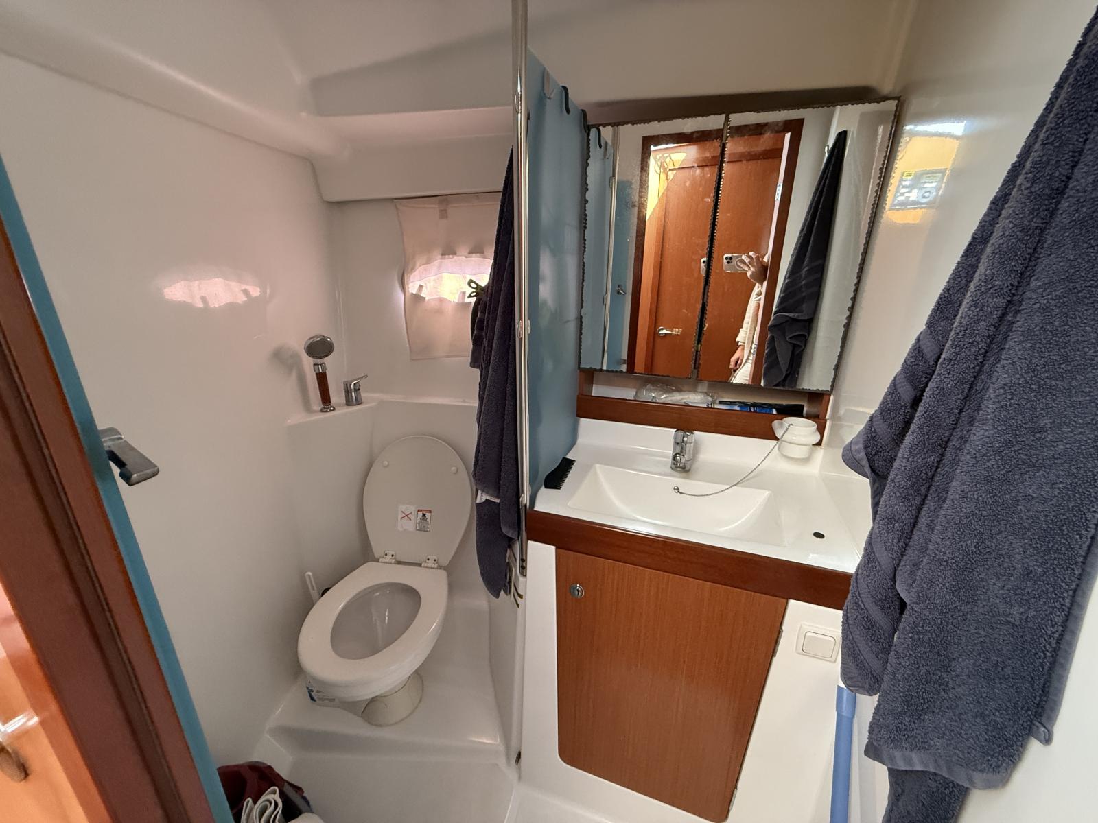 • Salle de bain avec WC électrique et réservoir eaux noires.