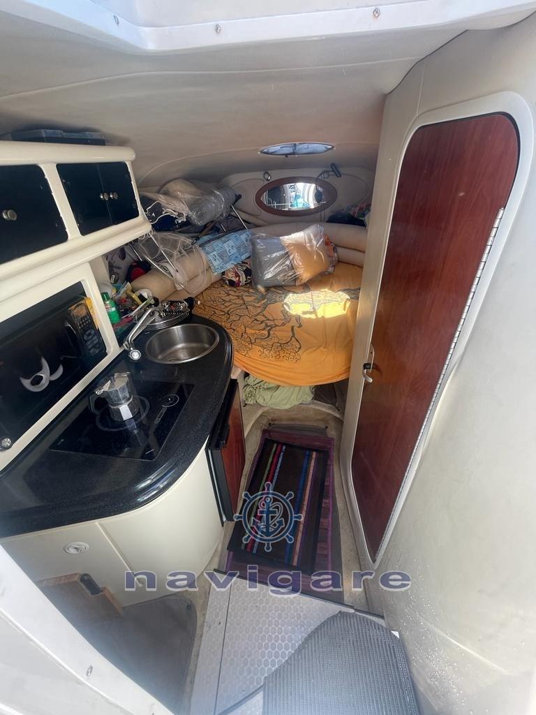 DESCRIPTION INTÉRIEURE Couchette arrière Dinette avant modifiable Cuisine équipée de plaques électriques, micro-ondes et réfrigérateur Salle de bain indépendante avec douche, WC électriques et lavabo équipée de 1 moteur Volvo Penta de 370 CV Moteur 500 Entretien complet au pied et au moteur chaque année.