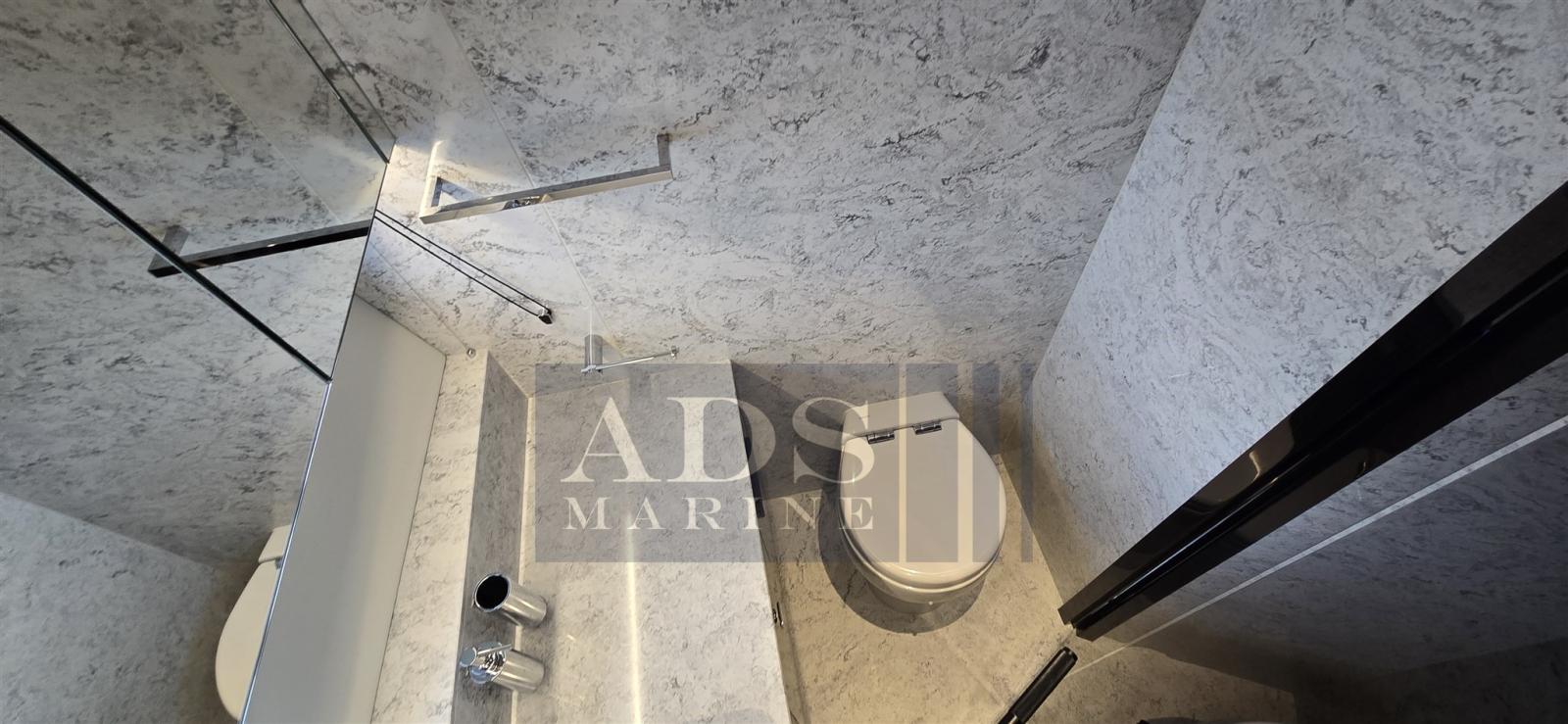 Option de réservoir gris d’une capacité de 430 litres. Refoulement via une installation d’aspiration à terre lorsqu’il est disponible via un raccord monté sur le pont ou via une pompe de refoulement directement au-dessus de la mer